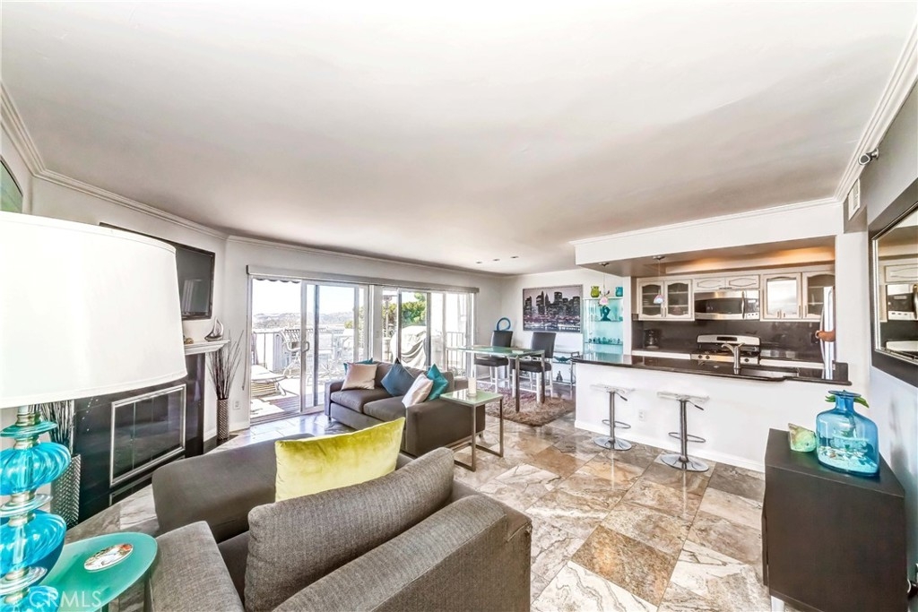 Located High on a bluff with incredible Ocean, Catalina Island, Dana Point Harbor, Coastline Views with 3 bedrooms and 2 1/2 baths. This condo feels like a single family home, with huge master bedroom suite, with remodeled bath, walk in closet, huge balcony and those amazing views. Many upgrades, include newer travertine floor, new stainless steel railing on stairs, all bathrooms have been completely remodeled, New Fireplace in living room, secondary bedrooms are huge, both with walk-in closets, with built-ins. Kitchen has been opened up and updated with granite, new lighting, newer appliances, and an office/work area. 2 Large, beautiful decks, are recently redone, and with new awnings where you can sit and enjoy those great views More upgrades include new front door, whole house re-piping done in 2017. 2 car attached garage. Association pool, spa, and tennis courts and park. Wonderful community, fantastic views!