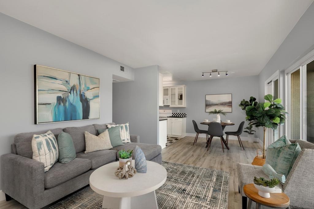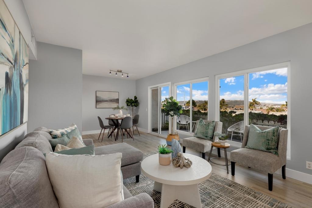 Coastal Dreaming in Dana Point! Charming 2 bedroom/2 bath condo located in the GATED community of Dana Light. This highly desirable complex is situated high atop a hill in central Dana Point and is surrounded by multi-million $$$ properties. This unit itself has breathtaking views for miles of surrounding mountains along with peek ocean views from the living room and patio. Recently upgraded luxury vinyl plank flooring and baseboards throughout the living area and bedrooms! Additional upgrades include new door hardware, fresh paint, updated dual pane windows and sliding door, new washer, dryer, and kitchen appliances less than 2 years old! The primary bedroom suite includes its own private bathroom + very large walk-in closet. The secondary bedroom has a deep closet as well and is across from the second bathroom. Parking includes both a covered carport space + a convenient 1 car garage (with room for storage). The garage features epoxy floors and was recently updated with a new quiet opening motor. Complex amenities include a swimming pool, spa, clubhouse (for private events), tennis/pickleball courts, basketball court, large pet-friendly greenbelts, and absolutely stunning mature trees and plants throughout. The coveted Strands Beach is located just down the hill (less than a mile away) which features gorgeous beaches and sunsets! You are also located only blocks from Dana Point's rejuvenated shopping and dining options. Also close by are the luxurious Ritz-Carlton Laguna Niguel and Waldorf Astoria Monarch Beach which includes an 18 hole championship golf links course. The nearby Dana Point Harbor will soon be going through a $400 million revamp to include new restaurants/eateries, shops, green spaces, concert area, and more. Schools: Dana Hills High School (9-12) is one block away at the corner of Golden Lantern and Stonehill. RH Dana Elementary School (K-5) is less than two miles away on La Cresta Drive. Prodigy Montessori School is also less than two miles away on Violet Lantern. St. Margaret's Episcopal School (K-12) a private school is less than 5 miles away in San Juan Capistrano.