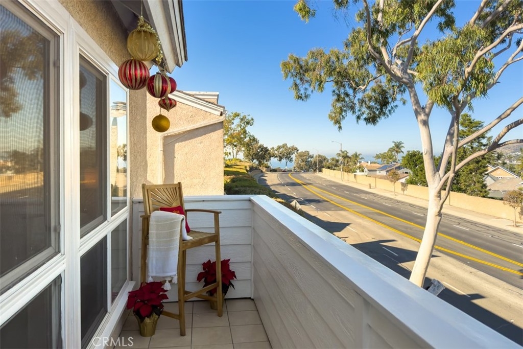 Welcome to 24093 Vista Corona, your future coastal haven amidst the stunning beaches of Dana Point, CA. This immaculate 2-bedroom, 2-bathroom residence is discreetly nestled within the exclusive gated community of Dana Light, boasting premier amenities such as a pool, spa, tennis and pickleball courts, and a basketball court. Surrounded by meticulously landscaped greenbelt grounds and a private dog park, this property is the epitome of luxurious seaside living. Indulge in sweeping ocean views from this elevated second-story dwelling, featuring alluring vaulted ceilings and a spacious deck that overlooks both the greenbelt and the mesmerizing neighborhood. A secondary patio off the living and dining room amplifies the allure with its panoramic ocean vista. The interior boasts a seamless single-level layout, enhanced with upscale amenities such as waterproof laminate flooring, new 5-inch baseboards, and elegant plantation shutters. The upgraded kitchen is a chef's delight, showcasing freshly painted cabinetry, new fixtures, granite countertops, and top-of-the-line stainless steel appliances. The primary bedroom offers a lavish retreat with a generously sized walk-in closet featuring custom cedar-lined built-ins. Meanwhile, the secondary bedroom boasts a built-in closet with drawers for additional storage convenience. The in-unit laundry adds a practical touch to the property's convenience. This coastal oasis comes complete with an attached one-car garage and an additional assigned carport, making it an ideal residence or investment property. Just minutes away from world-renowned 5-star resorts like Waldorf Astoria Monarch Beach and The Ritz Carlton, as well as iconic surf destinations like Salt Creek Beach and Strands Beach, this home offers unparalleled access to the epitome of luxury living. Dana Point's exquisite harbor, upscale shopping, and fine dining along Del Prado provide world-class experiences in just moments. Immerse yourself in the coveted Southern California Riviera lifestyle of Dana Point – seize the opportunity to make this extraordinary property yours today!