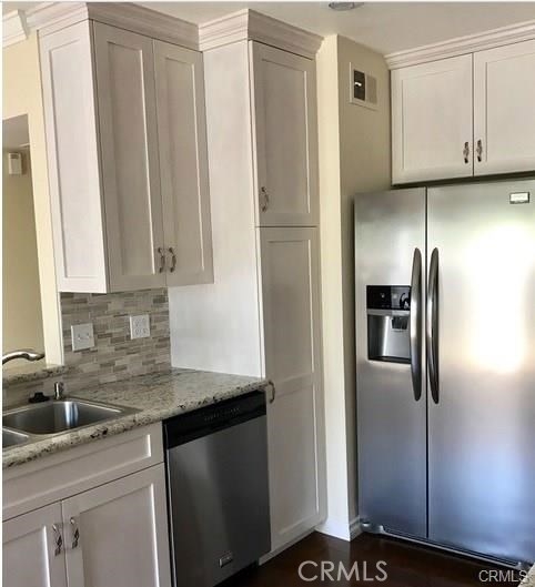 Gorgeous and ready for you. Charming 2 bedroom, 2 full bathroom ground level condo in the desirable gated community of Dana Light I. Open floor plan, light and bright living area. Just remodeled fabulous kitchen with new white cabinets and granite counter tops. Beautiful wood flooring throughout the home. Cozy fireplace. Neutral fresh paint on the interior. New plumbing and electrical. Updated bathrooms with granite counters and new floors. Enjoy a private patio right off the living room. This condo has a single car garage, and the assigned covered carport. Short walk to the community pool, spa, park, tennis and basketball court! Walk to the beach or downtown Dana Point harbor and beach and Lantern District! Popular Salt Creek Beach a short walk away! Find out why Dana Point is best kept secret on the California Coast. This coastal community is charming with many shops and restaurants.