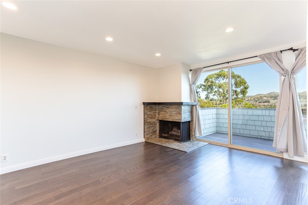 Live one mile from the ocean with a peekaboo view! This spacious 2 bedroom, 2.5 bathroom townhome has no one above you or below you and receives an abundance of natural light. Recently updated with dual-paneled windows throughout, hardwood flooring, granite countertops in the kitchen, two fireplaces, and a private deck are some features of this gem. Bedrooms are dual master suites featuring vaulted ceilings. One of the suites features a walk-in closet while the other features a loft that anyone would adore as a private getaway. Home furnished with refrigerator and in-unit washer and dryer. Includes a detached garage with an abundance of storage space, an assigned parking spot, and access to the community pool and spa. This is your opportunity to live within walking distance to Doheny Harbor and the beach.
