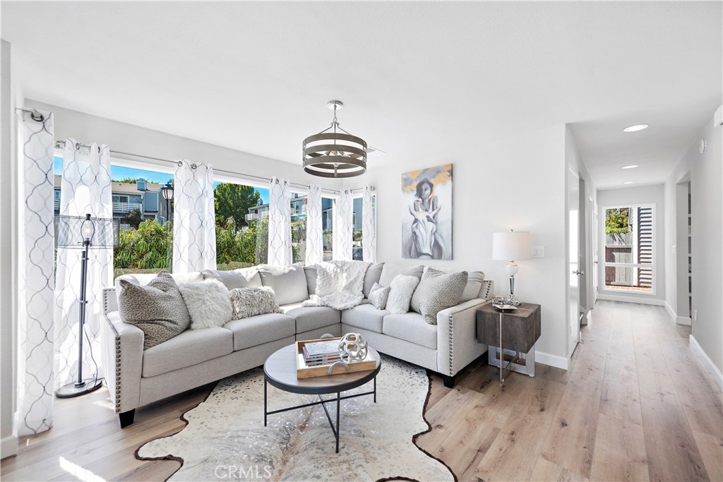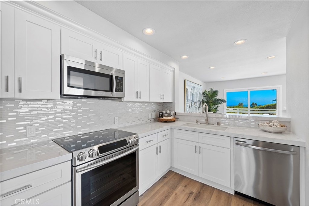 180-Degree Ocean Views and abundant natural light wait for you in this rare, fully renovated end-unit 3 bedroom, 2 1/2 bath townhome in Dana Vista. Every detail has been thought of so you can skip the remodel and make every day a perfect day at the beach. Relax and sip your morning coffee and bask in the view from your living room, dining room, kitchen or master suite. Relish indoor/outdoor living with a charming brick courtyard and 3 decks. The open floor creates a wonderful flow enhanced by beautiful LVT wood flooring, white baseboards and a light and bright color palette throughout the home. The state of the art kitchen was expanded & boasts white shaker cabinets, gorgeous gray and white porcelain countertops, designer back splash & stainless steel appliances. 70 square feet was added to the master suite to enhance the stunning ocean view and incorporate a wall of closets. A double sink and beautiful porcelain tile shower grace the master bath. All three bathroom remodels included installing new white vanities with marble countertops, mirrors, lighting & commodes. As you wind down your day step out onto the spacious main-level ocean view deck to watch the sail boats or catch the sunset. If it's a cool day or evening, cozy up to the striking white fire glass fireplace. When you aren’t relaxing at home, you can spend your time at the beach or exploring Dana Point Harbor, Lantern Village, & the world class Monarch Beach Resort & Ritz Carlton from this highly-coveted location.