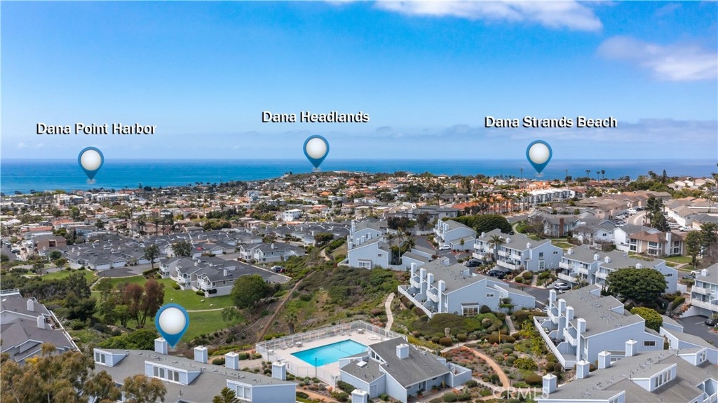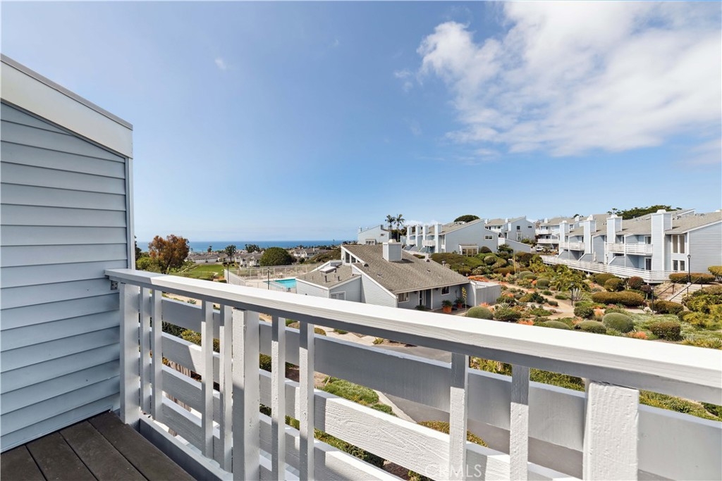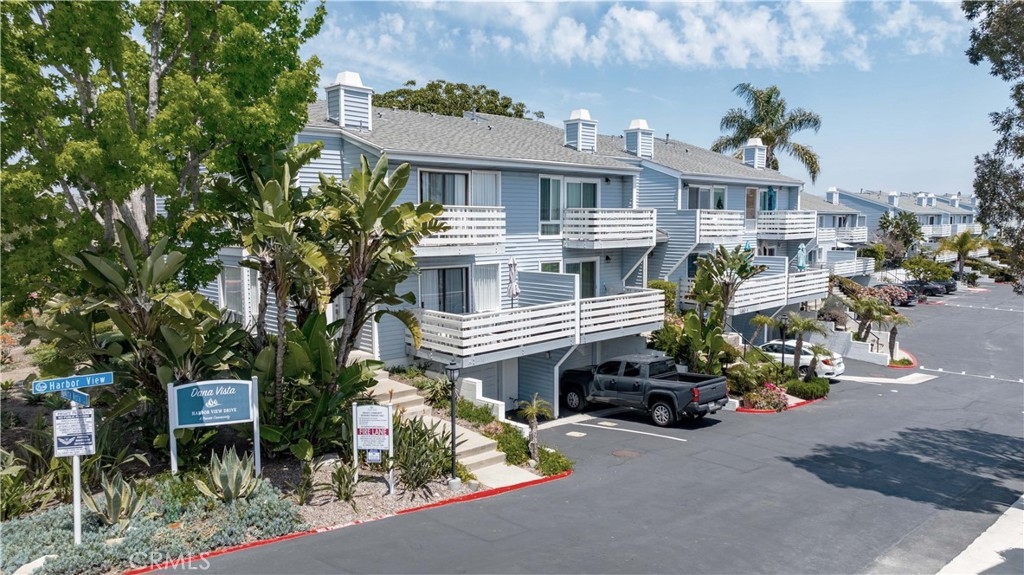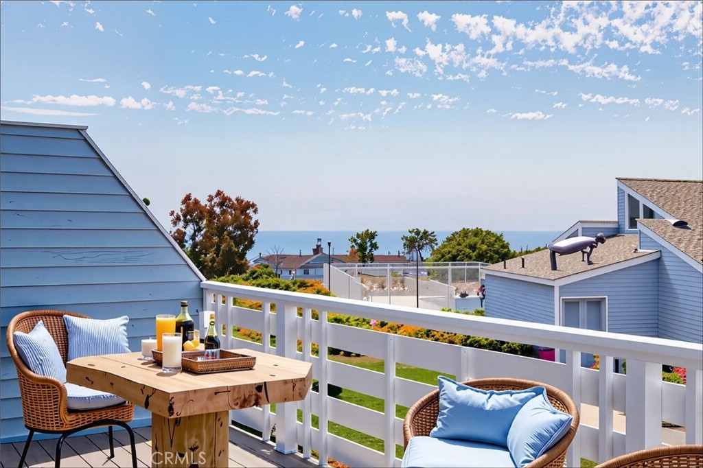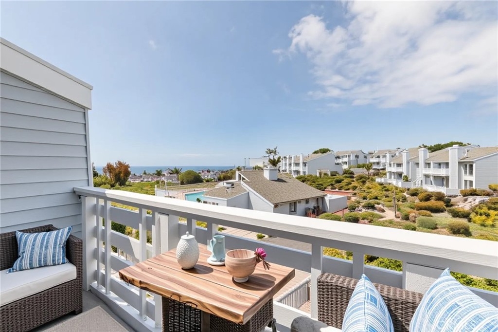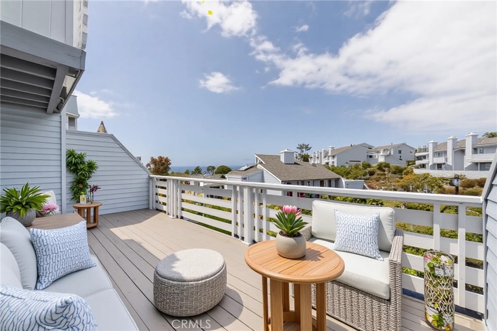 Tucked at the quiet end of a cul-de-sac, this upgraded coastal condo offers privacy and tranquility in a beautifully landscaped setting. Located at 24612C Harbor View Dr, the residence features 4 bedrooms, 2.5 bathrooms, and approximately 1,650 square feet of thoughtfully renovated living space. The heart of the home is a modern kitchen with granite countertops, stainless steel appliances, and contemporary finishes. An open-concept floor plan connects the kitchen to the dining and living areas, where neutral tile flooring, recessed lighting, ceiling fans, and a fireplace create a warm, inviting atmosphere. The main living area opens to an ocean-view deck, offering a relaxing outdoor space to enjoy coastal breezes. Upstairs, the primary suite features vaulted ceilings, ocean views, a private balcony, and a remodeled bathroom with an adjacent area ideal for an office or workout space. Two additional bedrooms are also upstairs—one with its own private balcony—while a downstairs bedroom opens to a peaceful cement courtyard. Outdoor living includes an ocean-view deck, private balconies, a patio, and the cement courtyard. All exterior decking and balcony surfaces have been upgraded with low-maintenance Trex material (courtyard excluded). The 60-home community offers amenities such as a pool, spa, and clubhouse with a full kitchen. The location provides convenient access to Dana Point Harbor, Strands Beach, Salt Creek Beach, and the Lantern District. Nearby attractions include Monarch Beach Golf Links, luxury resorts, and a variety of coastal dining and shopping options. Walkability to Dana Hills High School and access to the Dana Point Trolley enhance the home's lifestyle appeal, with connections to surrounding beach communities. This property blends functional design and ocean views with relaxed Southern California living in one of Dana Point’s most desirable neighborhoods. *Virtual staging has been used in select images to help visualize furniture layout possibilities.
