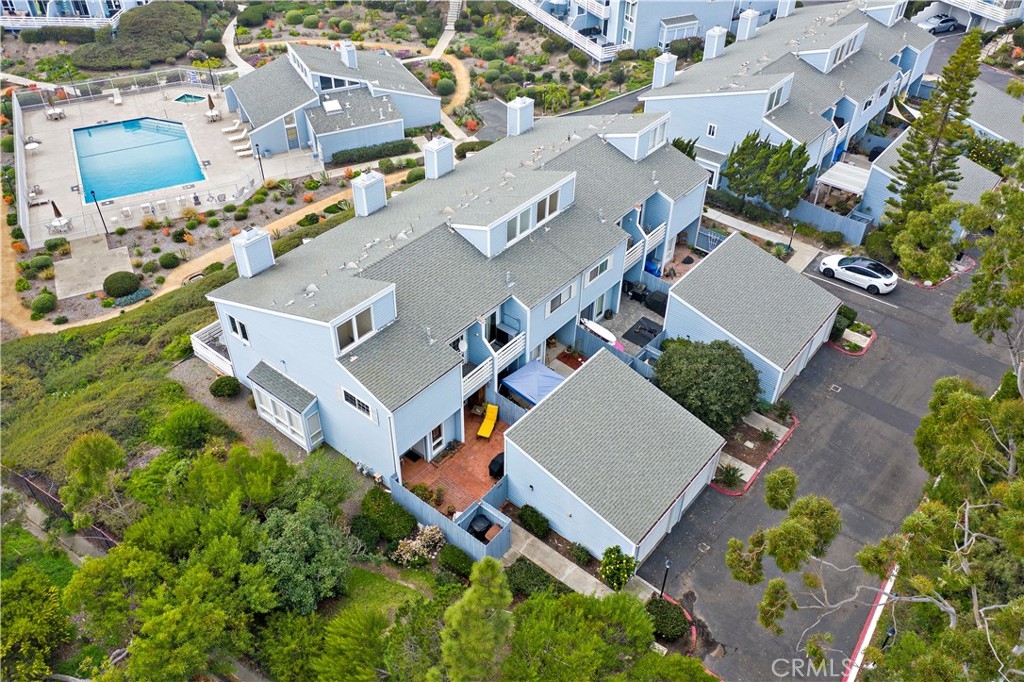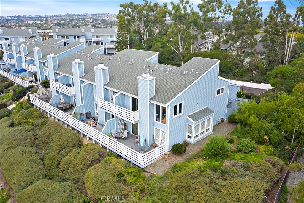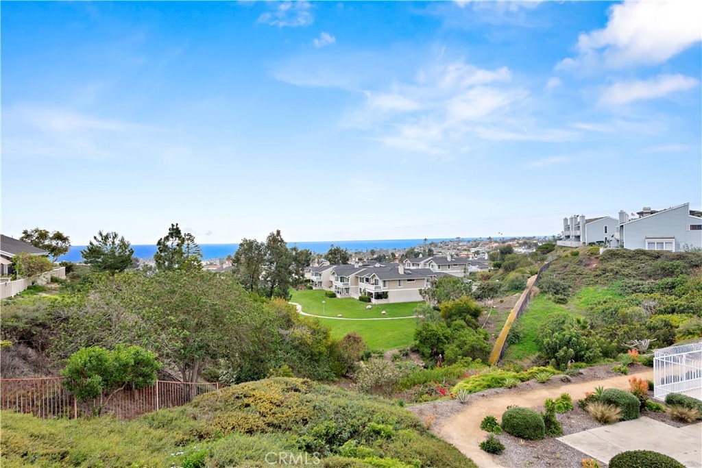 Wonderful Ocean, Hills, Greenbelts, Pool, City Light and Sunset views! Fabulous light and bright end unit, one of the best locations in the tract. Come create your dream home in this two-story, 3 bedroom + den/FR, 2.5 bathroom townhome featuring 2 balconies, large front courtyard, lovely ocean view deck and vaulted ceilings upstairs. Approximately 1800 square feet of living space. This home needs TLC but does have some upgrades which include: plantation shutters, customized fireplace, newer kitchen cabinet doors and counters, newer dual pane sliders, some newer dual pane windows and an updated master shower with floor to ceiling tile. Original owner enclosed the Main Bedroom and added corner windows for cross ocean breezes and an enhancement of the gorgeous ocean view! One could also use this space to enlarge the Main Bathroom or create a nice in-home office space. Be sure to check out the builder’s floor plan. Dana Vista community has fabulous walkways, a beautiful ocean view pool and spa area and is close to downtown Dana Point. This townhome comes with an extra long one car garage and designated parking space (space #1). Dana Vista Coastal Community is just minutes from world class Resorts, Golfing, Beaches, Fine and Casual Dining and Shopping. Welcome to Paradise!