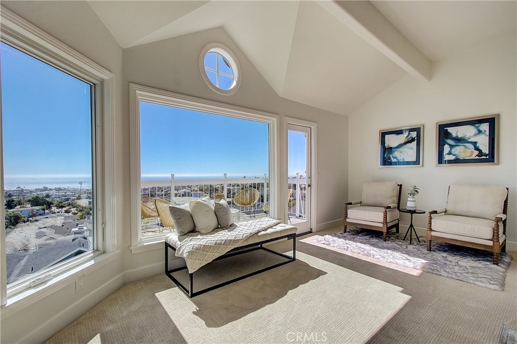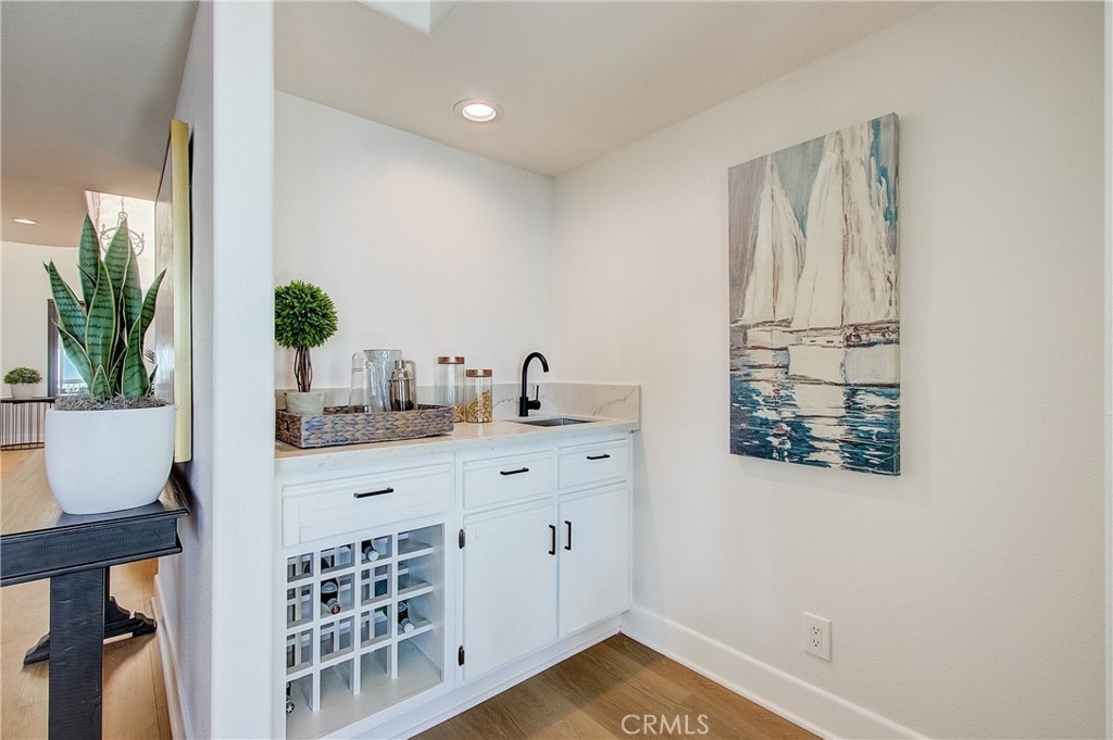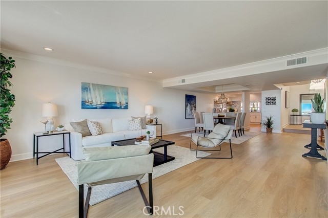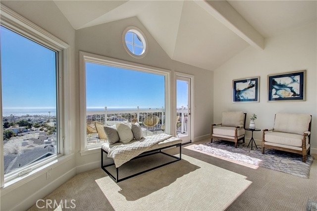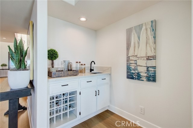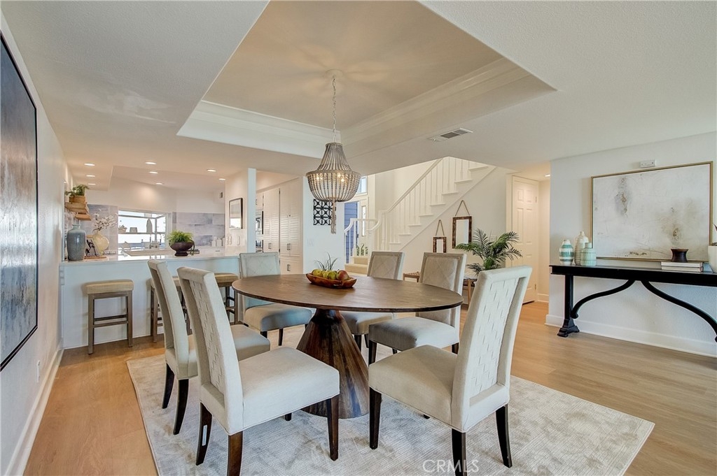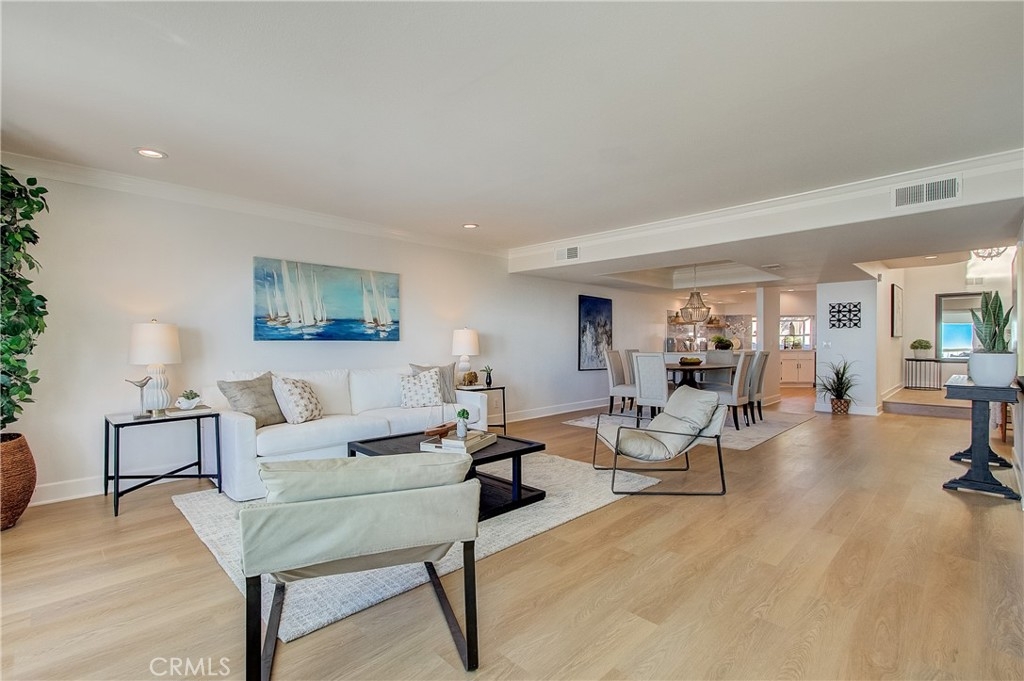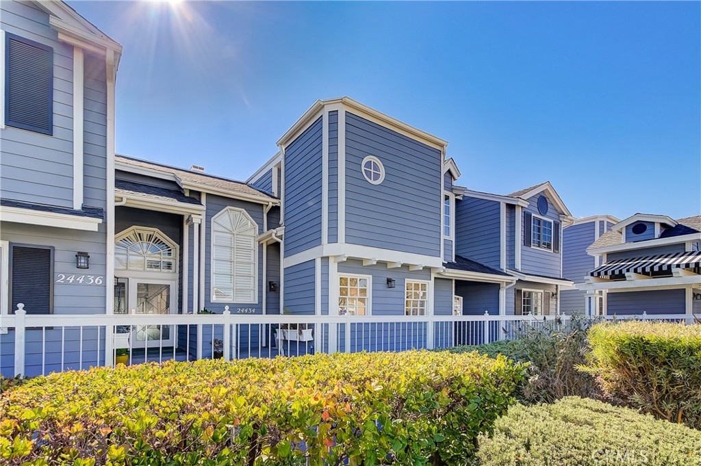 This beautiful recently upgraded home in Dana Point is ready for its new owners! New luxury vinyl wood plank flooring & paint, new lighting fixtures, along with newer windows, baseboards and crown molding compliment the bright and open floor plan. The upgraded kitchen features new stainless steel appliances, large tile backsplash, new quartz counter tops and large stainless steel single bowl sink, fresh white cabinets, large bay window, and breakfast bar that opens to the dining and living areas. Laundry closet with stackable washer and dryer is attached to the kitchen. The dining and living rooms flow seamlessly from the kitchen and feature updated chandelier lighting, wet bar, beautiful stone fireplace, several light-catching windows and a private patio to enjoy the breathtaking panoramic ocean and bay views. An updated powder bath with walk in shower completes the first floor. Upstairs the primary suite features new plush carpet, vaulted ceilings, an elegant fireplace with sitting area, a private balcony with more panoramic ocean views, spacious walk in closet space with built in organizers and an en-suite remodeled bathroom with new laminate vinyl plank flooring, new free standing bathtub beneath the skylight, separate walk in shower, dual vanity with new quartz counters, faucets, mirrors and lighting. The secondary master suite is a generous size with an adjacent updated bathroom. Two car parking and extra storage area in the gated subterranean parking area beneath the unit. Close to the harbor, shops and downtown entertainment. Welcome home!