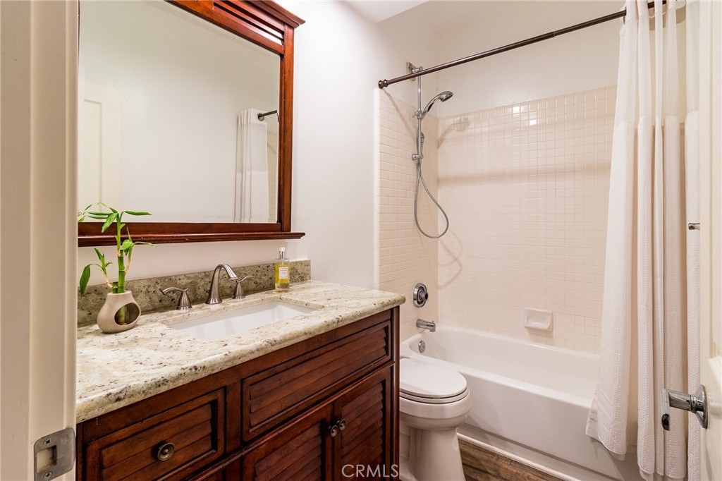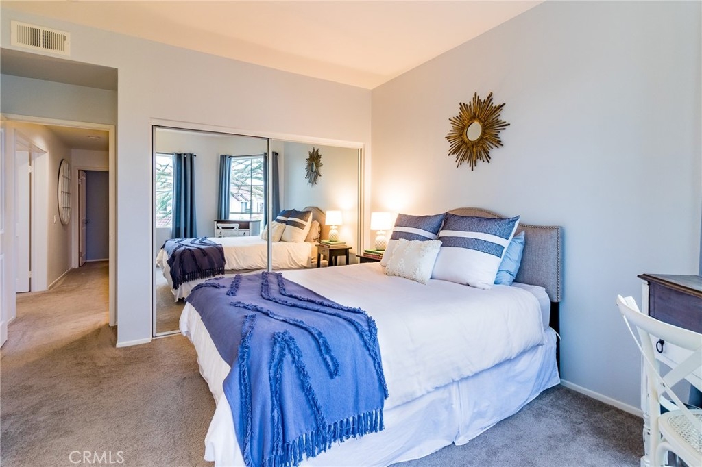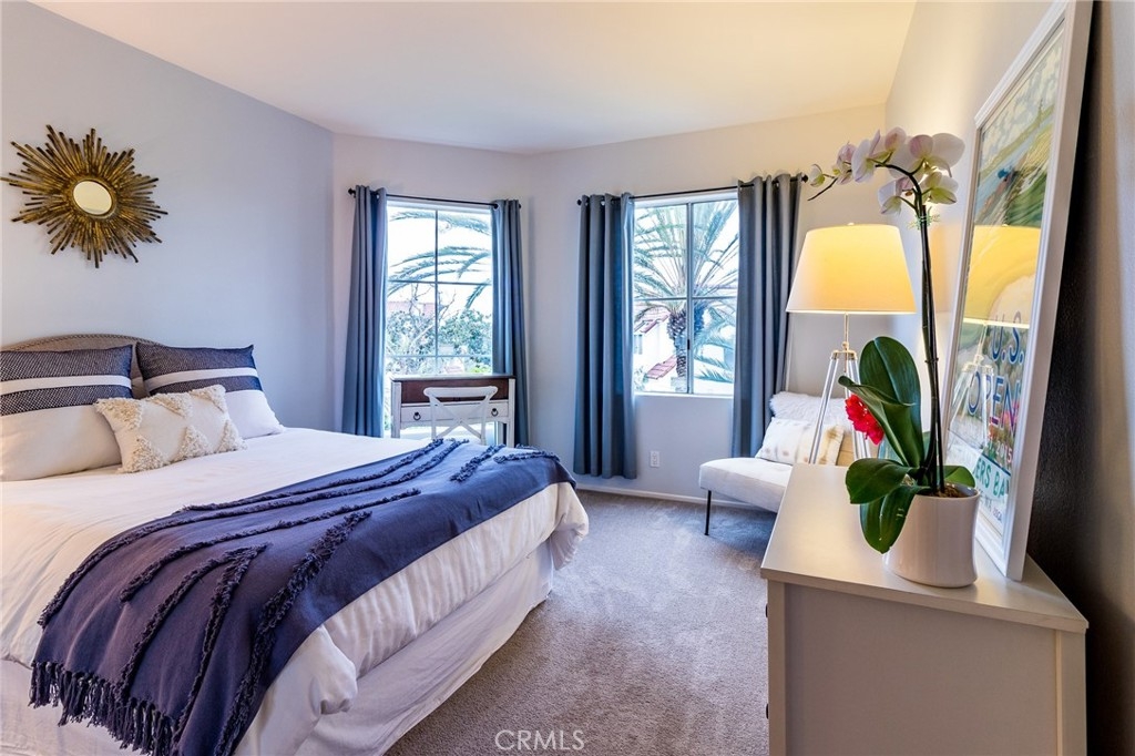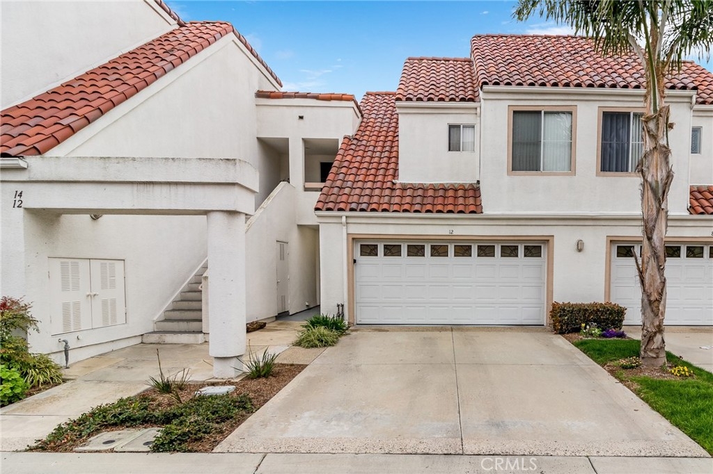 Enjoy the ocean close, gated community of Encantamar! You will enjoy the ocean breezes and the peek a boo view from the balconies/patios and feel content with the light and bright atmosphere! Newer laminate flooring, crown moldings, and recessed lighting make this condo feel fresh. The Kitchen has been remodeled with granite, stainless appliances, a farm kitchen sink and has plenty of storage and counter space. The powder room and secondary baths have upgraded granite top vanities and the master bath has a dual sink vanity, laminate flooring and upgraded shower. Both the master and secondary bedrooms are spacious. The master features a walk-in closet and a large patio off the sliding glass doors. The former laundry room has been converted to a storage room or can be used as an office space. The attached, direct access two-car garage, with Epoxy flooring, has laundry and lots storage space. There is also a driveway space for two additional cars. Enjoy the palm tree views, amazing shopping and restaurants across the street, and being close to to the harbor and beaches. Plus clubhouse, pool, spa, gym and exercise room. Public tennis courts, hiking trails and golf nearby. What a Life!