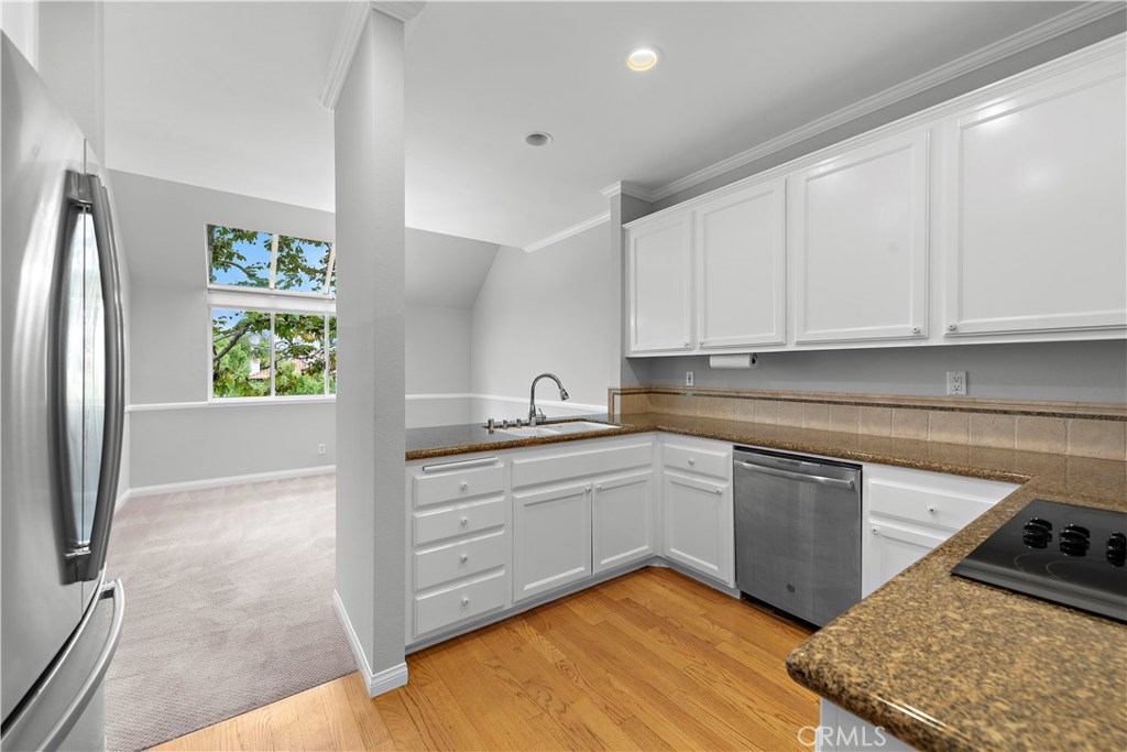 Welcome home to this beautifully updated townhome in the gated community of Encantamar. When you walk through the front door you will love the freshly painted wall color accented with white trim and cabinetry. Newer carpet in living, dining, and bedrooms and hardwood floors in hallway, stairway, kitchen and powder bath upstairs. Kitchen cabinets freshly painted, granite counters, newer stainless GE Profile appliances including dishwasher, microwave, wall oven, and refrigerator. Separate dining room with lots of light. Upstairs patio through sliding glass doors from the living room with storage closet – enjoy ocean breezes and great for entertaining. There are two bedrooms downstairs, two bathrooms, and large laundry room with washer and dryer. Master bedroom has ensuite master bath with large tub, separate shower, separate toilet room, and walk in closet. Downstairs patio through sliding doors from master bedroom with another large storage closet. Secondary bedroom with mirrored closet doors and secondary hallway bath with tub/shower combination and tile flooring. Full two car garage with direct access into the home and large full 2 car driveway. Encantamar amenities include clubhouse, fitness room, pool and spa. For tennis lovers, adjacent to Dana Hills Tennis Center with walk in gate access (from Terra Vista). Very close to Ocean Ranch Village shopping, Trader Joe’s, Cinépolis, restaurants and more. What a great place to call home.