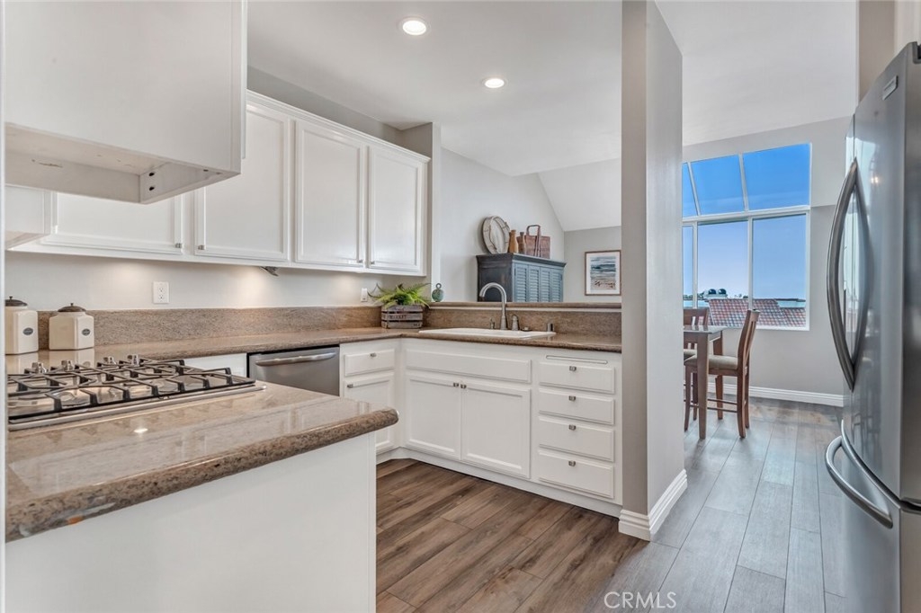 Upon entering this newly updated 2 bedroom, 2.5 bath Dana Point condo, you are dazzled by the distant Ocean View, visible from the balcony and nearly every room on the main floor! Located approximately 2.5 miles from Dana Point Harbor, this condo sets the stage for a classy yet casual life style. The many updates include luxury vinyl wood flooring throughout the main living area, stainless steel appliances and granite counter tops in the kitchen, beautifully updated bathrooms, two large bedrooms with new lush carpet and custom closets featuring built-in dressers. A second patio is located off the master bedroom, offering a private retreat to relax and enjoy the ocean breeze. The space also features a large interior laundry room and direct access to the attached two car garage. Located in the Encantamar complex, the community provides a clubhouse, pool, spa, and exercise room and is located near numerous restaurants, movie theaters, banks, Trader Joes, Starbucks, and shopping. Come live the Dana Point Life Style!