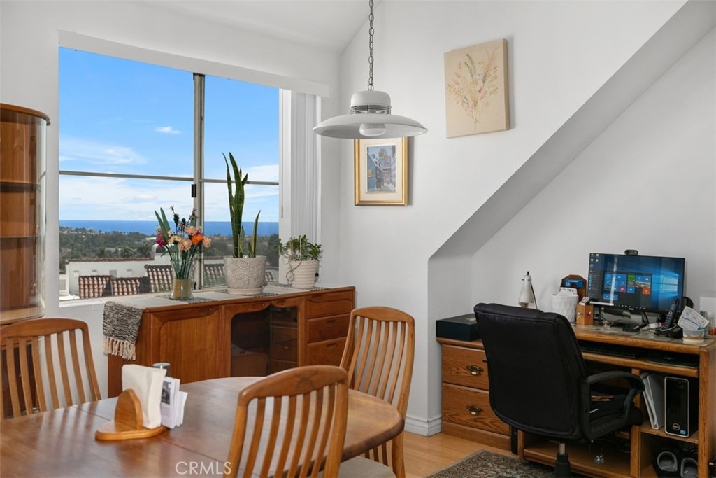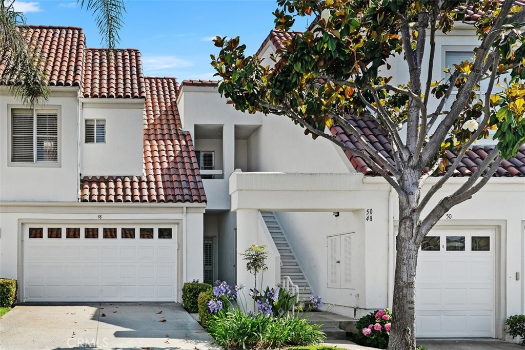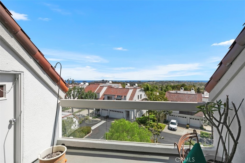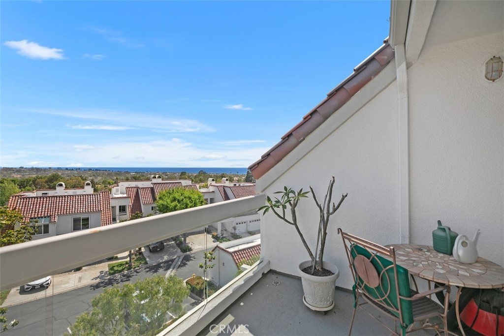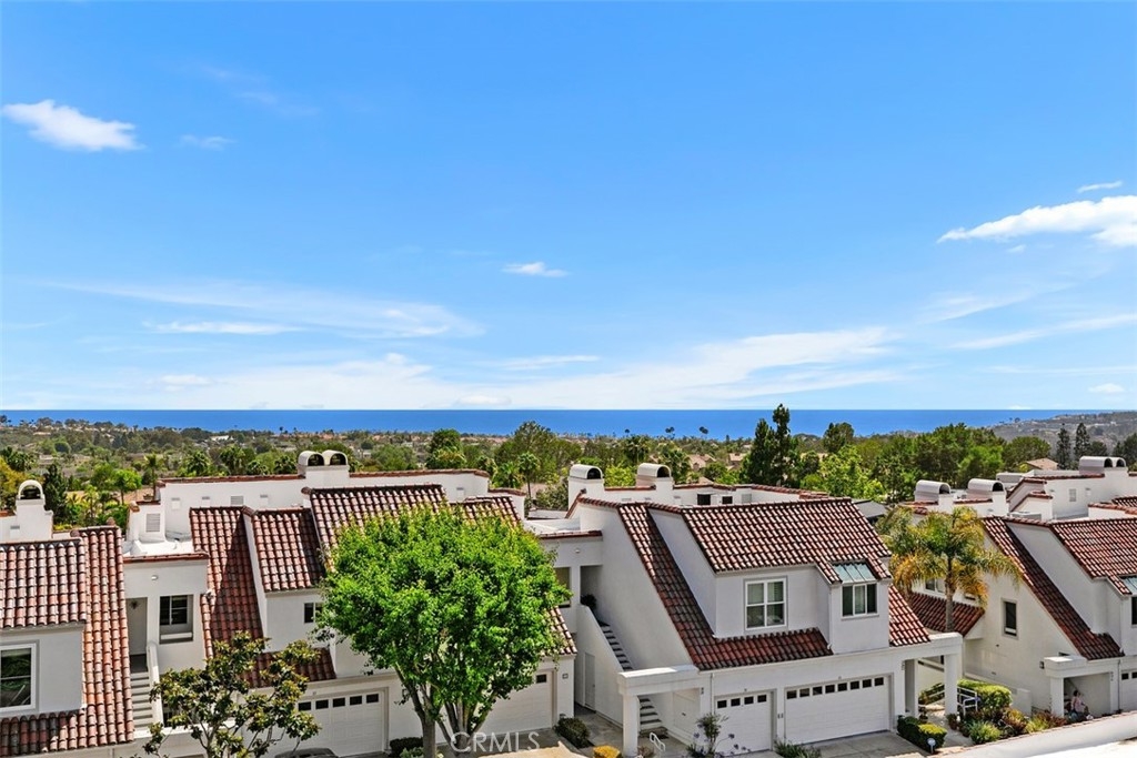 Experience coastal living at its finest in the coveted Encantamar Gated Community. Perched in a prime location, this light and bright upper-level home offers sweeping ocean and coastal views from the living room, kitchen, and private balcony — the perfect setting to enjoy morning coffee or spectacular sunsets. High ceilings and an abundance of natural light create an open, airy feel throughout the living spaces. The living room flows effortlessly into the dining area and kitchen, all designed to maximize the breathtaking ocean scenery. The kitchen features generous counter space, ample cabinetry, and is ideal for entertaining or everyday living. Step outside to your private balcony and take in the fresh ocean breeze while enjoying the coastal views. This peaceful outdoor space is perfect for relaxing or dining al fresco. The spacious primary bedroom offers vaulted ceilings, a large closet, and an en-suite bathroom with dual vanities and skylight. The second bedroom provides flexibility for guests, a home office, or additional living space, with a second full bathroom conveniently nearby. Additional highlights include a private single-car garage, your own driveway for extra parking, and in-unit laundry. With no neighbors above, this home offers privacy and tranquility. Excellent location close to Club House with resort style pool and spa and convenient to local shops and restaurants. Please note the HVAC system needs repair or replacement. Located minutes from Dana Point Harbor, beaches, coastal trails, and the Lantern District’s restaurants and shops, this condo offers the best of Southern California living. Whether you’re looking for a full-time residence, vacation getaway, or investment opportunity, this home delivers the laid-back coastal lifestyle Dana Point is known for. Don’t miss this rare opportunity to own an ocean-view home in one of Orange County’s most desirable coastal communities!