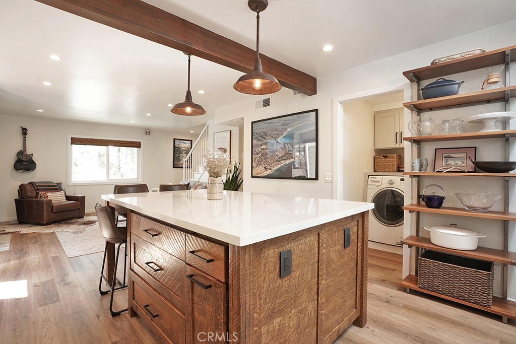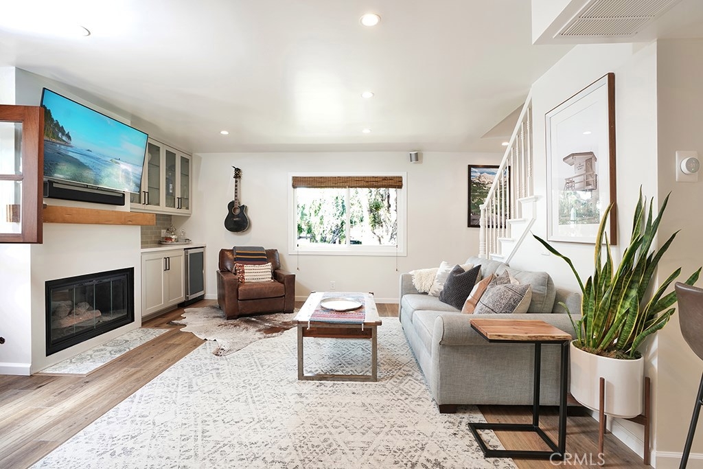 Located on one of the most desirable streets in Dana Point, this stunning detached unit is just minutes away from Dana Point Harbor, the Lantern District and beautiful Heritage Park. Beautifully upgraded, the home includes 2 bedrooms and 2.5 bathrooms. An inviting wood dutch door welcomes you into a bright, airy and perfectly fitted multi-level unit. The charming living room features a fireplace and flows seamlessly into a designer kitchen featuring a farmhouse sink, custom cabinetry, quartz countertops and a spacious kitchen island bar.The fully upgraded kitchen leads you outside to a spacious patio that is perfect for entertaining! A full laundry room is conveniently located right off of the kitchen. Two beautifully designed bedrooms and bathrooms upstairs, including the Master with a spacious walk-in closet, offer an ideal layout for family living or work-from-home. Additional upgrades include new flooring throughout the unit, custom wood vanity, quartz countertops, bamboo window coverings, and bar area complete with a wine fridge. The community features a private pool and spa and includes a gated underground garage with a large storage unit. A wonderful home located in a prime beach town community – do not miss this rare opportunity!