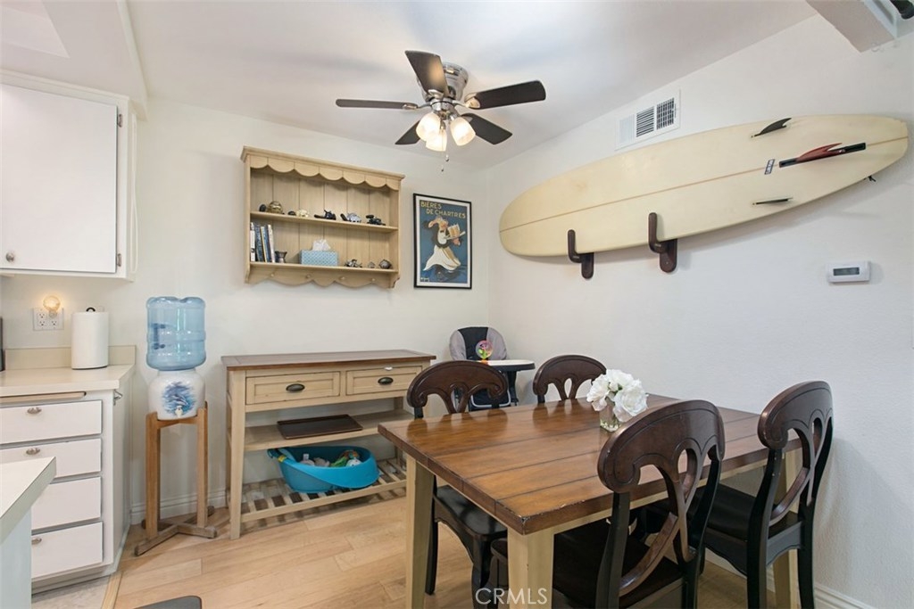 Fantastic Harbor Creek Community, Incredible location, less than one mile and an easy walk to PCH, Harbor, Doheny Beach, and great restaurants. This fabulous 1 Bedroom, 1 Bath lower level unit is a rare find. Move in ready, recently updated with wood laminate flooring and stainless appliances. Resort style living, gated community, includes pool, spa, serene creeks,lush landscaping, sauna and private access to the Sycamore Trail for a short walk to the beach. The entire complex has been repiped. HOA dues include water, sewer, trash and all exterior maintenance. This is a perfect primary residence, second home or investment property.