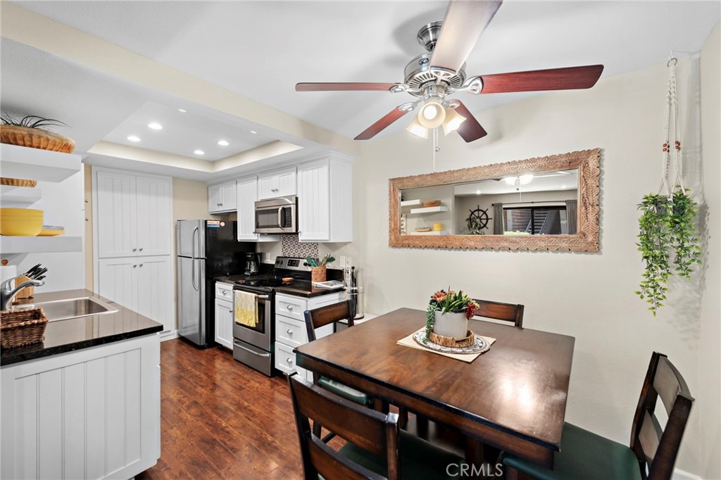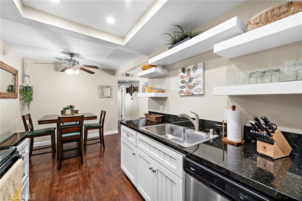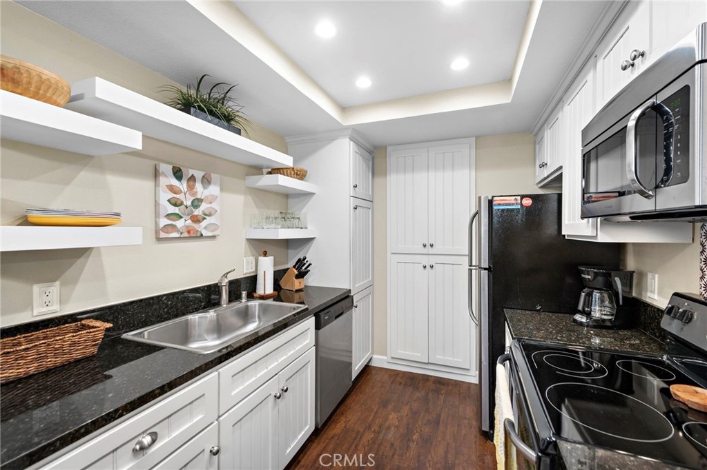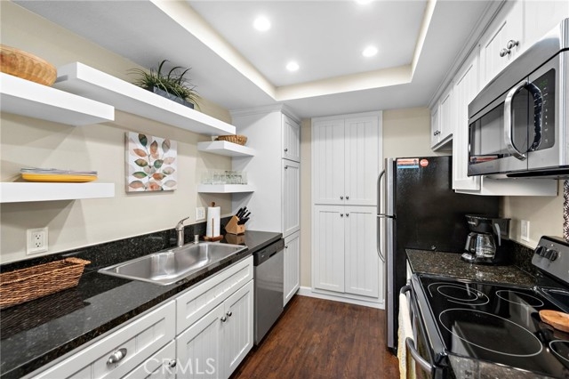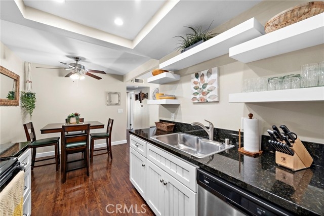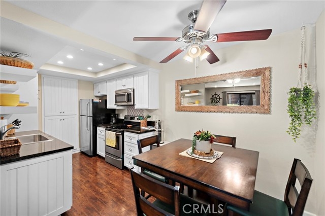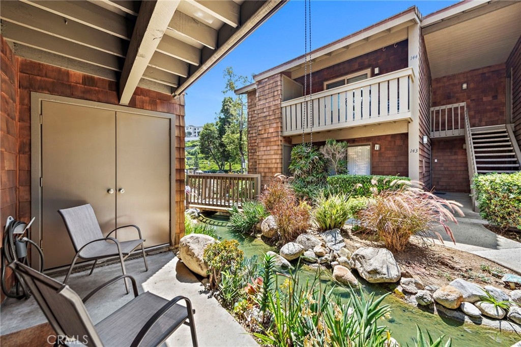 Rare to the market in Dana Point’s ‘best-kept-secret’ neighborhood, Harbor Creek, this ground-level, corner/end unit with 2 bedrooms / 2 full bathrooms is a very coveted & uncommon unit. Desired for its affordability with close proximity to the beach nearby, Harbor Creek is less than a mile to Doheny State Beach & the iconic DP Harbor (currently undergoing a massive revitalization). The beautiful Southern California beaches offer an amazing lifestyle, all easily-accessible - just a short bike ride or walk away down the creek trail from the unit! Water sports at the marina include sailing, fishing, kayaking, paddle boarding, & world-class surfing for all skill levels at Doheny’s popular surf spots. Central to downtown Dana Point & trendy Lantern District offering several restaurants, shopping, year-round local events including summer concerts & festivals. Upon arrival, a tranquil creek welcomes you at the entry where the private & peaceful unit can be accessed easily near the front of the neighborhood. Inside, an updated & inviting single level space (no steps) draws you inside with a beachy & coastal interior. A slider door off the living room leads to a shady creek-side patio - a relaxing outdoor area. A private and enclosed closet hosts a newer full-sized washer/dryer. The cottage kitchen with stainless appliances, granite counters, open shelving, & shaker cabinetry leads to the dining niche just off the living room creating one large, main living space. Rich walnut-colored laminate floors complete the interior with exception to tile in the bathrooms. Other upgrades include ceiling fans, mirrored closet doors, & newly added heat pump offering AC/heat. A very well-maintained community known for its manicured landscaping, peaceful & meandering creeks, & well-kept community amenities including a security gate for private parking, huge community pool, spa, bathrooms & clubhouse, dog walking areas (pet friendly complex - 30 lb weight limit), and private gate access to Sycamore Creek Park adjacent to the San Juan Creek trail, a straight shot to the beach. The entire Harbor Creek complex has been re-piped - a major upgrade for all homeowners! The HOA covers water, trash, & exterior maintenance for extra-easy homeownership. Your new condo also includes one assigned covered carport with ample guest parking throughout the community. This is a unique opportunity at a 2/2 condo here, very rarely available!