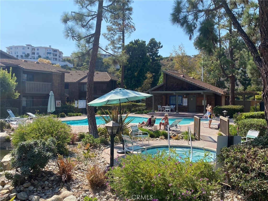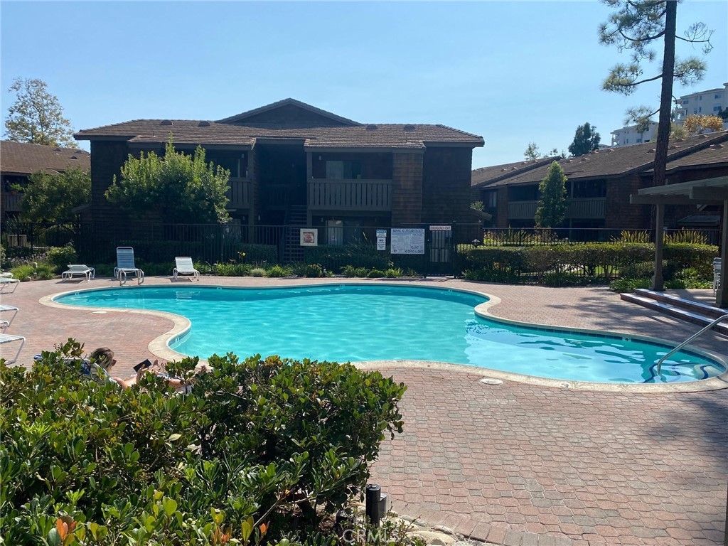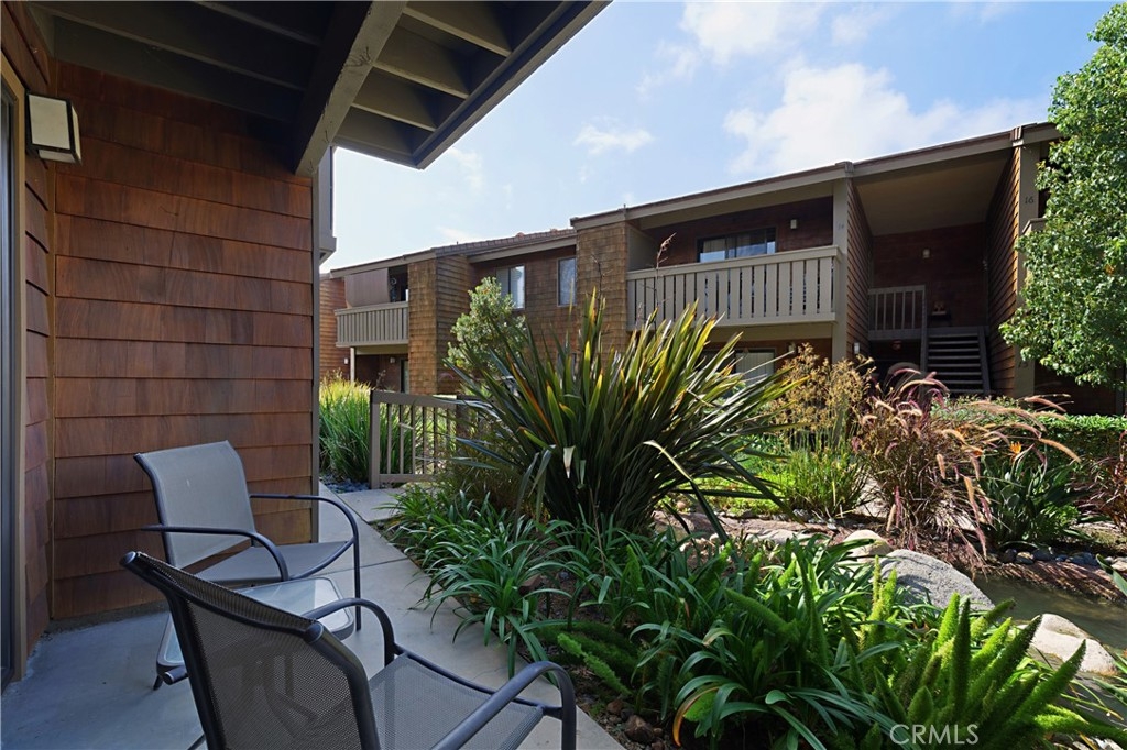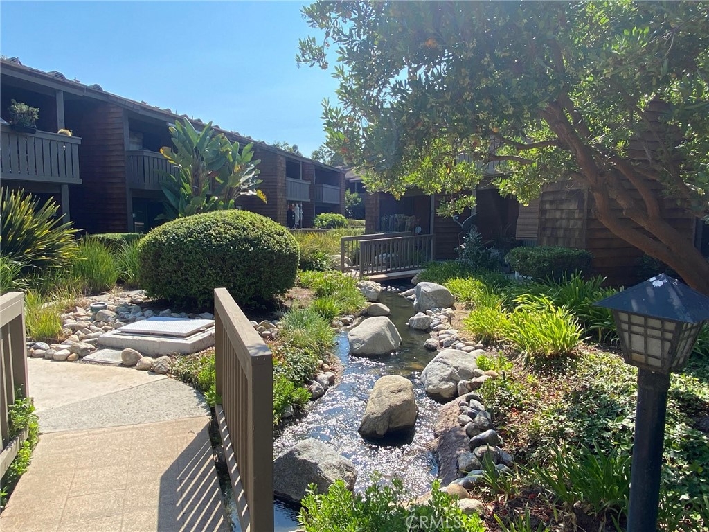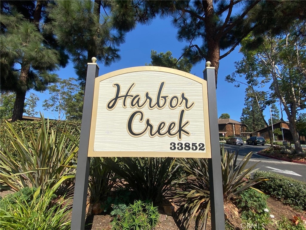 Located within the highly desirable community of Harbor Creek, this beautifully appointed ground level one bedroom one bath condo is the lowest priced property in all of Dana Point. Harbor Creek offers its residents controlled access, a community pool, spa & sauna, along with babbling brooks, streams & ponds that flow throughout the community giving it a resort like feel. Once inside your new home you will find many amazing features including tile flooring throughout (no carpet), neutral paint colors, recessed lighting in kitchen, ceiling fans, window shutters & more. Your Living Room opens up onto a private patio which boasts the soothing sound of the creek running right in front of your property, along with a storage closet featuring your stackable washer & dryer which stays with the home. The galley kitchen offers updated counters, white cabinetry, recessed lighting & best of all the appliances (including fridge) stay. There is a small dedicated dining room as well. The primary bedroom is of great size & includes a walk in closet plus en suite renovated bath, complete w/ a newer vanity, stone countertop, upgraded plumbing & electrical fixtures and a tub / shower combo. Recent upgrades include a new sliding glass door & newer electrical & plumbing fixtures. The community sits adjacent to Sycamore Creek Park & San Juan Creek Trail, which offers a children's play area, community basketball & tennis courts, plus the trail leads you right to the beach. One assigned parking spot + ample guest parking. Run don't walk to this one, as it will not last long! HOA covers water (including hot), trash, sewer and gas.