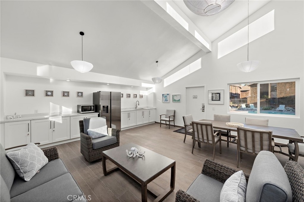Rare upstairs pool-view condo-home located in the highly desired Harbor Creek community! This turnkey one-bedroom condo has been beautifully updated with brand-new luxury vinyl flooring, baseboards, fresh paint, modern hardware, appliances, and additional upgrades throughout. The open and spacious floor plan features high ceilings in the living area, an abundance of natural light, and a private patio with a prime location overlooking the pool—without facing another unit. Additionally, you’ll find a laundry closet with washer/dryer hook-ups and additional storage off the private patio, one assigned covered carport, and ample guest parking throughout the community. On-site amenities include secured parking behind gate, pool, spa, clubhouse and private access to the San Juan Creek trail where you can walk or bike ride straight to the shores of Doheny Beach. HOA includes all exterior maintenance, water, sewer, trash and entire complex has been re-piped. Join a vibrant coastal lifestyle with whale watching, sailing, surfing, paddle boarding, summer concerts and festivals, a variety of dining experiences and much more. Easy access to the 5 freeway as well as shopping and dining within walking distance. Don't miss this opportunity to own a slice of life in Dana Point!
