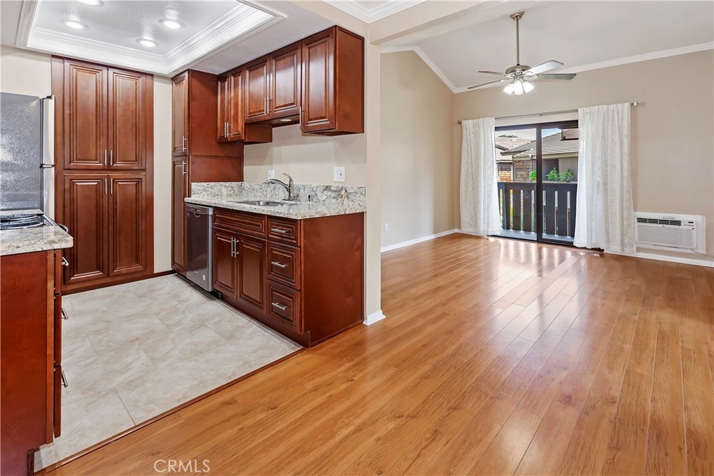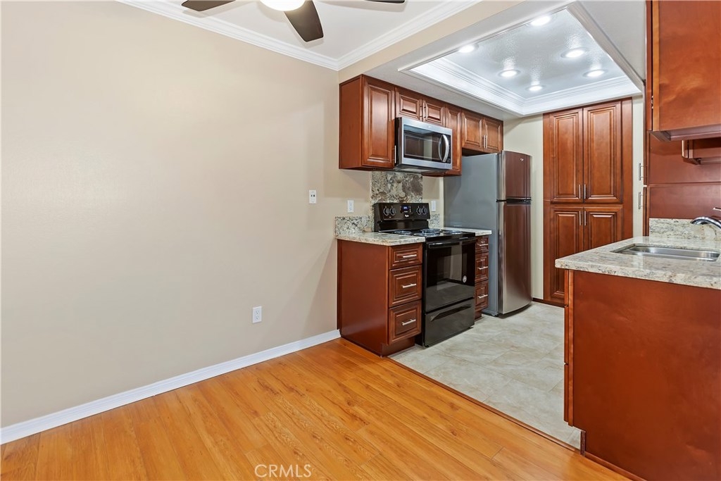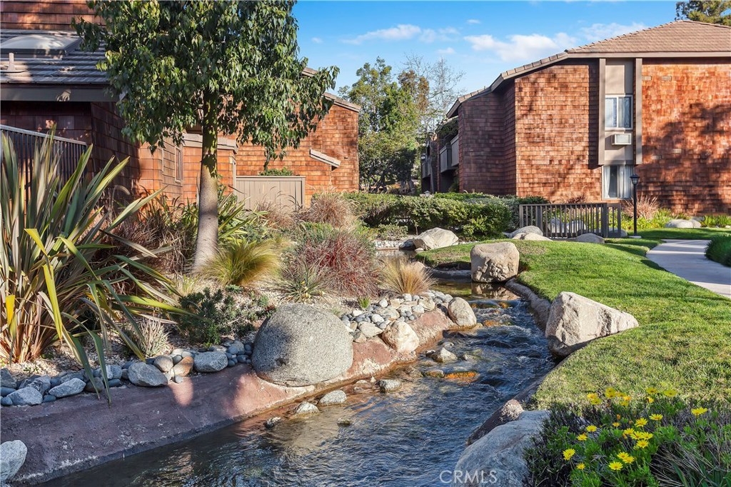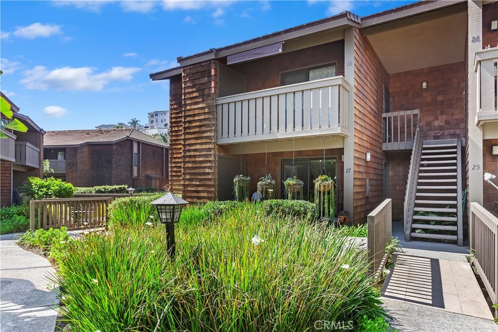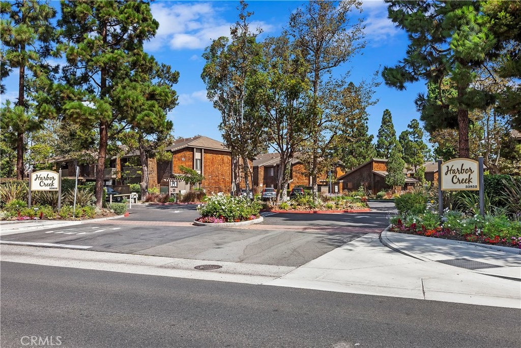 Well located and desirable controlled access Harbor Creek community within a convenient distance to the sand at Doheny State Beach/Park and Dana Point Harbor. Well maintained community and pristine landscaping. Quiet end unit with the sounds of running streams and soothing ponds encompass this very private upper unit with high ceilings. Gentle ocean breezes and views of the streams from the outside deck. You can fall asleep from the sounds of the streams outside your bedroom window. All new rich warm cabinets in the bathroom and kitchen. Both feature granite counters and all new fixtures & lighting. New LCD recessed lighting in kitchen, new electric range, microwave, garbage disposal, newer dishwasher and includes new refrigerator. There are 3 ceiling fans, a walk in closet and new air conditioning unit. Outside on the deck find the laundry closet that fits a full size capacity washer & dryer. Your carport is located a convenient distance at the rear of development, Space #223. Just behind Harbor Creek is a gate off of the parking area to Sycamore Creek Park and trail. There is a children's play area and terrific trails that will take you to the beach in a few minutes. The HOA covers the water (including hot), trash, sewer & gas. Located off the gated pool & spa is a community laundry & sauna.