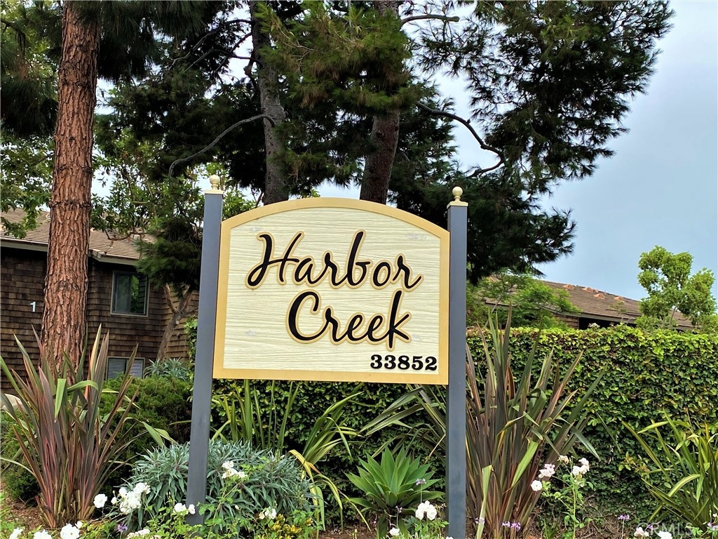 Welcome to Harbor Creek in Dana Point. This cozy 1 bedroom condo won't last long. The unit was recently updated with new flooring, new faucets and plumbing. There are ceiling fans in each room and all appliances are included. The large private balcony off the family room has plenty of room to BBQ and relax. This unit is clean and move in ready. Less than 1 mile from the beach, shopping and freeways. The location is perfect for your weekend getaways or for the everyday beach goer. This unit is nestled in one of the best condo communities in the area. Walking through the neighborhood you'll love the tranquil setting; There are several small streams and ponds interconnected throughout the common areas providing a tropical resort feel. The large pool and spa is gated and centrally located for easy access. There is a dog park on site as well as gated access to the sycamore creek trail that leads you straight to Doheny State Beach or San Juan Capistrano. Parking is easy and secure with the onsite gated and covered parking lot. There is 1 assigned parking space and 2 guest parking spaces (72 hour parking) for this unit. Other Amenities include a Sauna, community Laundromat, and Security Patrol.