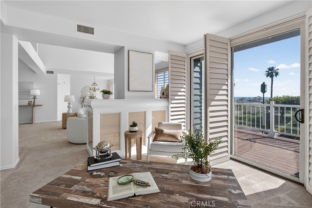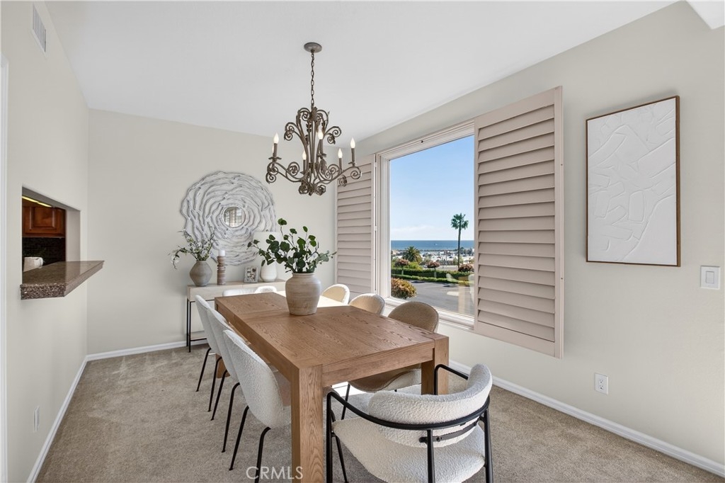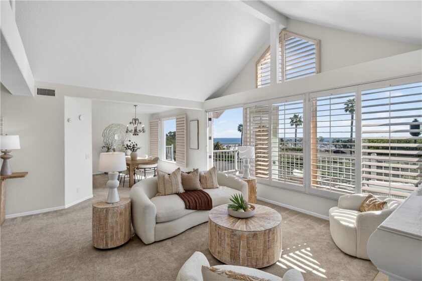 Perched above the Dana Point Marina in the prestigious and popular gated community of the Lantern Bay Villas, this spacious ocean and harbor view residence embodies casual coastal elegance while capturing the ever-changing spectacular views from all main rooms. Rarely available, the "Constitution" Plan provides over 3,100 square feet of easy indoor/outdoor living complete with vaulted ceilings, an abundance of light, refined architectural details and an open floor plan that flows seamlessly room to room. The ocean view greets you as you step inside the main floor entry while the expansive open design leads you to a living room with dual-sided fireplace, office/den, dining room, and large "sit-down" bar with wine refrigerator and sink. All main rooms enjoy the amazing ocean views and open directly to the large deck perfect for everyday gatherings, alfresco dining and watching the 4th of July fireworks. The warm inviting kitchen with breakfast and serving bars, stainless steel appliances and granite counters, opens to both the ocean view dining room and to the cozy family room. A lovely powder room rounds out the main floor. The lower level spotlights a serene and stunning primary suite designed for comfort and relaxation with fireplace and sitting room area, bar with sink and refrigerator, ocean view and large patio via French doors. The primary bath includes dual vanity sinks, separate tub and shower plus a walk-in closet. Two additional guest bedrooms with ensuite baths, one with ocean view, are on the lower level plus a laundry room and a separate patio with extra storage cabinet. This seaside retreat includes a total of 3 bedrooms and 3.5 baths. The community is one of the most sought after enclaves along the coast. Residents enjoy a Clubhouse, pool, spa, weight and locker room, tennis and pickleball. Enjoy resort-style coastal living all year around just moments away from cafes and fine dining, harbor walks, boutique shops, the newly revitalized Dana Point Harbor and chic Lantern Bay District, famous beaches, 5-Star Hotels and the Links Golf Course. Live the California dream in historic and charming Dana Point known as the Dolphin and Whale-watching capital of the world.