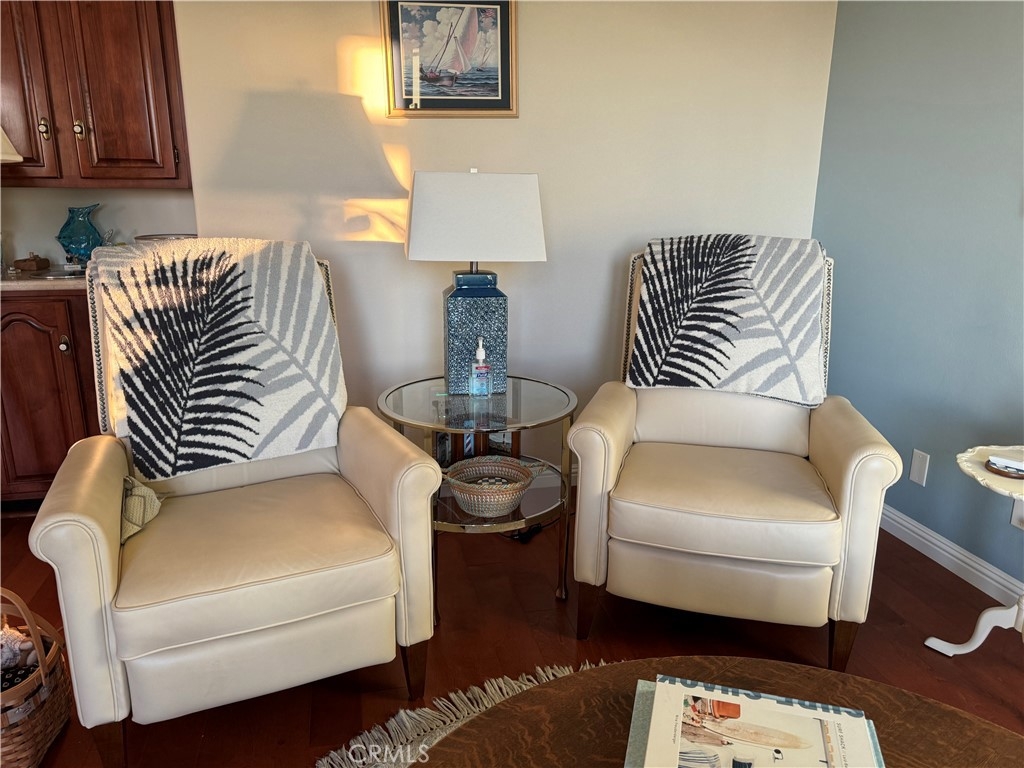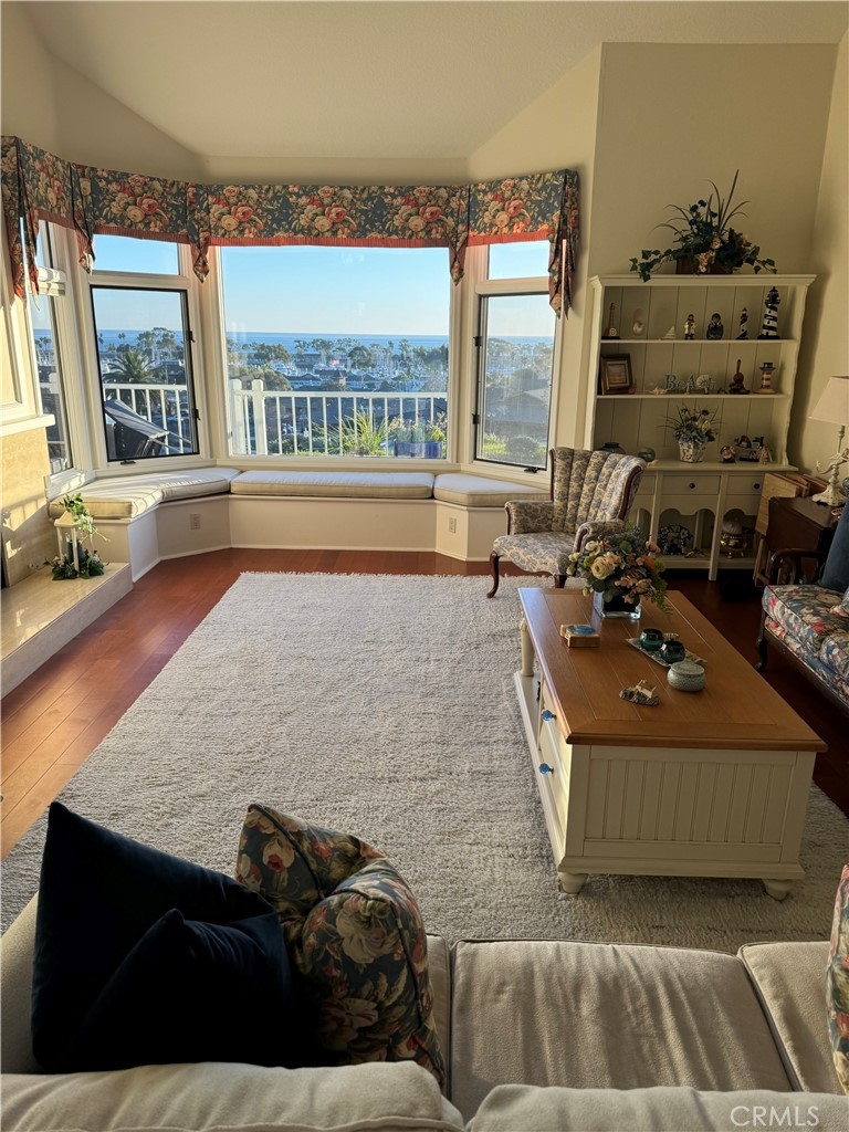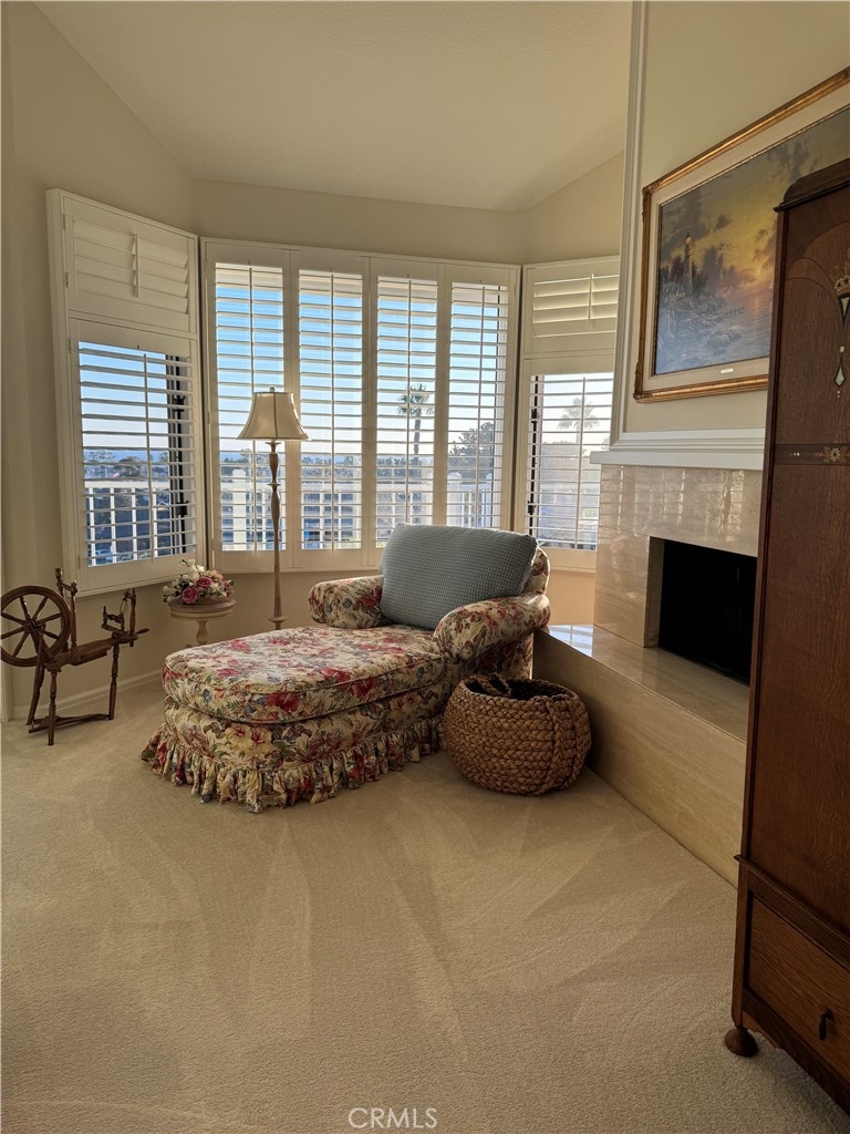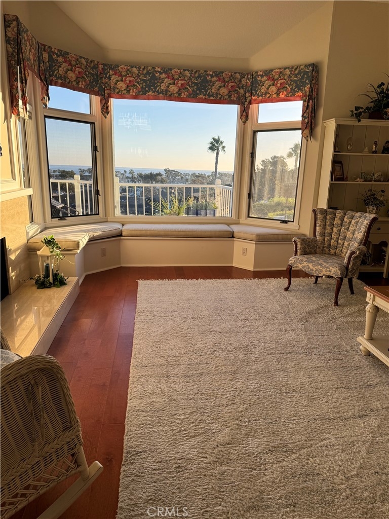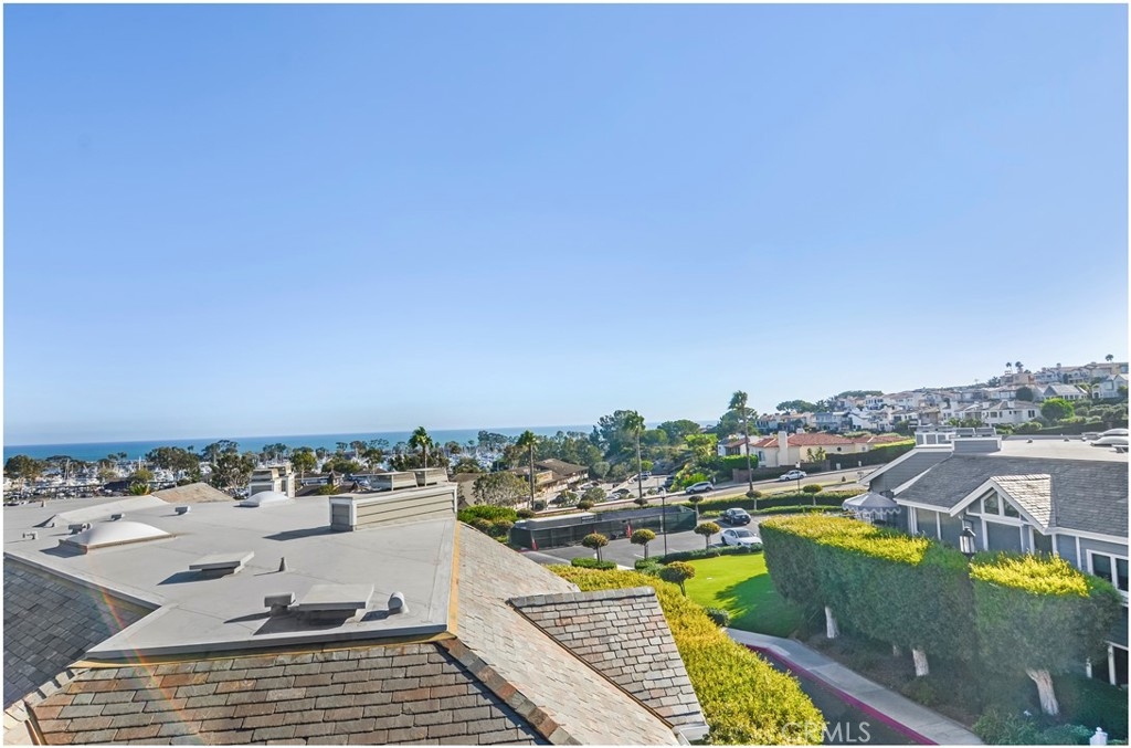 Mind blowing ocean and Dana Point Harbor views from this immaculate upper unit. The flooring is flawless, the rooms are spacious, and it is a super clean unit with original baths and kitchen tiles. The second you open the door you see the magnificent ocean. High ceilings throughout, a separate dining room, and ample eating area in the very spacious kitchen. Updated oven and stainless steel refrigerator. Off the living room with a beautiful fireplace is a bonus room with amazing ocean and harbor views. Perfect as a den or in home office. The primary view also includes a lovely fireplace and is super spacious with plush off-white carpet. Great closet space and attached is a wonderful large primary bath with a separate tub and shower. The second bedroom is also a good size with views of the darling patio area. Separate laundry room with washer and dryer. Assigned parking in community garage! The view is breath taking! This is an upper one level unit, but there are 8 stairs to the upper unit, then there are two steps down from dining room area to living room and bonus room areas.