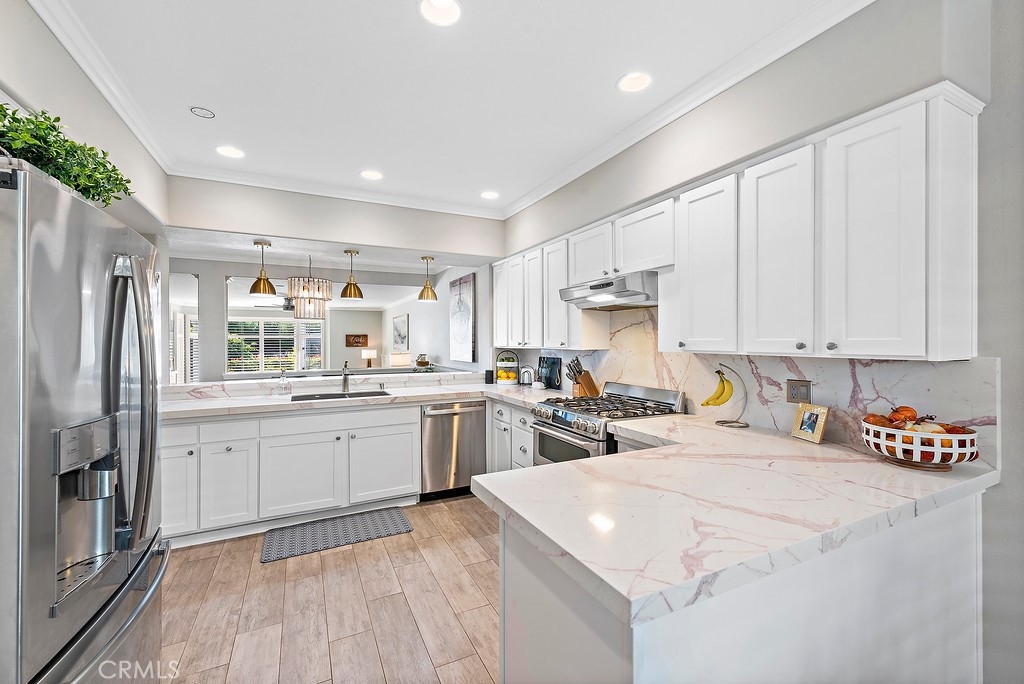 Feel like you are on vacation every day at this high-end, executive property in the highly-coveted "Lantern Bay Villas" with Peek-A-Boo Ocean Views from the Living Room!  Upon entry you are immediately drawn in by the open sight lines, pleasing finishes, and natural light that flows throughout.  Enjoy cooking in the sizable gourmet kitchen with gorgeous quartz countertops, crisp white cabinetry, stainless appliances, and the perfect nook area for casual meals.  Adjacent to the kitchen is the formal dining area where hours will be spent entertaining family & friends. Relax in the spacious family room while cozying up by the fireplace or admiring the views.  The spacious master retreat is the perfect place to unwind at the end of the day complimented by a raised hearth fireplace, french doors leading out to the patio, and a luxurious, spa-like master bath with dual vanity, soaking tub, and large walk-in shower.  The secondary bedroom is very generous and offers a mirrored closet door along with a slider leading you out to the front patio.  Nearby you will find the full hall bath with tub & shower.  Laundry room features side by side LG washer / dryer along with additional cabinetry.  The den offers endless options such as a home office, game room, or as a guest room as it has built-in murphy bed along with a closet.  "Lantern Bay Villas" is definitely resort living with the amenities offered: Tennis, Pickleball, Pool, Fitness Center, Jacuzzi, PLUS charging stations for your electric vehicle.  Close proximity to the recently renovated downtown Dana Point, the Harbor, boat slips, beaches, dining, shopping, local festival events and concerts.