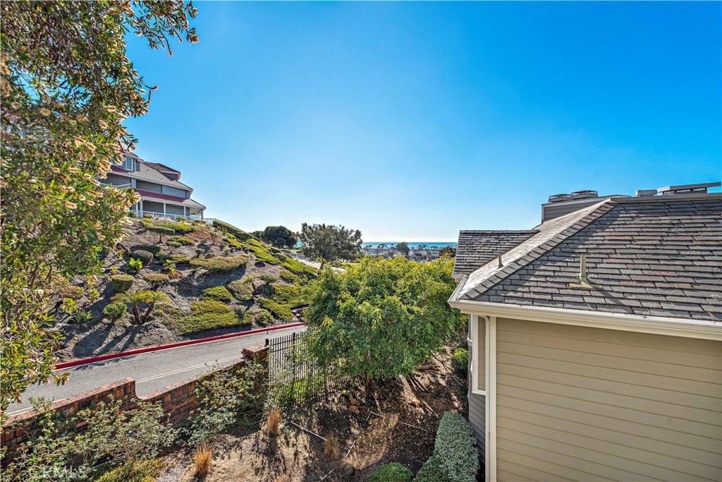 FANTASTIC OPPORTUNTIY TO OWN THE "BEST LOCATION' IN LANTERN BAY VILLAS!" Those are the seller's words after spending much time searching the complex B4 purchasing. Awesome Ocean View deck, LR & FR. GREAT flr plan w/formal dining room & eat in kitchen, a den or office & that is open to a spacious living/family room! Fireplace for cozy cool evenings or a welcoming feel! Lovely built-in storage, wet bar, & mini fridge. The master is spacious & has 2nd fireplace. Loads of closet space, a big bathroom, great guest rm & laundry room too! The best part here is being on the end with nothing going on there, loads of extra light compared to most locations & privacy! This is a single main level end unit located at the quiet private end of the villas. Property features a wrap around covered deck w/loads of rm, VIEWS & amazing privacy. Gated community w/impeccably maintained buildings & grounds, just a short walk to harbor, shopping & beach! This spacious 2 bedroom, 2 bath villa offers high ceilings, newer top of the line appliances incl. 6 burner gas range, fresh int. paint & carpet. Heat/AC are new, there are parking for 2 cars & storage in gated garage. An Elevator (just 33 steps from your front door) & garage unloading area, make bringing the groceries home easy! This is what CALIFORNIA is all about. LIVE AT THE BEACH! It makes it all worth while! The association is amazing! Pickleball anyone? How about a great work out @ the gym, then a walk on the harbor to cool down?