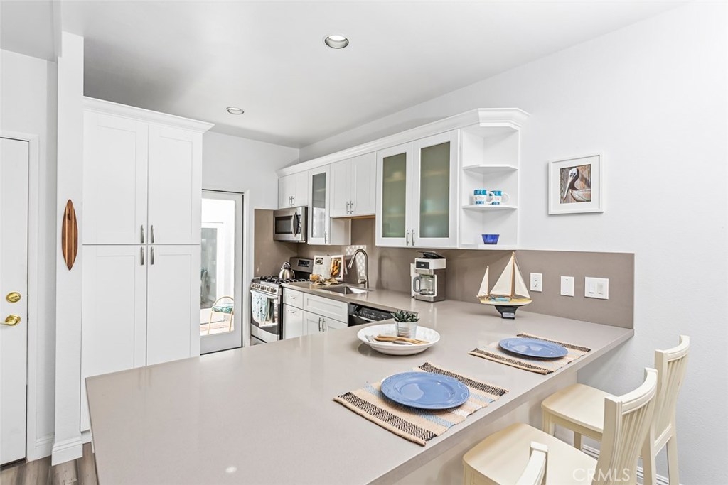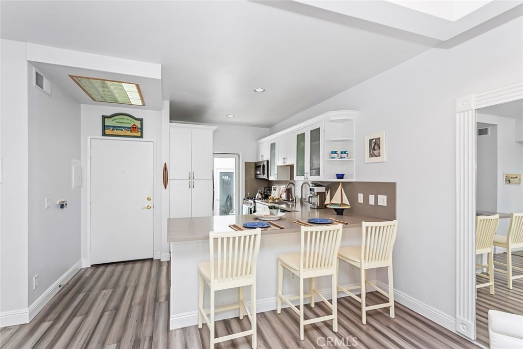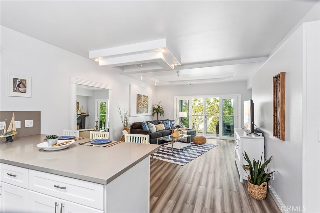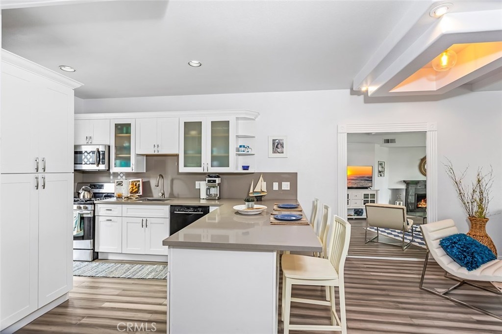 Resort Style living at it's best in this highly sought after gated community of Lantern Hill in Dana Point. Renovated single level 1 bedroom, 1 bath, light and bright open floor plan with custom bamboo flooring throughout. New double pane window sliders. Huge balcony that spans out to master bedroom. Cozy fireplace in living room, high ceilings with recessed lighting. Also, has a 1 car garage with direct access to breeze way to kitchen entrance. Stainless Steel appliances with exquisite hardware to finish off the white kitchen cabinets. Shower-tub with curved glass shower barn doors and custom vanity sink bowl that sets the artistic tone. This beautiful gated community has many amenities to offer such as Pool, Spa, recreation room with saunas. Close proximity to the fast growing Lantern District, Dana Point Harbor and Doheny Beach and Five Star hotels. This is a great starter home or lock up and go second home in the fabulous beach city of Dana Point.