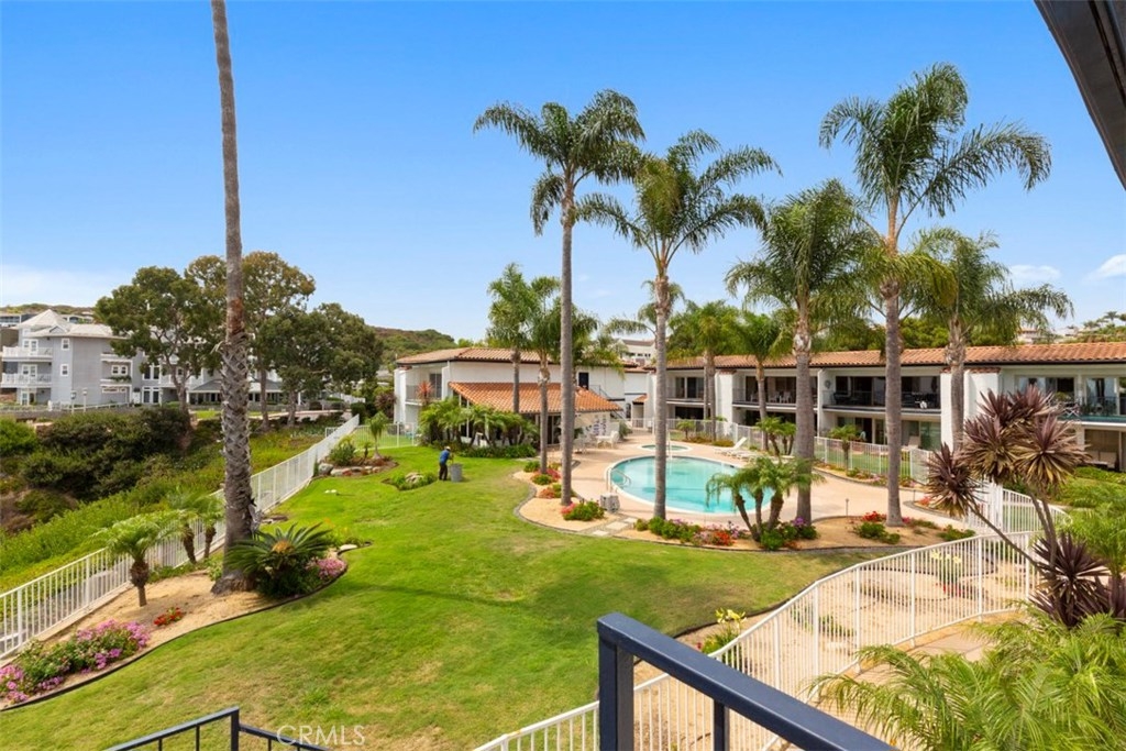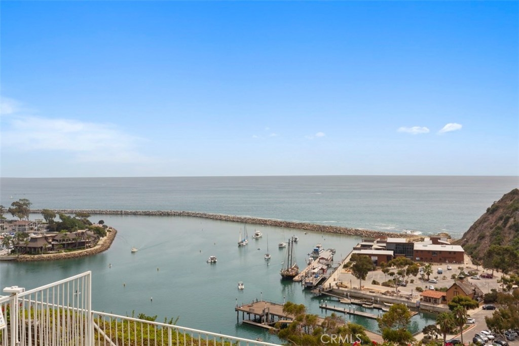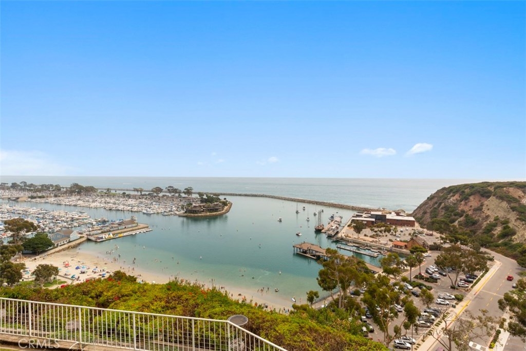 JUST FELL OUT OF ESCROW! Resort living at it's best! Stunning ocean view condo located on the bluff above Dana Point Harbor. This turnkey property has the look and feel of a coastal resort both inside and out. This "front row" end-unit condo is rarely on the market! Situated in an intimate 34 unit complex on one of the most sought-after streets in Dana Point. It's walking distance to all of downtown Dana Point restaurants, the Harbor and the coastal cliff pathway to Strand Beach. Ocean views from the living room, dining room, kitchen and master bedroom. Spacious private patio overlooking the harbor great for entertaining. This totally remodeled unit features designer cabinets throughout, gorgeous modern granite, recessed lighting, custom built-in entertainment unit, Fisher Paykel dual dishwasher and Bosch oven. Both baths have been totally remodeled with designer bath fixtures, lighting and modern tile. Baths have dual sinks, and the master bath features and oversized shower. The gated subterranean parking with two assigned spaces and locker storage is directly below the units. Looking for a big ocean view? You found it!