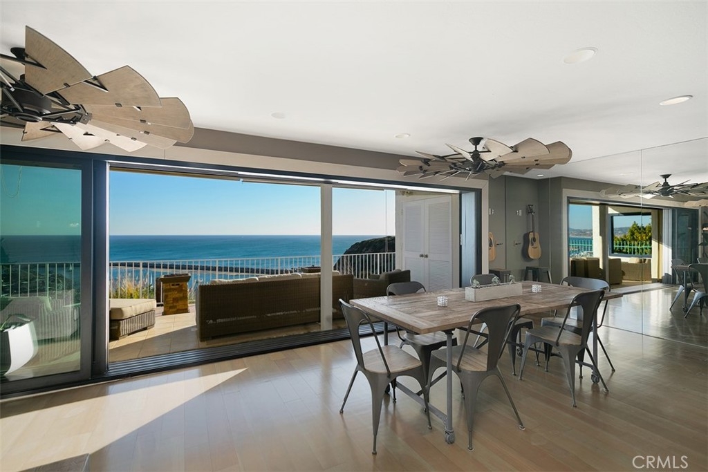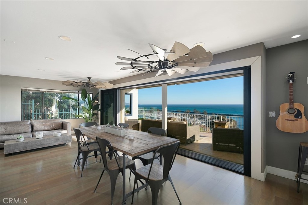 STUNNING - Panoramic ocean views of Dana Point’s Harbor revitalization through a 15' La Cantina pocket door from this beautiful first-floor end-unit home located in the Lantern District. High ceilings, natural light and coastal breezes fill this 2 bedroom, 2 bath gate-guarded home featuring wood floors, recessed lighting, radiant heating and two gated subterranean parking spaces with large storage cabinets. Enjoy a cup of coffee or happy hour on your private patio with endless coastal ocean views. The kitchen boasts stainless-steel appliances with wood stained cabinets, bar seating and granite counter tops. Community amenities include a heated pool and spa, lounge seating and a clubhouse. This home is centrally located to downtown shops, luxury resorts, art galleries, restaurants, entertainment and a community trolley.