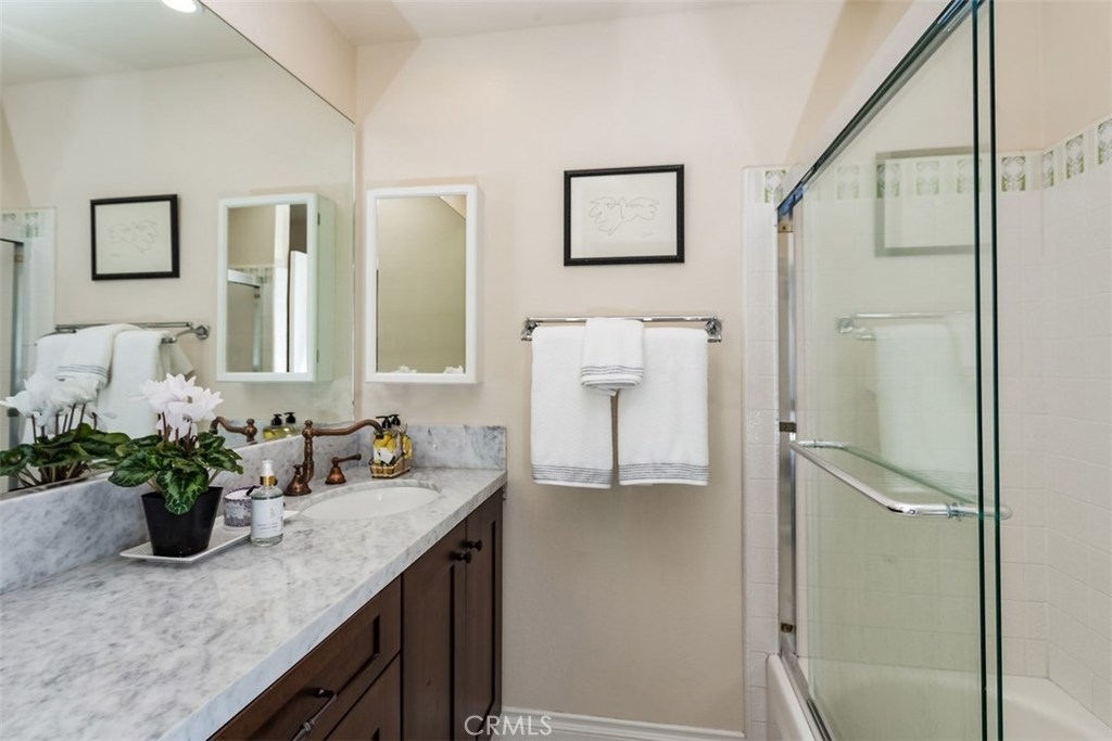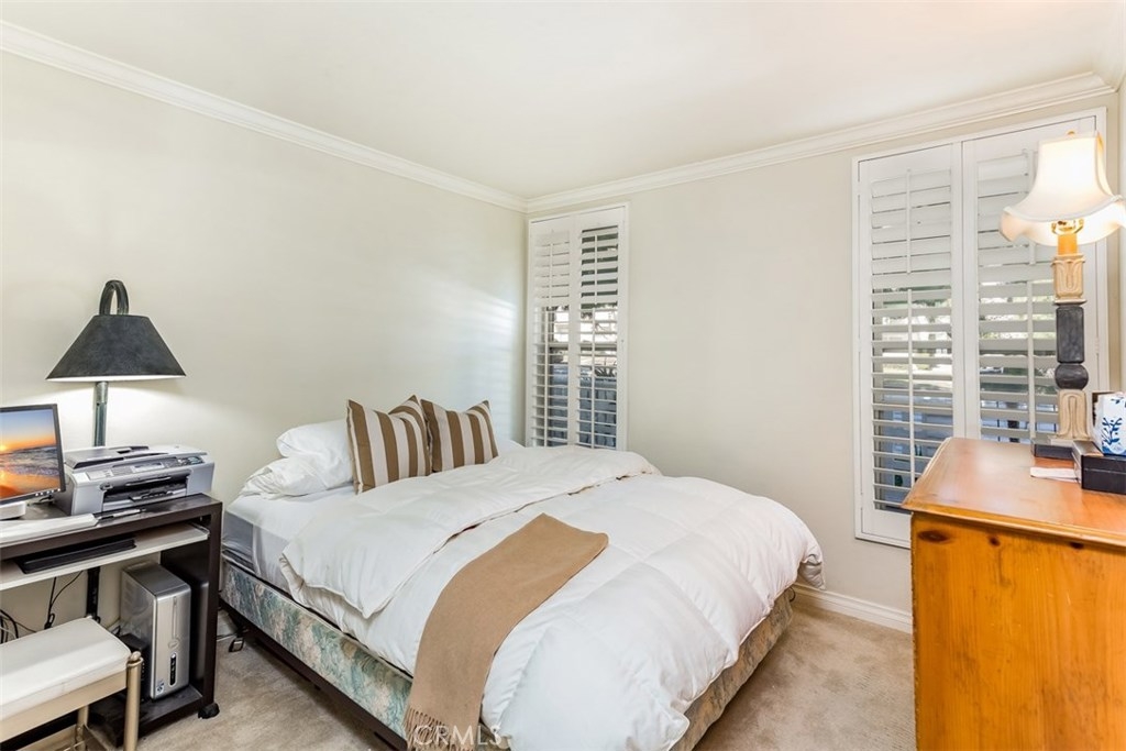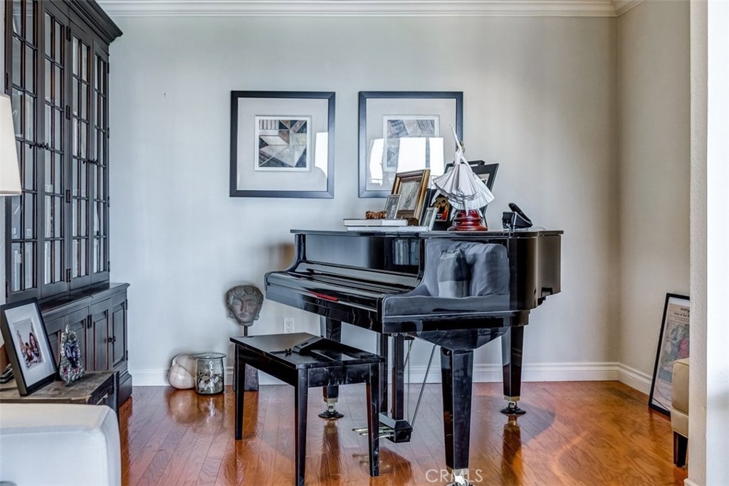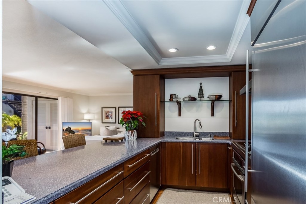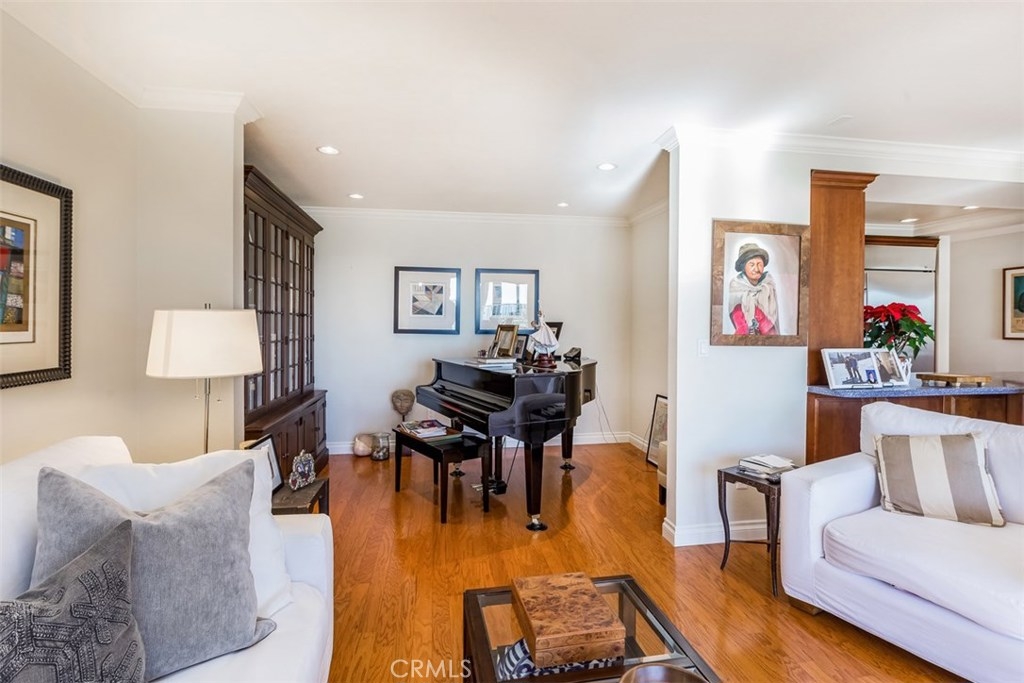 Resort living at it's best! Stunning ocean view condo is located on the main level perched on the bluff of Dana Point Harbor. This turnkey property has the look and feel of a tropical resort both inside and out. The interior boast gorgeous hardwood flooring throughout the living area. There is an expansive great room which makes up the living and dining area, as well as, a bonus room currently being utilized as a music room. The remodeled kitchen features Corian and stainless counters, cherry wood cabinetry and high-end stainless appliances.The master bathroom has been totally remodeled with double sinks, new soaking tub, marble counters and subway tiles. The master also features a walk-in closet with custom built-ins. The secondary bath is also remodeled with marble counters, new cabinets and lighting. A few additional upgrades are crown molding throughout, recessed lighting, large pantry and shutters in both bedrooms.This unit is just a few short steps to the immaculately maintained gardens, heated pool and spa and conveniently close to the clubhouse. The property offers incredible ocean views from the living room, dining room, and kitchen. This intimate gated community of only 34 units is located within walking distance to all of downtown Dana Point, Dana Point Harbor and the coastal cliff pathway to Strand Beach.The gated subterranean parking with two assigned spaces and locker storage is directly below the unit. Looking for big ocean view single level? You found it!