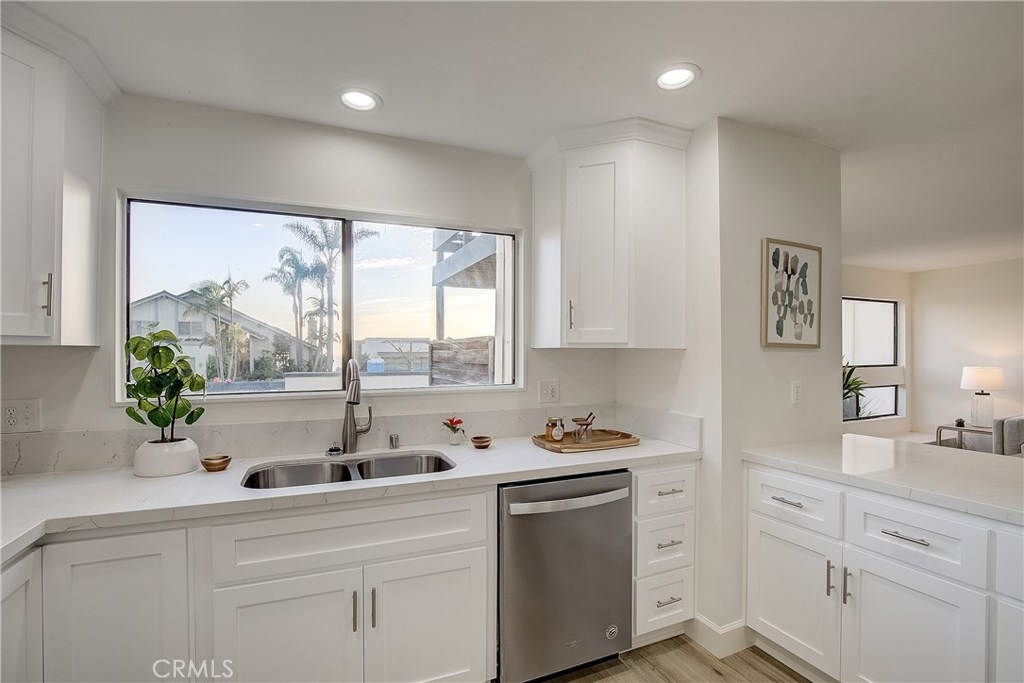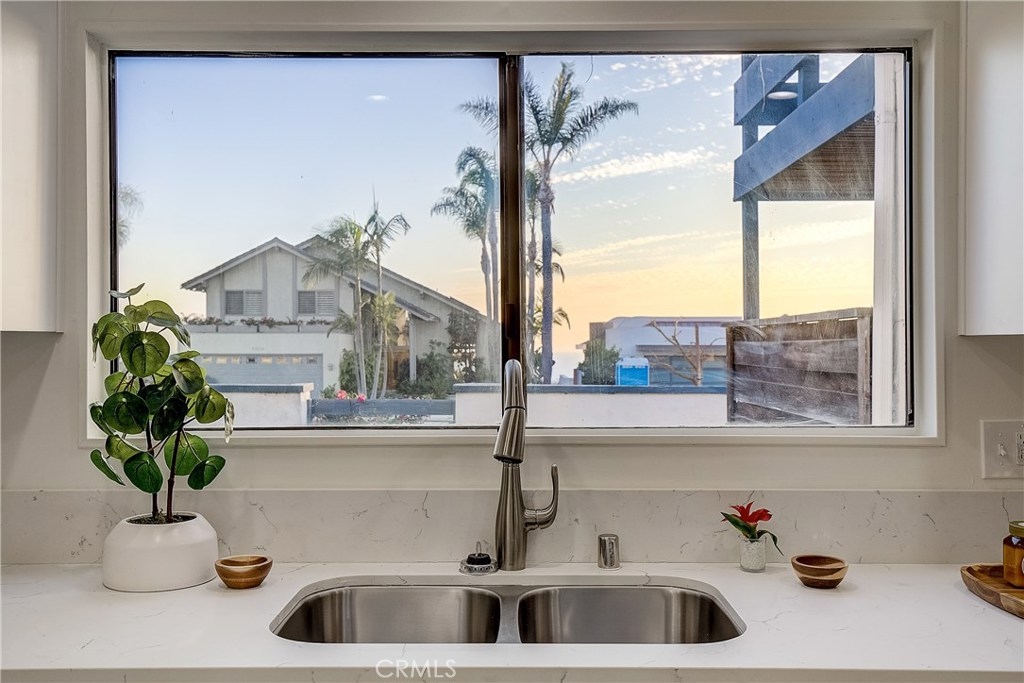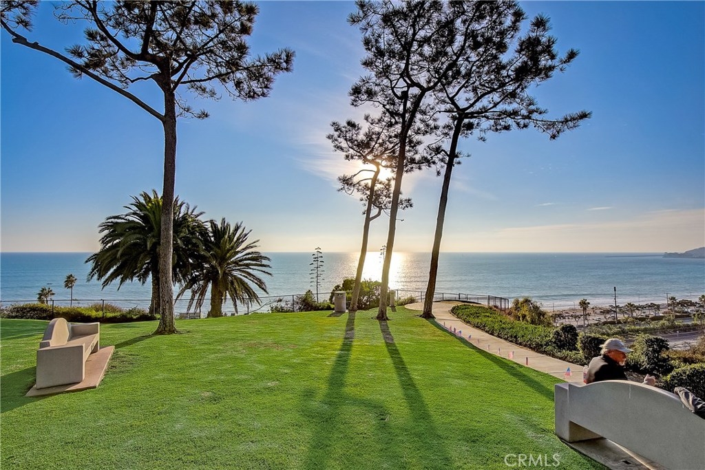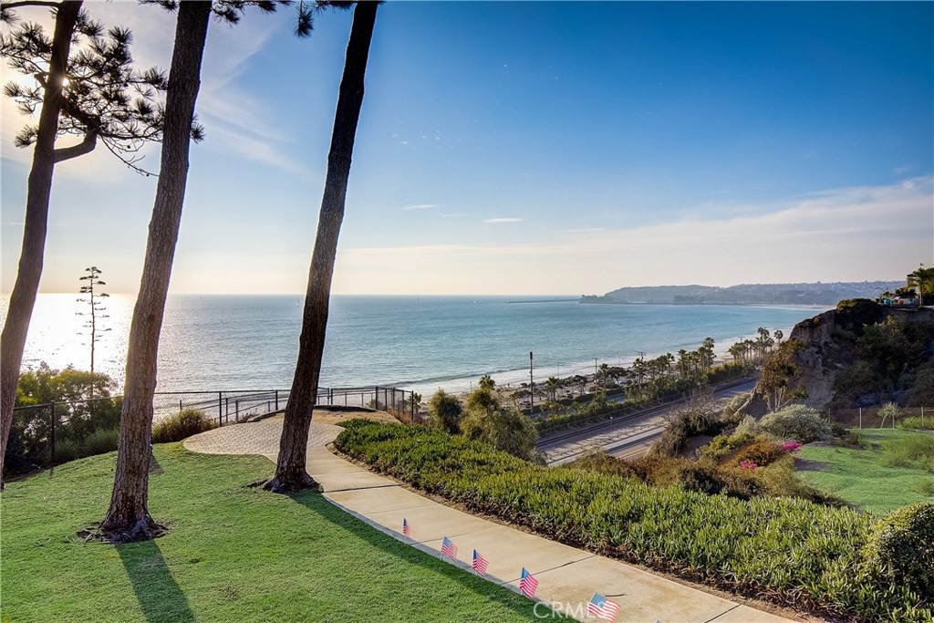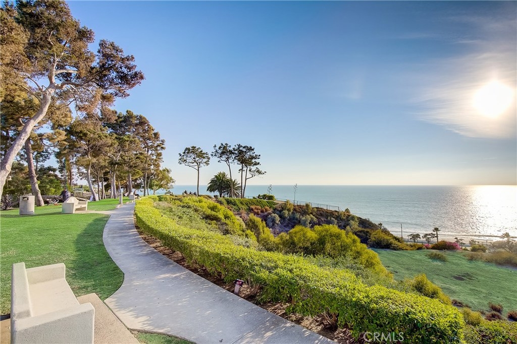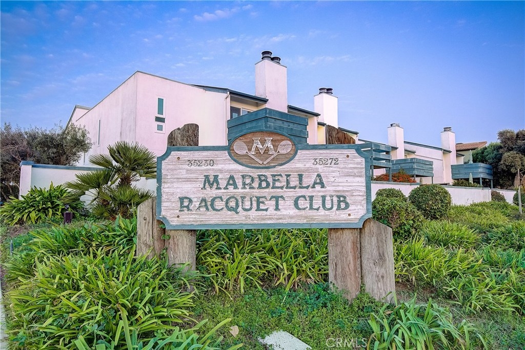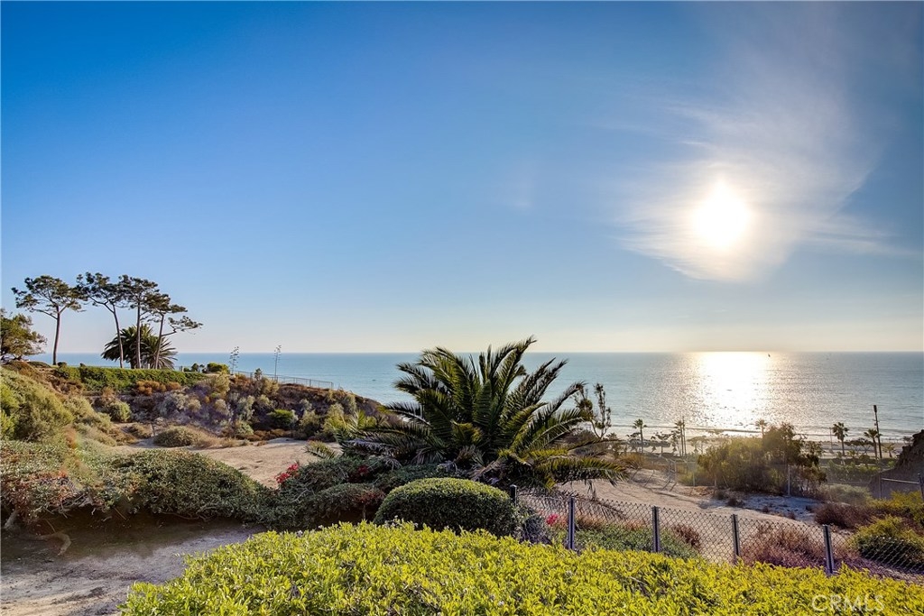 This upgraded home with peek-a-boo ocean views located in the gated community of Marbella Racquet Club in Dana Point is ready for its new owners! New luxury vinyl floors, new paint and cathedral ceilings compliment the bright and open floor plan. The kitchen features new fresh white cabinets, quartz counter tops, stainless steel appliances, large bay window, breakfast bar and separate eating area with slider to the private courtyard. The living room flows seamlessly from the kitchen and features light-catching windows and cozy brick fireplace. An upgraded powder bath finishes the downstairs. The oversized master suite features new luxury vinyl flooring, private balcony with peek-a-boo ocean views, fireplace, walk in closet, and en-suite updated bathroom with new quartz topped vanity and dual sinks. Down the hall are two generous size bedrooms that share the adjacent bathroom. Convenient indoor laundry closet and two car attached garage with direct access to the home makes for easy living. Relax in the serene backyard with sunset views. Close to Pines Park, shopping, entertainment, schools, beach and much more! Welcome home!