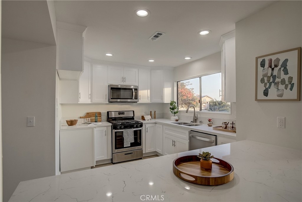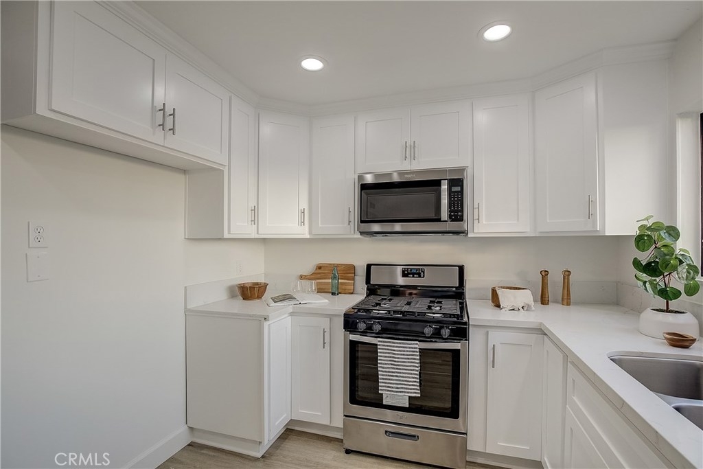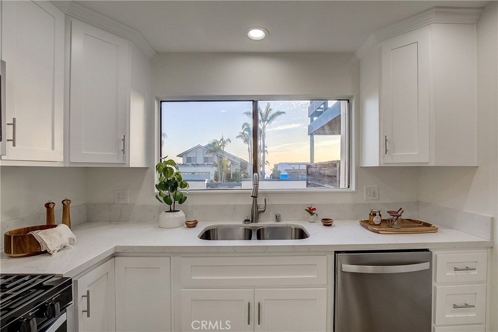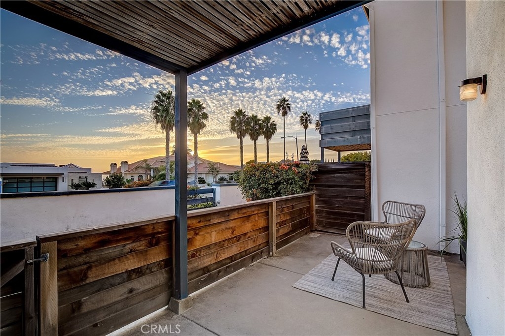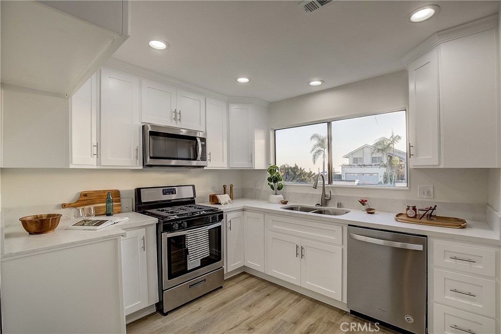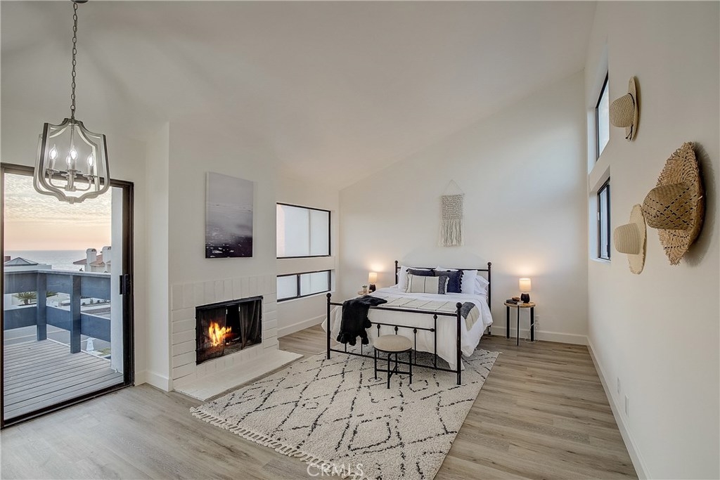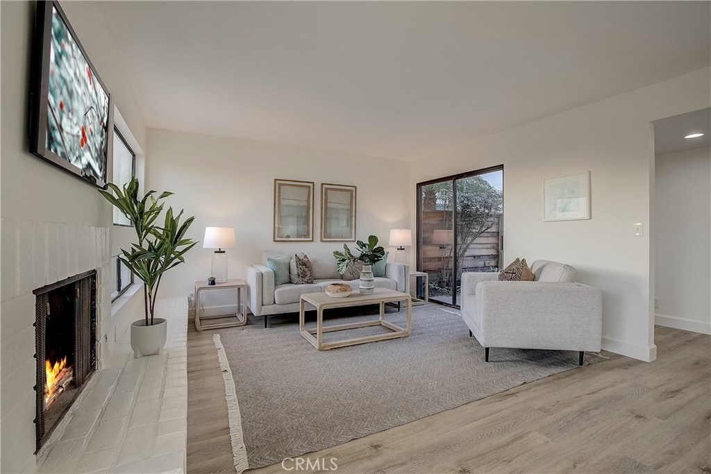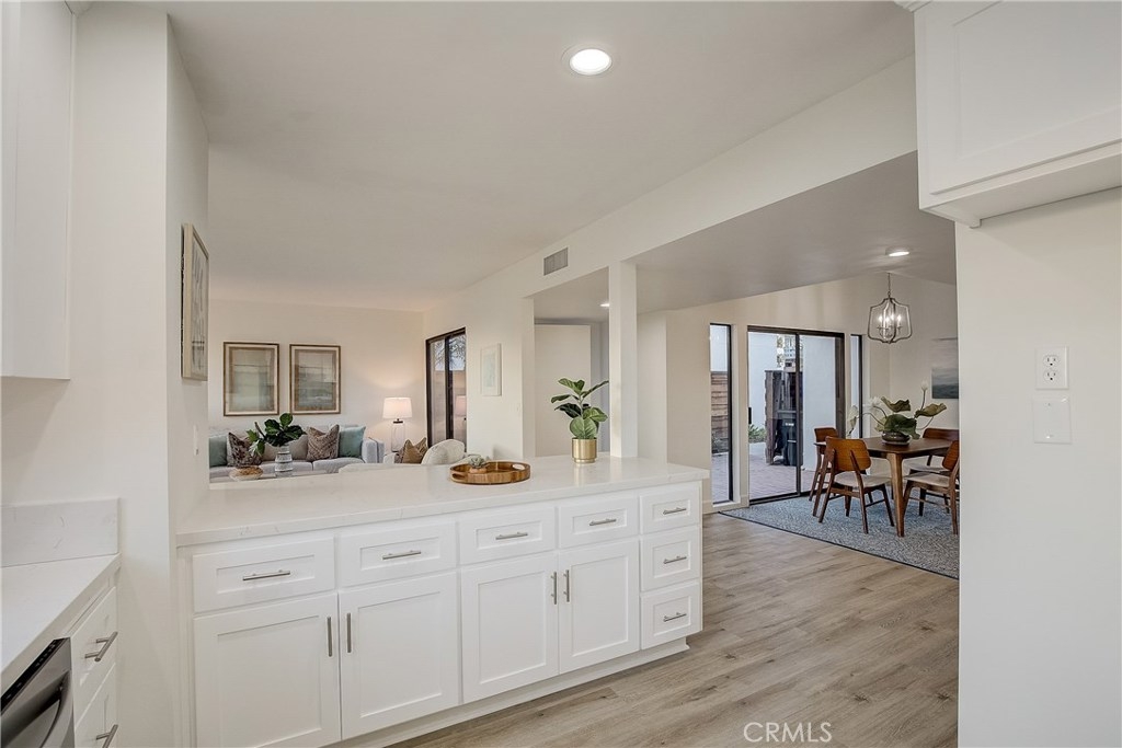 This upgraded home with peek-a-boo ocean views located in the gated community of Marbella Racquet Club in Dana Point is ready for its new owners! New luxury vinyl floors, new paint and cathedral ceilings compliment the bright and open floor plan. The kitchen features new fresh white cabinets, quartz counter tops, stainless steel appliances, large bay window, breakfast bar and separate eating area with slider to the private courtyard. The living room flows seamlessly from the kitchen and features light-catching windows and cozy brick fireplace. An upgraded powder bath finishes the downstairs. The oversized master suite features new luxury vinyl flooring, private balcony with peek-a-boo ocean views, fireplace, walk in closet, and en-suite updated bathroom with new quartz topped vanity and dual sinks. Down the hall are two generous size bedrooms that share the adjacent bathroom. Convenient indoor laundry closet and two car attached garage with direct access to the home makes for easy living. Relax in the serene backyard with sunset views. Close to Pines Park, shopping, entertainment, schools, beach and much more! Welcome home!