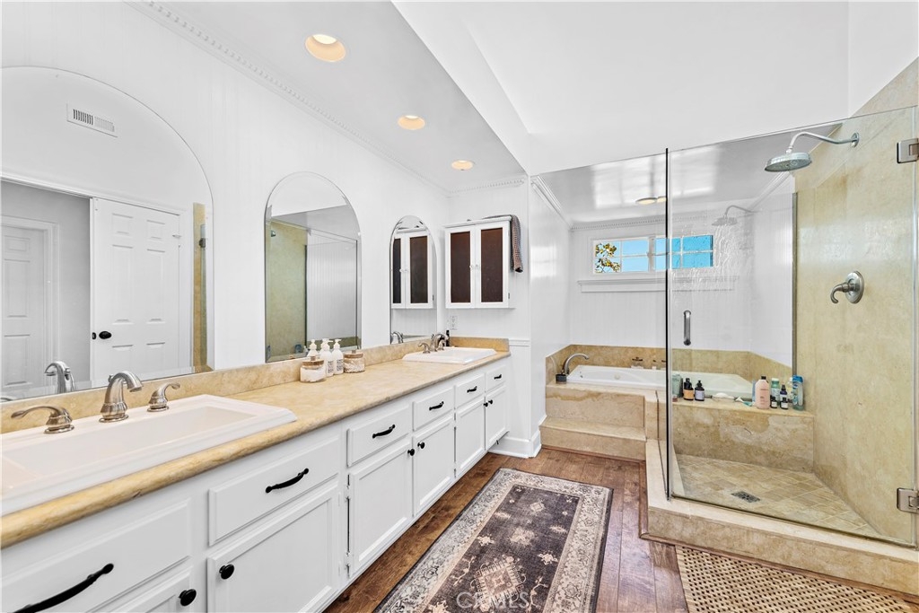 As soon as you enter this thoughtfully designed condo, you will experience a home that is filled with natural light, generous sized rooms, and upgraded finishes throughout. The highly sought-after end unit, with direct access to an adjacent green space, features two master suites that showcase vaulted ceilings and well appointed bathrooms. 33135 Ocean Bright is ideally positioned at the end of a Cul de Sac street which enjoys the privacy of having only one neighbor and offers nearby overflow parking for guests. Situated in the heart of Laguna Niguel, this beautiful condominium is located in the gated Marinita Community that overlooks a large wooded valley. The condo boasts an oversized living area with a brick fireplace, formal dining, a whole house water filtration system, and multiple areas of storage throughout the home. Large sliding glass doors and abundant windows throughout make this end unit home ideal for the Southern California Coastal indoor / outdoor lifestyle. The kitchen is tastefully equipped with stainless steel appliances, granite countertops, a “passthrough” opening to the dining room, and garden window. The main level also includes a separate guest bath, laundry room, entertainer’s bar with sink, as well as hill and valley views from the full length elevated deck. Upstairs the spacious master suite includes a large brick fireplace, walk-in shower, large dual sink vanity, separate water closet, walk-in closet and bathtub. Don’t overlook the 2nd bedroom suite which has soaring ceilings, newly upgraded carpet, and a large bathroom with granite for the counters and the shower enclosure. It’s just minutes to the newly renovated downtown Dana Point, Dana Point Harbor and Salt Creek Beach. World-class resorts and restaurants are also just minutes away. The community includes a pool, clubhouse and tennis court and provides easy access to the I-5 freeway and Hwy. 73 toll road. Don’t miss your opportunity to make this your next home.