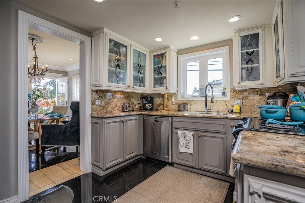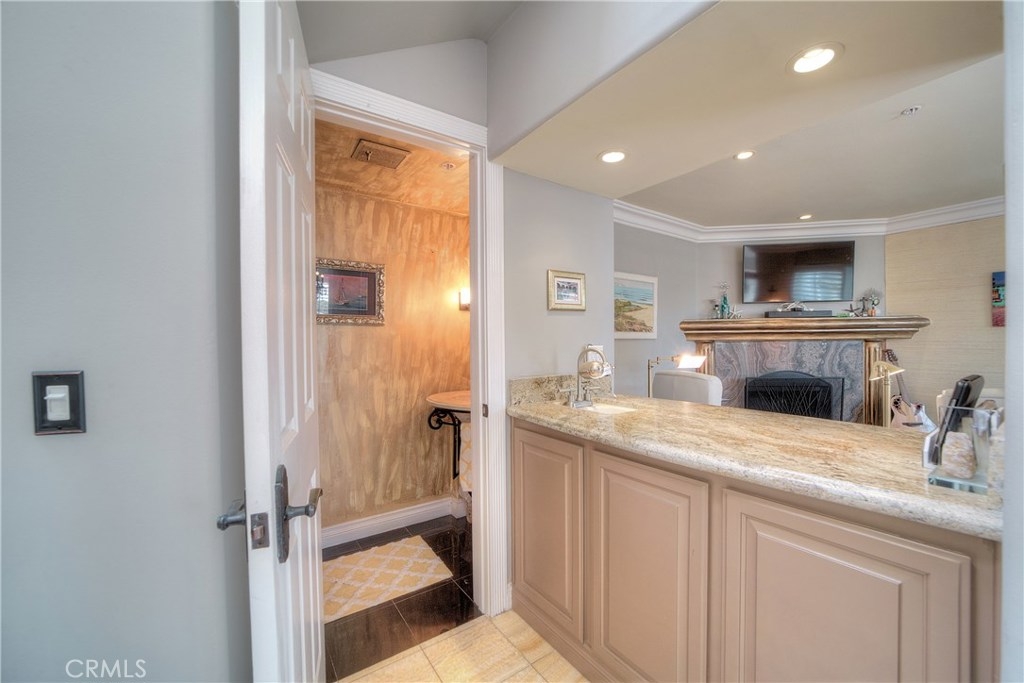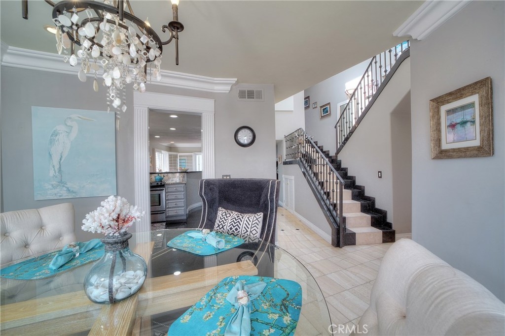 Unique, designer model, fully upgraded two story condo located in the iconic Lantern District, on the ocean side of PCH in the historical heart of Dana Point. The Community is located on the bluff top. It's a short walking distance to the Dana Point Harbor & Marina, the scenic headland trails through the nature preserve at the Strands, which connect to prestigious beaches, Heritage Park, minutes to new restaurants, shopping, galleries, boating activities, outdoor concerts, 5 star resorts & more. This luminous airy private end unit with many windows has peek ocean views from the two balconies, and is buffeted by ocean breezes all year long. Two ocean view spacious master bedrooms with walking closets, 2.5 Bathrooms. High-end appointments include: all new dual pane windows, plantation shutters, newer French doors, leaded glass doors, marble and travertine floors, upgraded fixtures, elegant slab granite kitchen countertop, stainless steel premium appliances, custom warm and inviting cabinetry, sophisticated touches of crown and base molding, recessed lighting throughout, newer designer paint with accent walls, additional features include new Halo water treatment system, tankless water heater, A/C, furnace replaced by current homeowner, skylights. Convenient and secured (2 space) garage parking & easy elevator access, extra storage too. The HOA pays for trash & water. This beautiful turnkey home really is a must see!