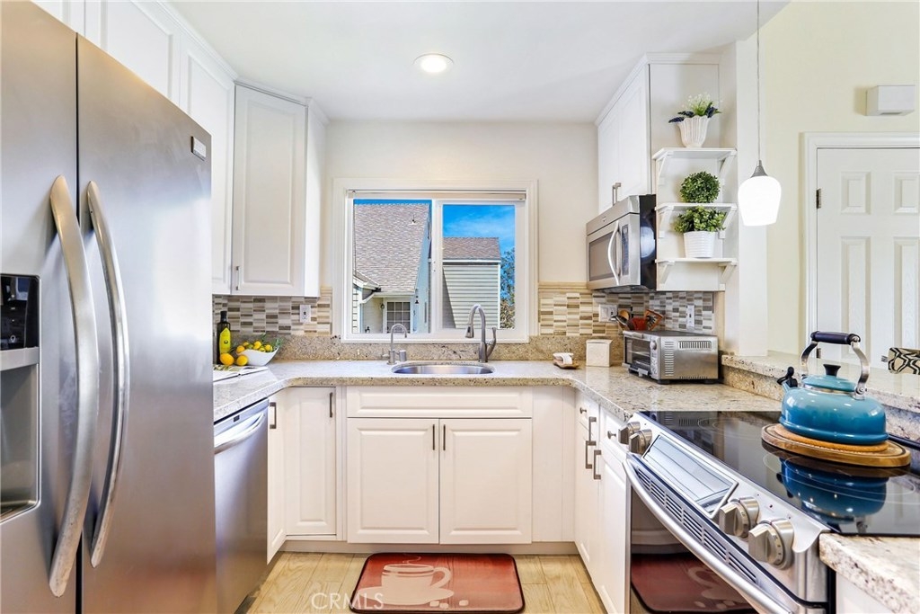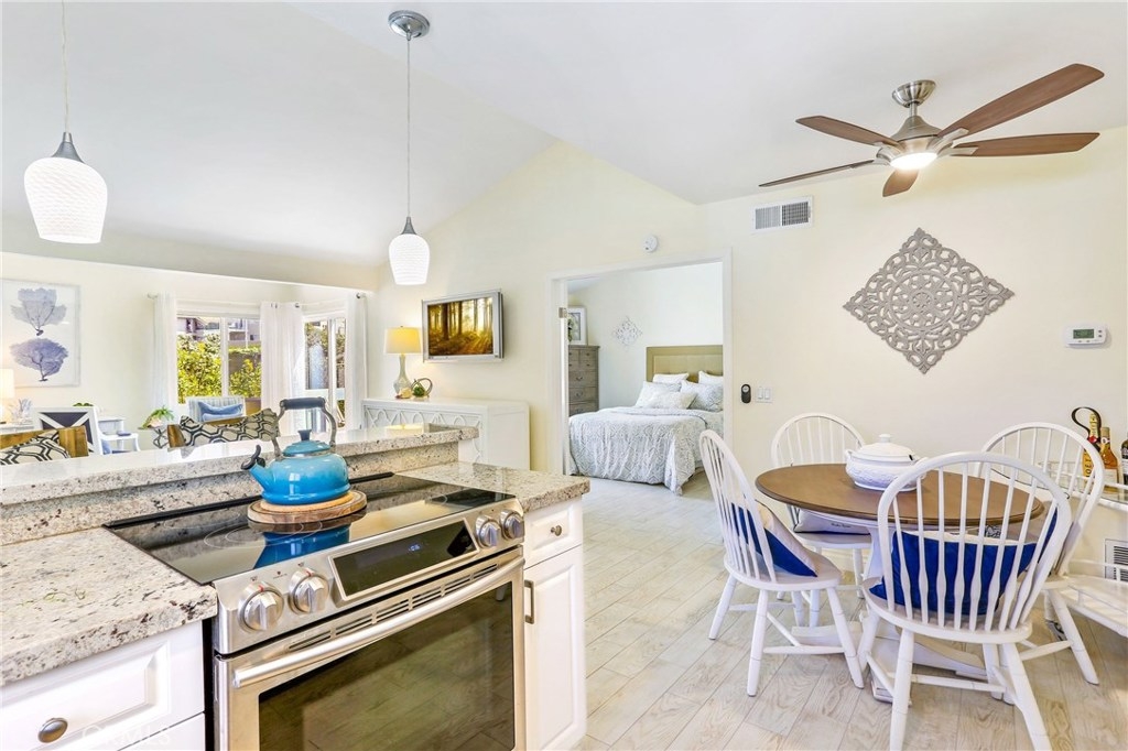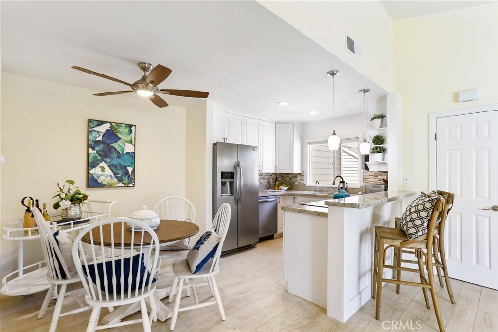 Steps to Strand beach in this light, bright and spacious 1-bedroom upper unit in Niguel Beach Terrace! Enter to a spacious open floor plan with vaulted ceilings, neutral paint and wood tile floors - great for the beach. The openness flows into the completely updated kitchen and dining room. With recessed lighting, pendant lights over the bar, updated cabinets and fixtures, granite counters, tile mosaic backsplash, stainless steel appliances, a bright sunny window over the sink and a peninsula bar this is a perfect space to host friends. Off the living area is a spacious patio with shared access to the oversized master suite which has the same wood tile, vaulted ceilings and a completely renovated bath with granite counters, gorgeous tile on the floors and in the shower, updated lighting and fixtures as well as a double closet. Located in Niguel Beach Terrace steps from Strand Beach and minutes to world class resorts, dining, entertaining and shopping in downtown Dana Point and Dana Point Harbor, this is a fantastic opportunity! A perfect getaway near all that makes Dana Point the destination resort town it is! Whether as a second home, a rental or just a means to downsize and simplify, this is a fantastic chance to own a a piece of paradise at the beach.