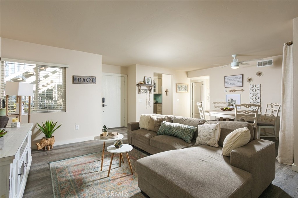 Enjoy all the best of Dana Point at this beautiful 2-bedroom/2 bathroom condo seconds from Strands Beach! Surrounded by 5-star resorts, golden sands, and local hotspots on the PCH, this convenient downstairs unit opens to a living/dining greatroom full of natural light. Stylish, upgraded wood-grain floors flow from common areas to the updated kitchen with stainless steel Frigidaire appliances and a subway tile backsplash, and two patio balconies offer ideal outdoor living with private access from each bedroom. You’ll love the owner’s suite with dual vanity en-suite bath, mirrored closets and ceiling fans in both bedrooms, convenient in-unit laundry and one easy carport parking space. Take a dip in the Niguel Beach Terrace pool and spa, or venture just across the road and down to the water. A world of local dining and shopping, luxurious experiences at the Ritz-Carlton, golf at the Monarch Beach Links, hiking and views at Dana Point Preserve and more are all just minutes away. Don’t miss this highly coveted, fabulously located home — call today for a tour.