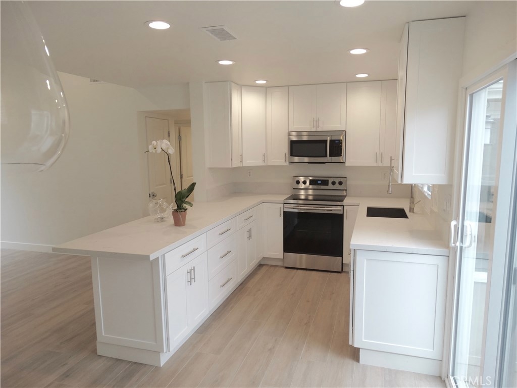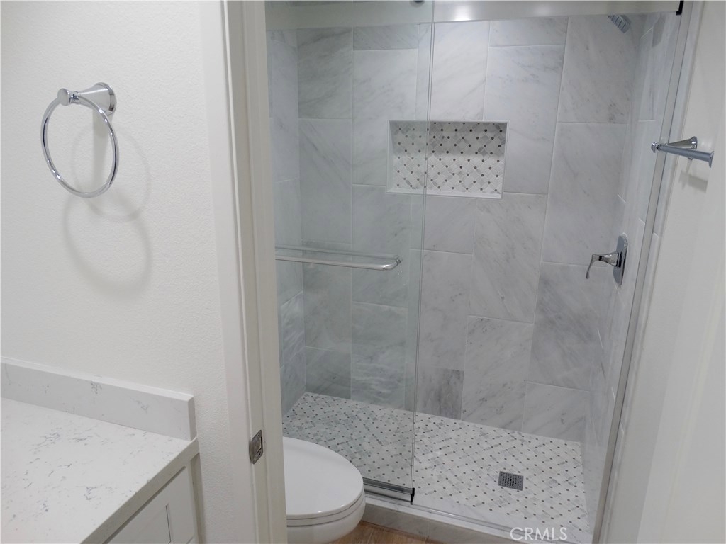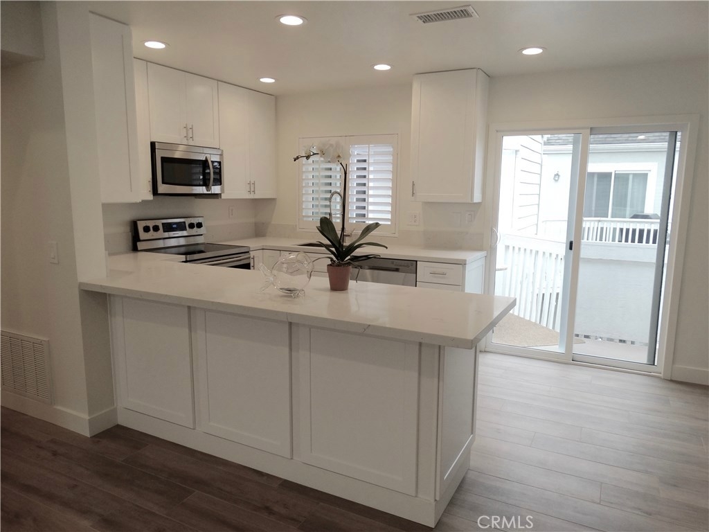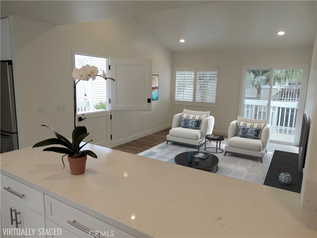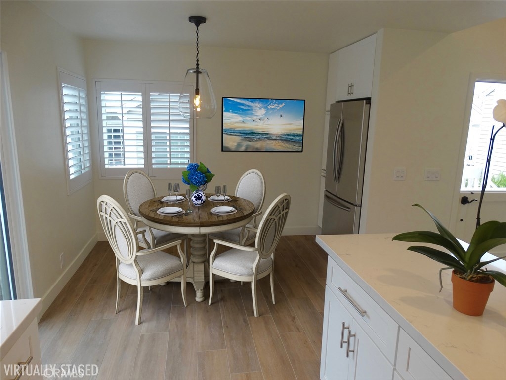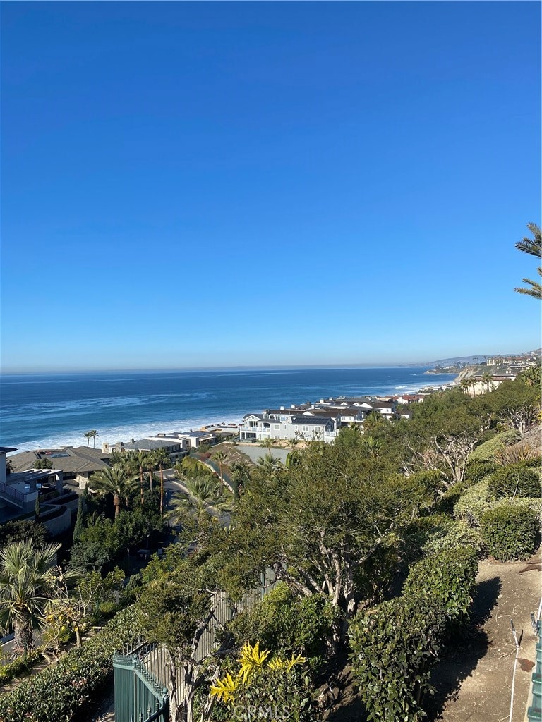 Bright and cheerful condo located across from the Strand Beach. This upper level 2 bedroom, 2 baths condo offers a peak ocean view from eating area and balcony. This delightful condo features vaulted ceilings, dual pane windows, a dutch door, remodeled kitchen with stainless steel appliances, accented with Quartz counter tops. The bathrooms are remodeled and feature Carrera marble tile and Quartz counter tops. Both bedrooms have mirrored wardrobes, window coverings, and shutters. There are wood-look tile floors and baseboards through-out the main living areas and tile flooring in the bathrooms. This condo provides an abundance of light and coastal breezes. Conveniently located close to the scenic Headlands trail. The beautiful quiet community of Niguel Beach Terrace is located close to first class resorts like The Ritz Carlton and Monarch Beach Resort. The Montage Hotel is also easy to reach.