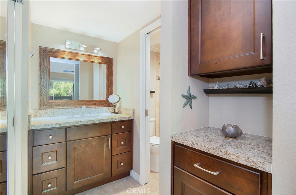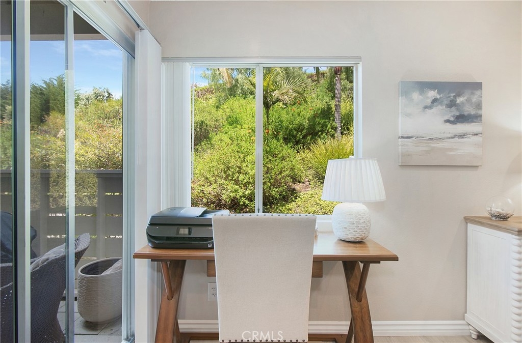 Steps from the world famous Dana Point Strand and Beach. Short distance to the Ritz Carlton and Salt Creek Beach. Close to downtown shopping and restaurants as well as the Dana Point Harbor. Near The Links public golf course. Completely remodeled downstairs corner unit siding to a lush greenbelt. One of the most private locations in Laguna Beach Terrace. Extensive array of solid wood cabinets throughout the kitchen and bathroom areas. Stainless steel appliances...including a refrigerator. Beautiful quartz countertops in the kitchen and bathroom. Recessed lights in the kitchen and living room. Beach-looking easy-care wood laminate floors. Ceiling fans in the dining area, living room, and bedroom. Retiled bathroom shower with frameless glass shower enclosure. Mirrored wardrobe closet doors. Washer & dryer included. Brushed nickel electrical and plumbing fixtures. Lots of extra cabinet storage space. Sleek easy-care glass top electric stove. Living room and bedroom face a lush hillside greenbelt. Covered patio faces the lush greenbelt as well.