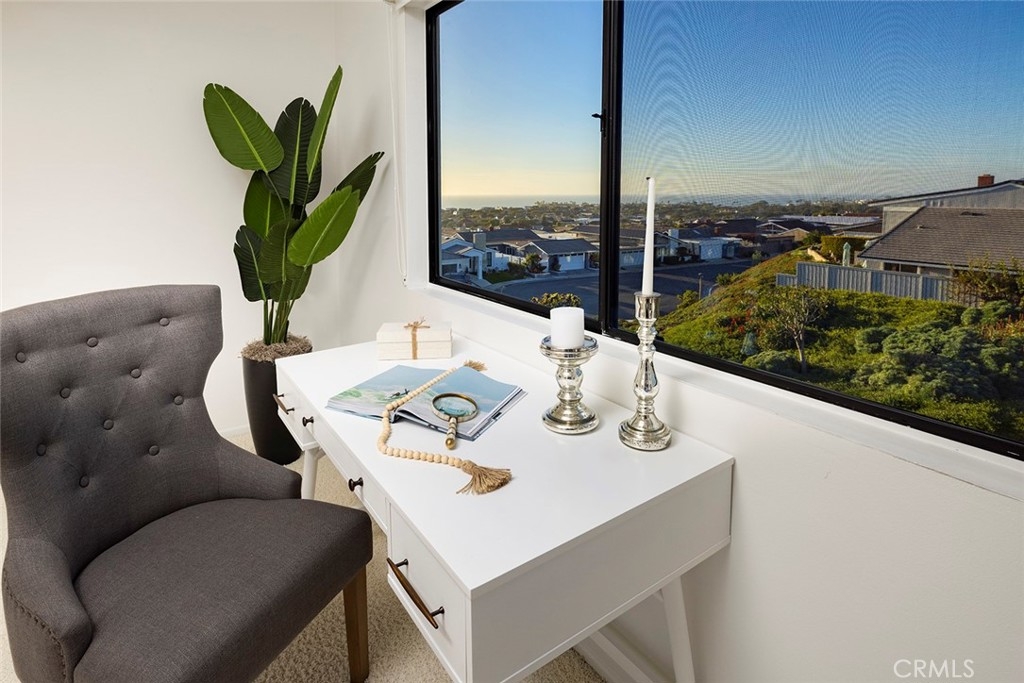 NIGUEL SHORES OCEAN VIEW GEM!!! Welcome to 24121 Windward. Located in the highly desirable prestigious 24-hour guard gated oceanfront community of Niguel Shores. This sunny and bright Ocean View 2 story 3 bedroom 2.5 bath home boasts stunning ocean and Catalina Island sunset views from its premium single loaded street location with a large 2 car driveway and direct access 2 car garage. A welcoming private entry courtyard is serene as it leads into the spacious open-concept floorplan home with an abundance of natural light. Enjoy the first floor with its cozy fireplace living room, built-in butler’s pantry bar with an adjacent reading and sitting area, beautiful guest bath, spacious kitchen, and dining room with an entire wall of sliding glass doors complete with plantation shutters to maximize the spectacular ocean view. The secluded backyard patio offers relaxing outdoor entertainment and alfresco dining. Upstairs, is the large inviting ocean view master suite complete with sitting area, fireplace, office area, built in sitting nook, elegant mirrored wall, large walk in closet, and double sink ensuite. Off the primary suite is a guest bath and 2 light and bright front bedrooms with large windows. If you have a green thumb, there is space in this wrap around yard to create a garden. Niguel Shores is a guard gated community with a private beach access via a private trail inside the community, tennis courts, pickle ball, clubhouse with outdoor fireplaces, private parks, playground equipment, Jr. Olympic size pool, jacuzzi, club house, PLUS a bluff top oceanfront park and parking lot. Niguel Shores is one of the most exclusive and desirable neighborhoods in South County. Walking distance to Dana Point Harbor and the “Lantern District”, world class dining, shopping, beaches, hiking trails, movie theatres, the Ritz Carlton, Waldorf Astoria, and so much more! If you’ve ever wanted to live, vacation, or invest in a wonderful beach home that epitomized the Coastal Southern California lifestyle ~ 24121 Windward is your perfect opportunity. There is nothing like the beach life. Welcome home!