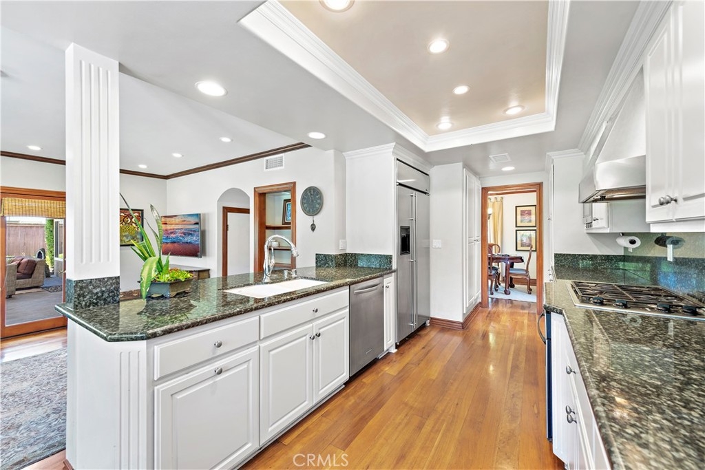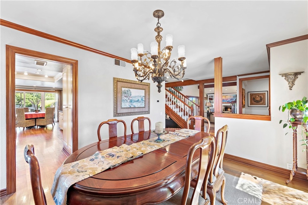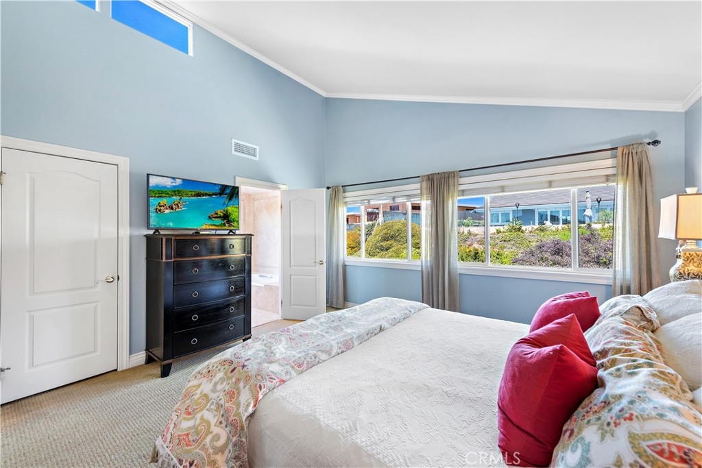 This beautiful two-story home sits on a large pool-sized lot in the highly desirable Berkus tract of Niguel Shores. The "Shores" is a 24-hour gated Oceanfront Community with direct Beach Access, a Blufftop Oceanfront Park, and a Beach Parking Lot. This home offers a spacious living room with vaulted ceilings and real wood floors. In addition, it features a formal dining room, a cozy family room, an office, and a downstairs powder room. The kitchen has a gas cooktop, electric oven, and a built-in GE Monogram stainless steel refrigerator. Upstairs, the home has a large Master Bedroom Suite, two additional secondary bedrooms with Peek-a-Boo Ocean Views plus a full bathroom. The backyard has a large grass area, a built-in bar/barbeque, fire pit, an automatic louvered patio cover along with two built-in gas heaters, outdoor drapes, and wiring for an outdoor television. Relax and entertain at home or walk to the nearby Clubhouse for a Community Event. The Community Center has a Multi-Million Dollar Clubhouse complete with a Jr. Olympic Size Pool, Spa, Sauna, Tennis & Pickleball Courts, Playground and much more. Welcome home to Niguel Shores!