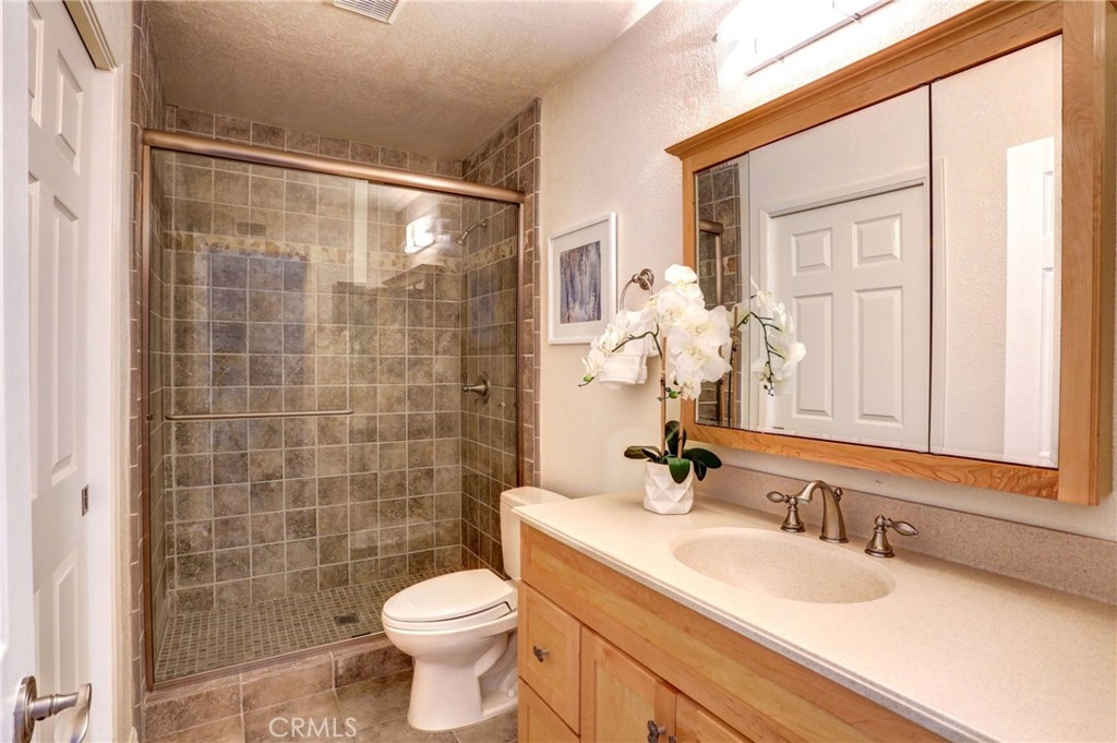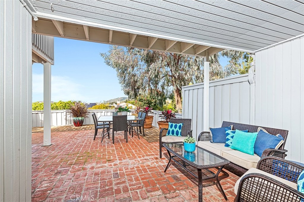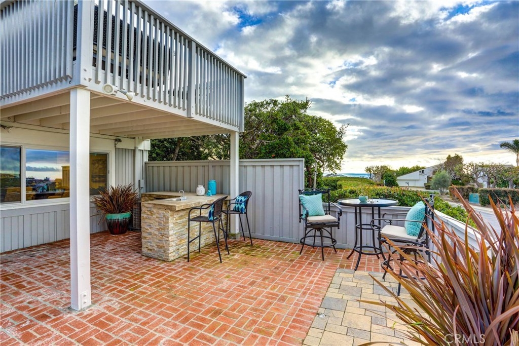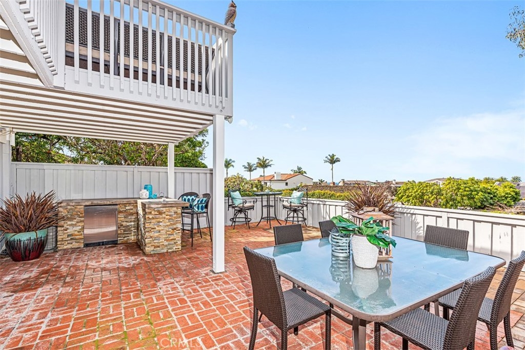 YOUR BEACH ESCAPE! Fantastic 4 Bedroom, 3 Bath home with panoramic ocean, Catalina and sunset views! Located within the sought after Niguel Shores main gate is this beautifully updated Villa. Enter to an expansive private courtyard featuring a large in-ground Jacuzzi and custom hardscape that leads to the welcoming Dutch door entry. Once inside large bright windows draw you into the ocean view patio. With recessed lights, a cozy fireplace, built-in storage the living room has great space and light. Adjacent are the updated dining room, which has a built-in butler’s pantry wall, and the completely redone chef’s kitchen. With leather finish granite counters, inset stainless steel sink, recessed lighting, updated cabinetry, hardware, fixtures, lighting and stainless steel appliances the kitchen is primed for entertaining. Also downstairs are a guest bedroom, currently an office/den, and a full bath. Off the dining room is the stunning ocean view patio with a custom barbecue bar and room for multiple seating areas. Upstairs the master has an ocean view terrace which is the perfect place to watch the sun slip into the ocean. The master bath has an updated dual sink vanity, walk in closet and a custom tile jetted tub. Two additional bedrooms and an updated bath complete the upstairs. In Niguel Shores enjoy private beach access, yearlong community events and is walking distance to downtown Dana Point dining, Dana Point Harbor, and 5 star resorts.