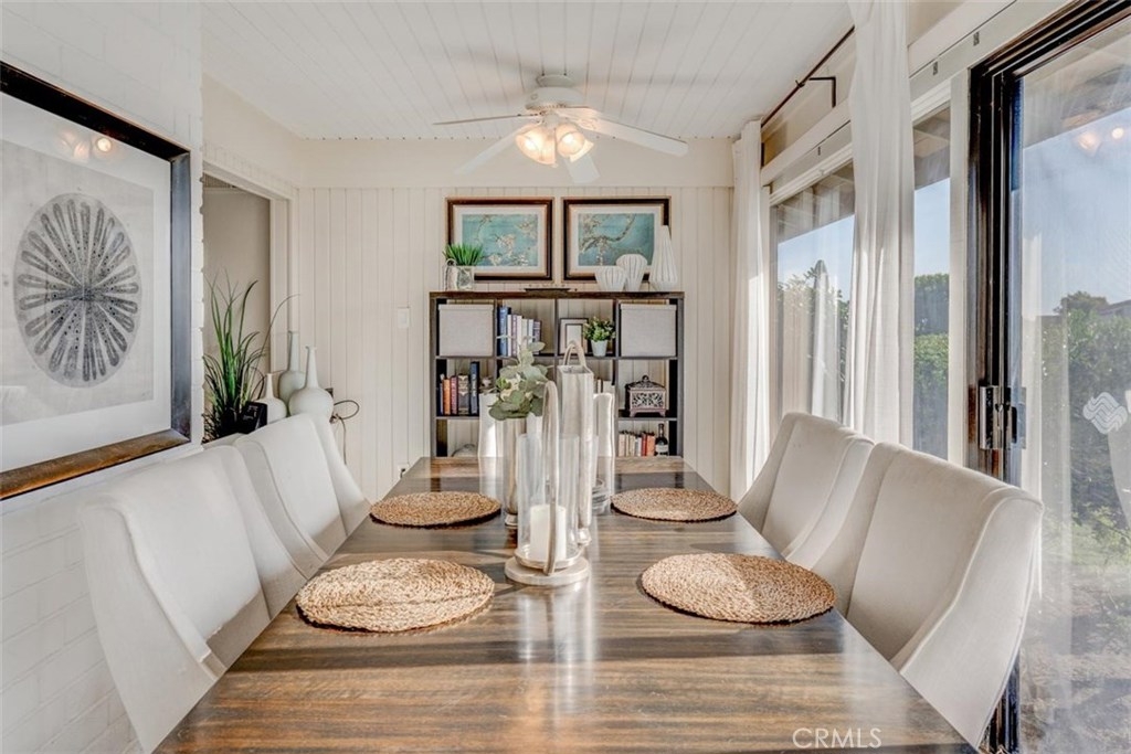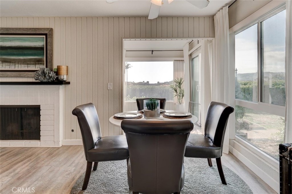 Nestled in the coveted gated community of Niguel Shores, this 3 bedroom, 2 bathroom beach cottage is coastal living at its finest! As the front door opens, you’ll be met by gorgeous driftwood look floors that lead to the spacious and inviting living room, complete with a focal point fireplace that begs to be cozied up to. On the other side of the fireplace is an absolutely stunning sun-room lined with floor-to-ceiling windows and a sliding glass door that leads to the backyard. While currently being used for formal dining, the beauty of this room is its functional versatility – make it a second living space, a library, or whatever you’d like! For casual meals, sit at the bright breakfast nook framed by large windows after cooking in the adjacent kitchen that has been upgraded with modern white shaker cabinetry, granite counter tops, and a built-in wine rack. All three bedrooms are light and inviting, and the bathrooms feature quartz counter tops and the same shaker cabinets as the kitchen. The backyard has OCEAN VIEWS and is as lush and tranquil as can be. Enjoy the endless amenities Niguel Shores has to offer like the jr. Olympic pool, clubhouse, sports courts, a private oceanfront park, and exclusive access to the Bluffs/Strand Beach. Mere minutes from the ocean, shopping, and 5-star resorts and dining, this home truly is a California dream.