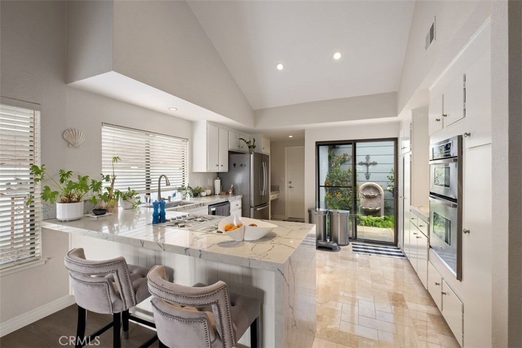 The newly upgraded, single-story home is located in the highly desirable Niguel Shores neighborhood of Dana Point. Niguel Shores is a private 24-hour-a-day guard-gated community in the Monarch Beach area of Dana Point. It is an oceanfront community with direct beach access to Strands, one of Orange County’s most beautiful beaches. This home sits on a flat oversized lot and features panoramic ocean views, spectacular sunsets, and views of Catalina Island. This home features three bedrooms, two bathrooms, a large kitchen, and a family room. The family room opens up onto a glass-enclosed patio with views of the home’s lush green backyard. The master bedroom suite has a walk-in closet and barn door style shutters with views of the beautiful backyard. Some of the home’s recent upgrades are new quartz kitchen countertops, new vinyl plank flooring throughout, new baseboards, a new tankless water heater, and much more. The interior of the home has been freshly painted throughout. The home is a short walking distance of the Niguel Shores Community Center. The community center features a multi-million dollar clubhouse, a Junior Olympic-sized pool, a spa, sauna, tennis courts, and playground. The community also features a bluff top ocean front/view park where you can picnic and enjoy the views and sounds of the crashing waves, mere feet in front of you