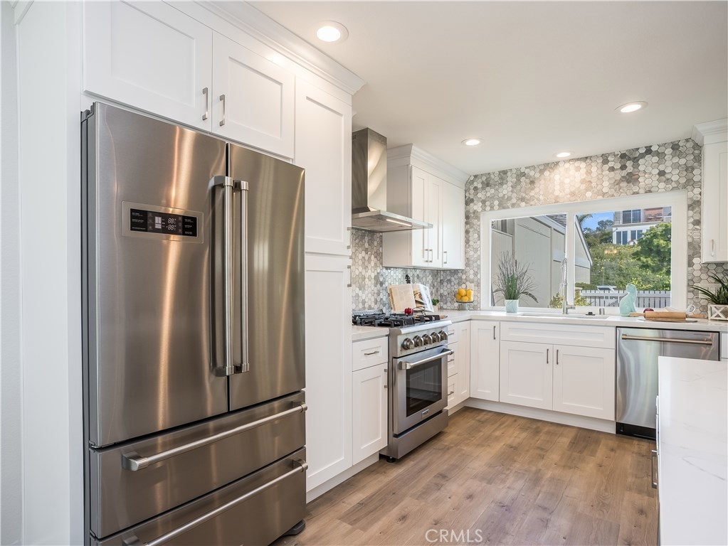 Resort Living! Welcome to this remodeled single story 2 bedroom, 2 bath property located in the gated oceanfront community of Niguel Shores. This coastal california interior boasts a delightful open floor plan with soft, elegant tones inside and out. Designer touches in the Shaker Style Cabinetry with large kitchen island, Carrera Quartz Countertops, premium appliances, upgraded tile fireplace, new white vinyl windows and sliders, and laminate flooring throughout. The bathrooms are immaculate, with new tile showers, custom vanities and tasteful finishes. The backyard is stunning with new hardscape patio and outdoor turf with peek a boo views of the ocean, and a firepit to enjoy those summer evenings with friends! Niguel Shores includes a 3 million dollar clubhouse with many enjoyable amenities like Pool, Spa, and 4 Tennis Courts. In addition, the community offers your own private ocean front bluff, beach access and parking. Located near world class beaches, recently renovated Monarch Beach Resort, and Dana point Harbor. Enjoy beach living all year around in Niguel Shores!