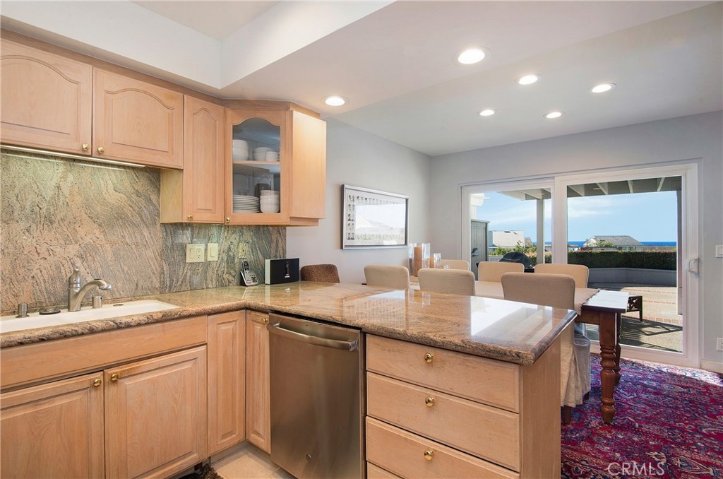 Located in the 24 hour gated oceanfront community of Niguel Shores next to the Ritz Carlton Hotel, this two story townhome enjoys panoramic ocean and Catalina Island views and has been updated throughout with new kitchen appliances, newer cabinetry, granite counters, stone flooring and a finished garage. The large backyard patio and deck provide ample space for entertaining a crowd and watching the beautiful sunset. The living room has a fireplace, ocean view, and travertine flooring and the kitchen opens to the dining room area. The lavish master suite is spacious complete with fireplace, sitting room area, and remodeled bath. The large deck off of the master suite has been newly re-built and affords amazing views. Both the hall bath and the powder room have been remodeled and the attached two car garage has been finished throughout. This property is located on a single loaded cul-de-sac street and has a long driveway. Stroll to the 3 million dollar clubhouse with Jr. Olympic size pool, spa, tennis, pickleball, sports courts, park or to the oceanfront blufftop park and parking lot...all included in the low monthly dues. Enjoy the fun beach lifestyle living in Niguel Shores...the "best-kept" secret along the coast. The Links Golf Course, the Marina at Dana Point, the Monarch Beach Resort, and the Village of Laguna Beach are all just minutes away.