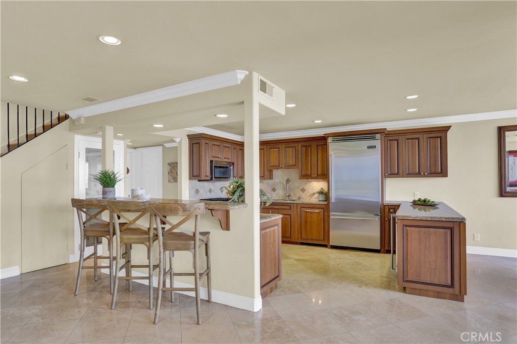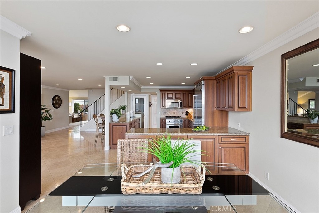 STUNNING VIEW STEPS FROM THE SAND... Living as if you are always on vacation in this beautiful Catalina Island, coastline and ocean view home located in the gated community of Niguel Shores. Take a stroll to the Niguel Shores recreation area, to the private ocean view bluff-top park, overlooking Strand Beach and featuring private community beach access, or just stay home and soak in the sweeping views from your private deck and balcony. From a lush entry step into a home with designer touches and polished floors which lead from a rare formal living room to a marvelous entertaining space which features a dramatic focal wall and an abundance of windows. An immense island bridges the dining/kitchen to the grand great room making this an exceptional venue for entertaining with bar seating set to be the heart of all gatherings. The chef’s kitchen has granite counters, stainless steel appliances, ginger glazed cabinets, recessed lighting and features a casual dining area. Upstairs the master suite has great space, with panoramic coastal and ocean views, and an updated dual sink vanity spa-like ensuite. Two additional bedrooms and an updated guest bath are opposite the master suite. Outside the spacious patio, has amazing views and a retractable awning. An attached 2 car garage on a quiet end of cul-de-sac location make this an inescapably tempting opportunity! Just minutes to downtown Dana Point dining, 5 Star resorts, Dana Point Harbor, Strand, Salt Creek and Doheny beaches.