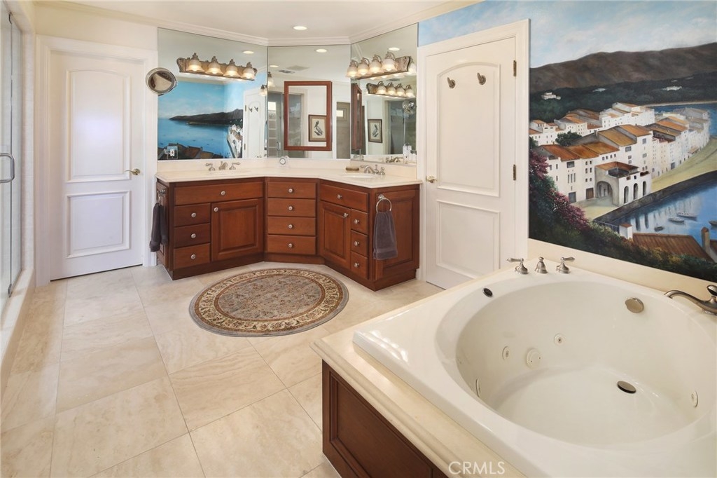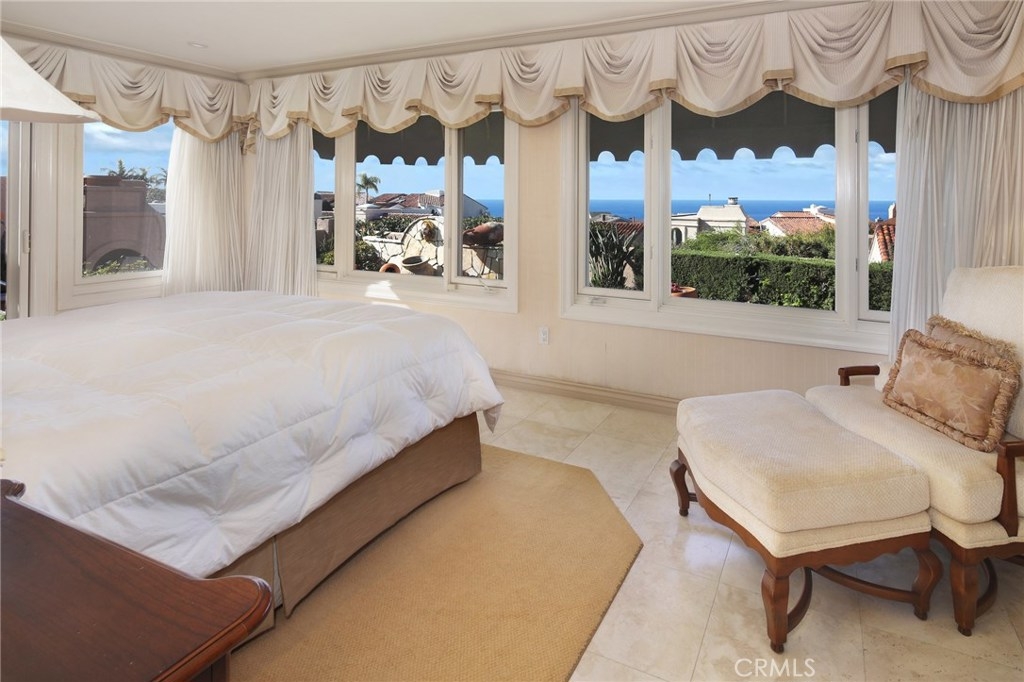 Located in the gated oceanfront community of Niguel Shores, this ocean view one story VILLA features a remodeled and expanded design complete with gated courtyard patio entry, a dramatic arched foyer, and a spacious open concept "Great Room" boasting luxurious built in cabinetry, fireplace, high ceilings, and ocean view. The kitchen includes beautiful stone counters, gas cook top, built in appliances including warming oven and refrigerator. This property includes an office and a separate sitting room with fireplace (could be bedrooms 2 and 3) a large master suite with separate additional sitting room/den/office, 2 walk in closets, and a beautiful master bath with separate tub, shower, and dual vanity sinks. In addition, there is a lovely powder room and inside separate laundry room with utility sink, a wine storage room and an additional half bath off of the finished and attached 2 car garage. There are ocean views from all main rooms. Designed for entertaining and enjoying the amazing sunset views, this home has views of Catalina Island to Palos Verdes and Newport Coast. The outdoor kitchen offers easy entertaining with covered arbor, an outdoor fireplace and fountain. Niguel Shores includes a 3 million dollar clubhouse with Jr. Olympic size pool, spa, tennis, pickleball, sports courts plus an oceanfront blufftop park and parking lot for easy beach access. Enjoy the fun beach lifestyle living in Niguel Shores...The "best kept" secret along the coast!