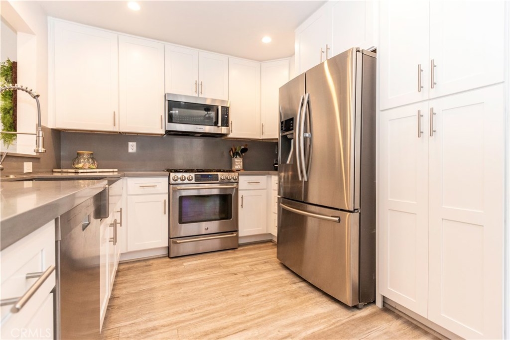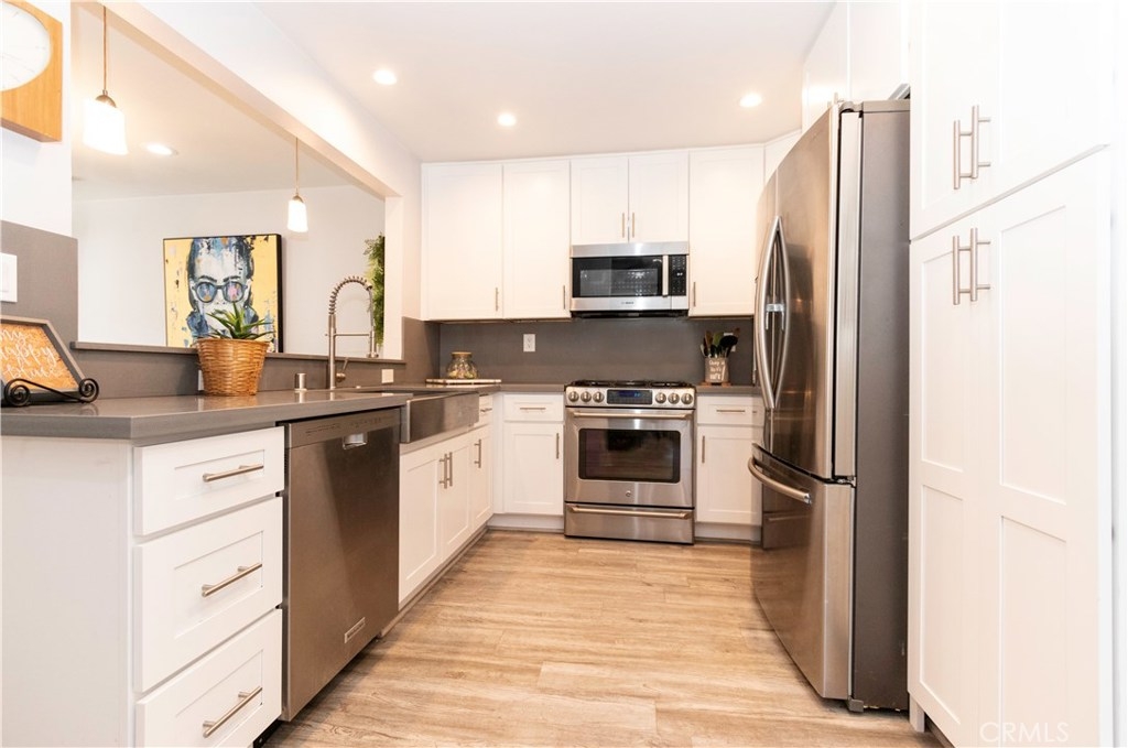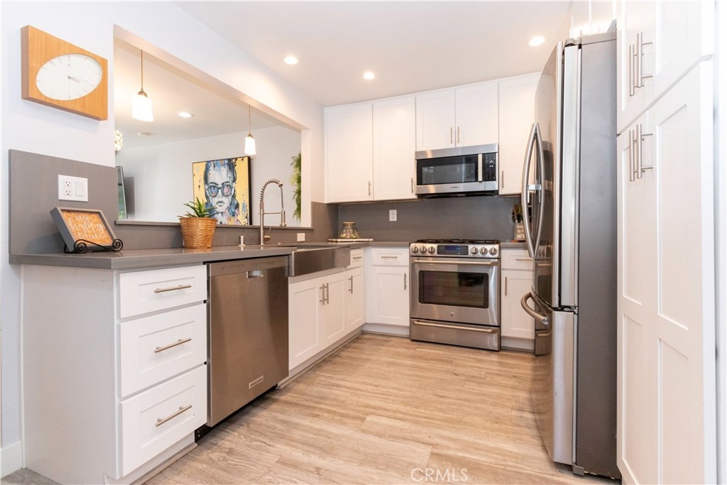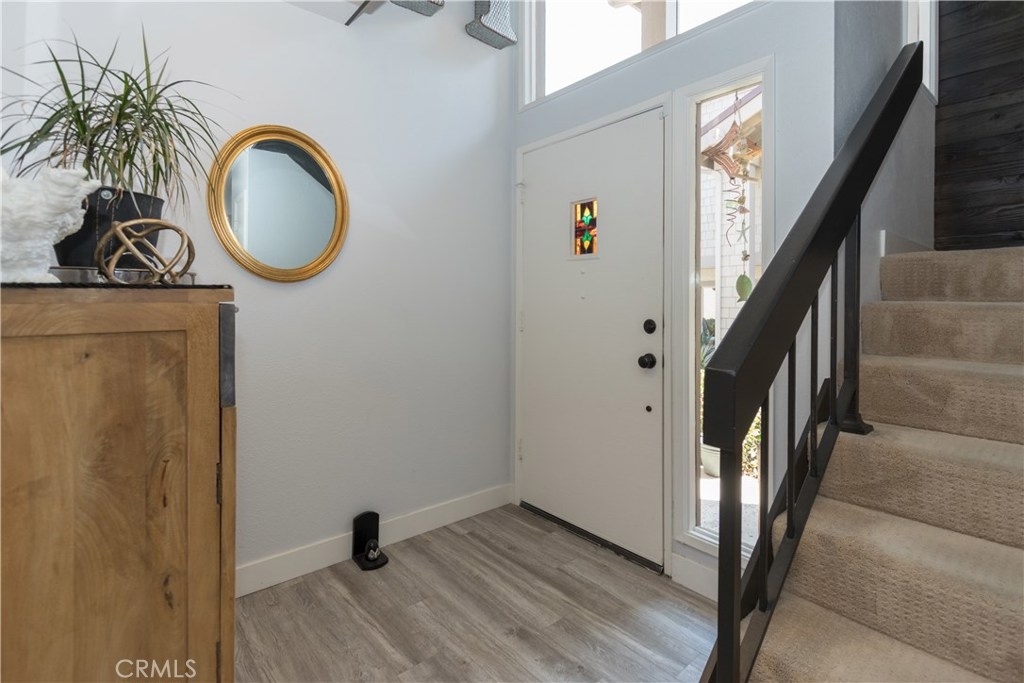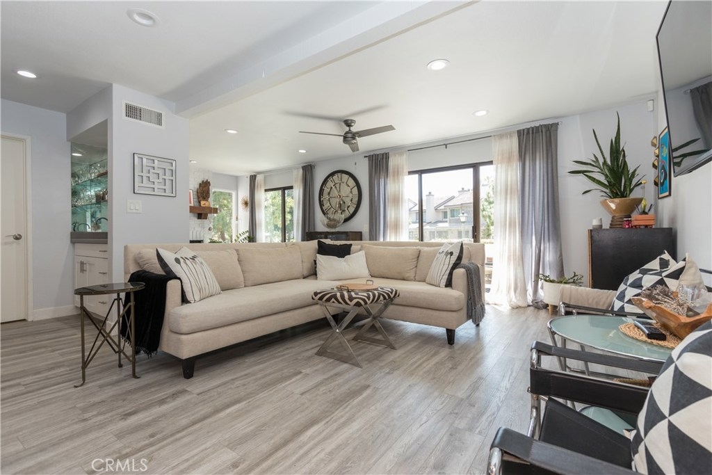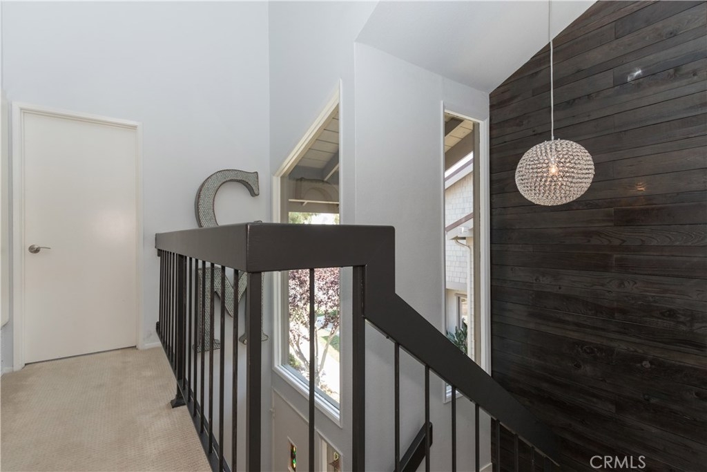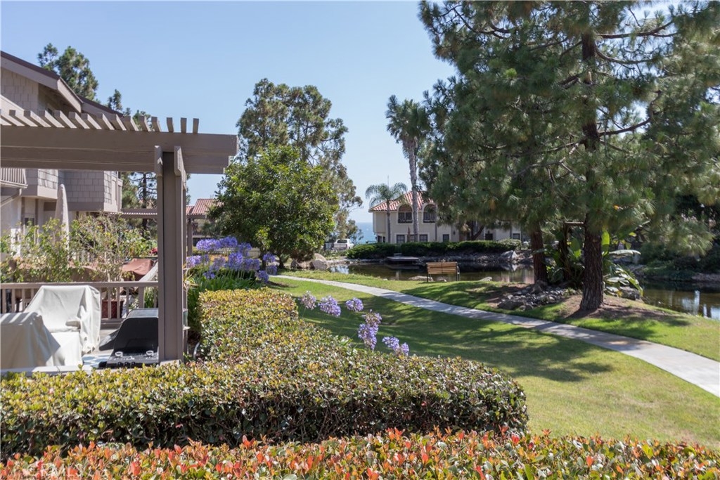 Cool Ocean breezes and peek ocean view plus a beautifully upgraded townhome in exclusive small gated community complete with views of peaceful babbling creeks & ponds. Home is an end unit with extra windows for more light. Kitchen is redone with an enlarged opening into the living area with bar stool seating & pendant lights, new cabinets with pull-out drawers in pantry which are soft close, stainless steel gas stove/oven, microwave, quartz countertops & cozy breakfast nook leading to direct garage access. There is modern wood flooring through out the open & spacious downstairs. The dining and living room combo looks out to the ample patio with peaceful greenbelt & tree views plus the cozy family area tucked away with a wood burning fireplace, sliding doors and peek ocean view. There is a convenient half bath & wet bar. Upstairs are 3 bedrooms with two additional decks. The tranquil master bedroom with romantic wood burning fireplace & sliding doors onto the ample view deck. There is a walk-in closet & another smaller closet for shoes and bags. Upgraded master ensuite includes a soaker tub & separate shower, dual vanities & private commode area. A secondary back bedroom has access to the view deck & also a peek ocean view from the window too. The front bedroom is complete with a private deck. All baths upgraded. 5 ceiling fans that are rarely needed when you are so close to the cool ocean. The Association boasts pool & ponds. Location near shopping, ocean & FW