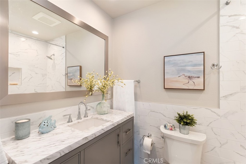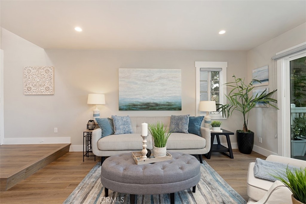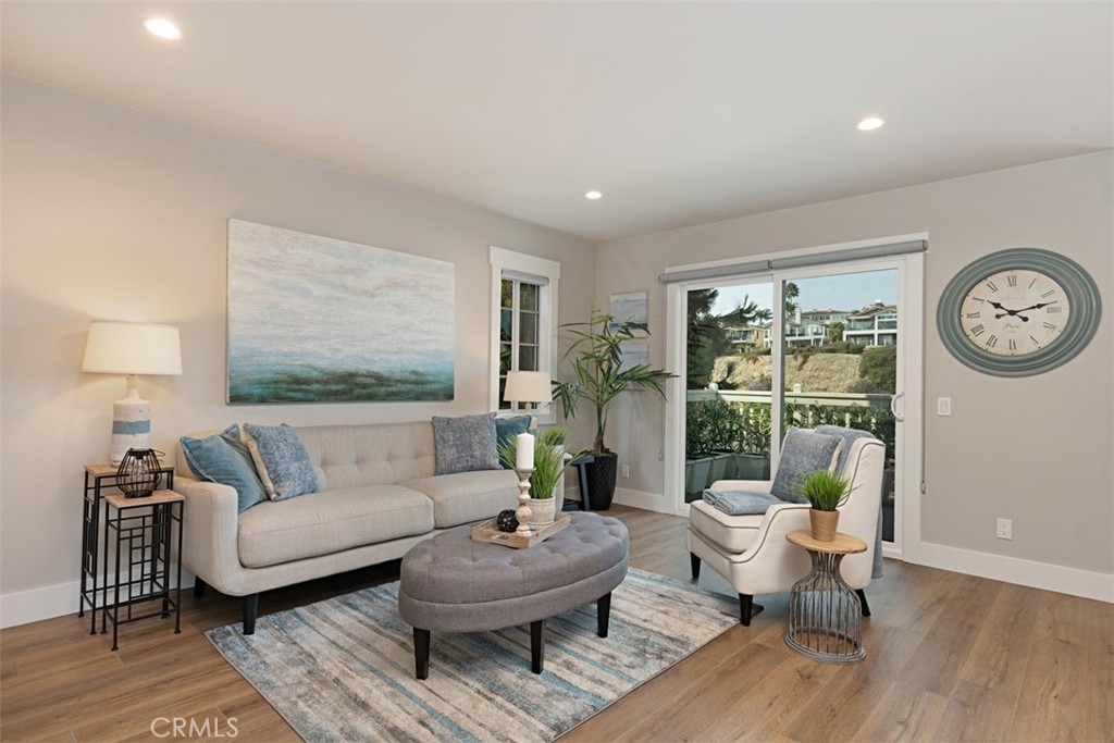 5-Minute walk to the sand! Completely remodeled 3 bedroom 1.5 bathroom end unit on the ocean side of PCH. Perched in the private, quiet community of Pacific Terrace, overlooking the Lantern Village, is this newly remodeled home. The downstairs has been completely opened up, with a new kitchen updated with shaker cabinetry, quartz countertops, kitchen island and new appliances, all of which open onto the spacious living area. Both downstairs half bath and upstairs full bath have been completely remodeled and the laundry located upstairs in separate closet. The entire home has been upgraded with vinyl wood-plank flooring and recessed lighting added. This unit is highly upgraded and in a ultra-premium location. The private gated stairway down to beach makes for an easy 5-minute walk to the sand or even closer to Lantern Bay Park for a beautiful sunset and a walk to drinks at one of the many Lantern Village restaurants. With the plans for the harbor and the updates throughout the Lantern District of Dana Point it is clear that this is the place to be. Do not miss out on this amazing opportunity, it surely will not last. Additionally there will be a modern steel handrail with cables that will be installed near the beginning of September.