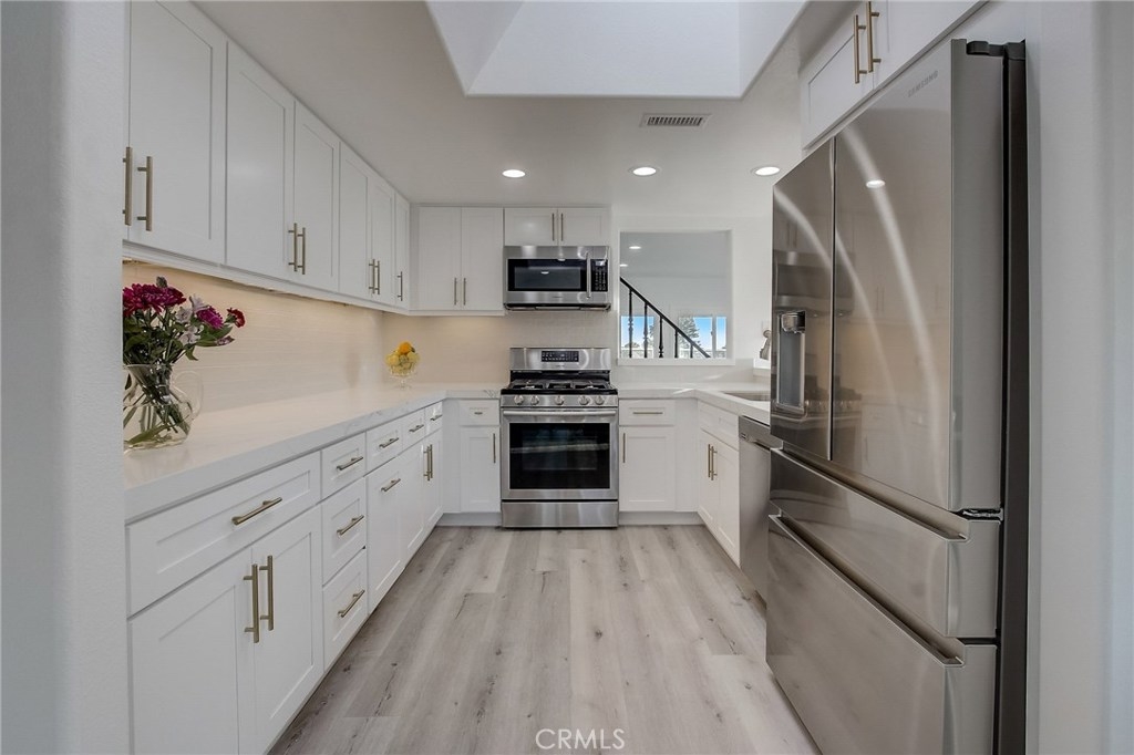 Enjoy panoramic whitewater ocean views from this stunning, completely remodeled property located in the prestigious gated community of Point Vista in Lantern District of Dana Point. Mint turnkey condition - just unpack and hit the beach! Situated in a premier corner location of the community with windows facing south and west to maximize the spectacular sunsets and ocean views. New wide-plank luxury flooring, new carpet and high-end finishes throughout add to the elegance of the bright and open tri-level floorplan. The brand new kitchen is well-appointed with gorgeous Calacata Rocky Quartz countertops, subway tile backsplash, fresh white Koville cabinets with dovetail joinery and soft closers, and under cabinet lighting and electrical outlets. Featuring dual master suites, each with stunning ocean views, remodeled bathrooms and custom closets. Additional upgrades include new Milgard vinyl windows, updated plumbing and electrical, recessed LED daylight lighting, Ecobee smart thermostat, Rheem water heater and central air conditioning. Enjoy the community spa and BBQ area. Minutes to the incredible restaurants and shops of downtown Lantern Village, Dana Point Harbor, The Strand and Salt Creek Beaches, Ritz Calton and Monarch Beach Luxury Resorts make for spectacular coastal living!