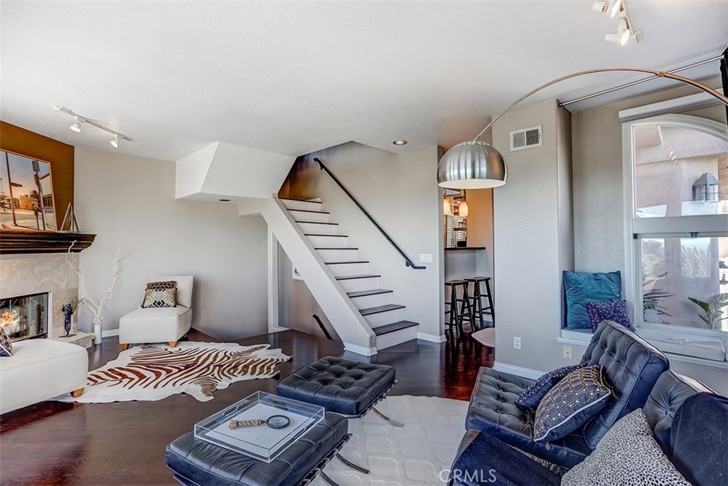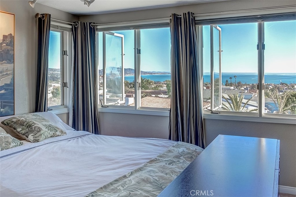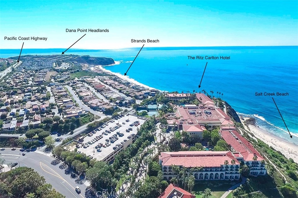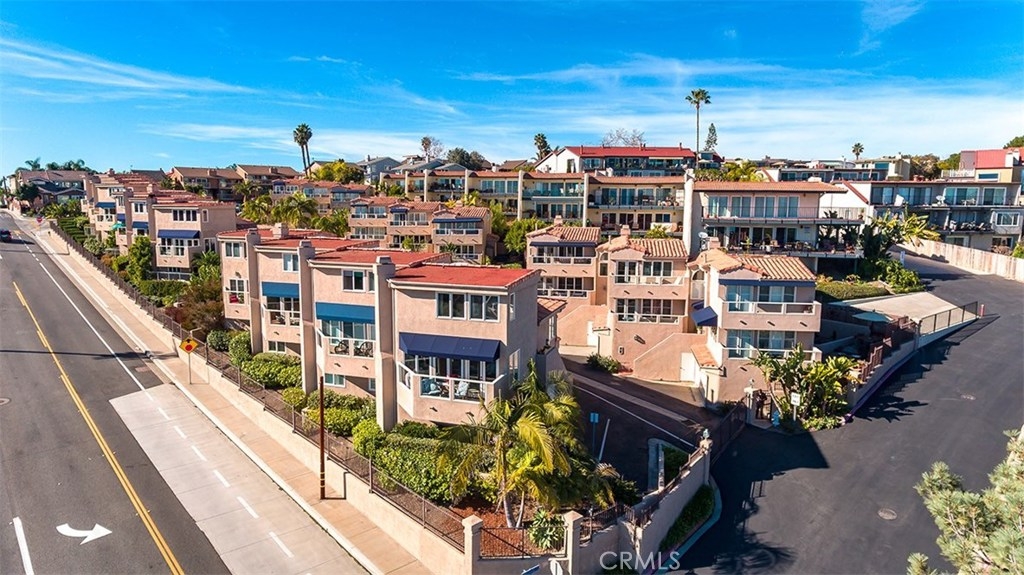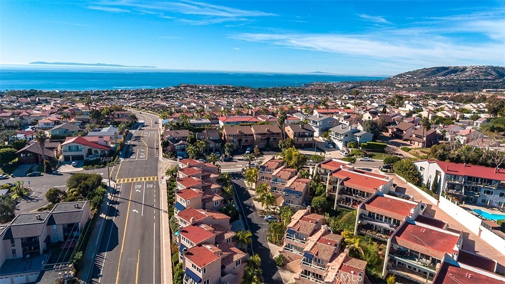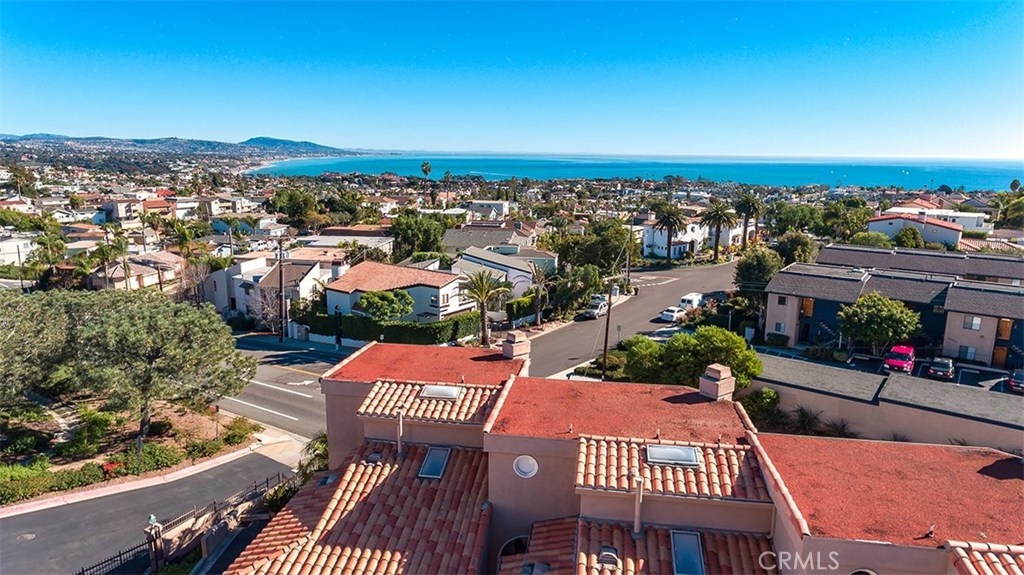 Panoramic ocean & city lights views await! These coastal sights can be enjoyed from both the south facing master bedroom, living room and balcony. Located within the gated community of Point Vista, this private, end-unit has no one above or below and is conveniently located within walking distance of the shops and restaurants of Dana Point's Town Center as well as Strands Beach. A well lit kitchen conceived by Expo Design Center, features silestone countertops, stainless steel backsplash, cherry cabinets, soft closing drawers, recessed lighting & stainless steel appliances. Luxurious red oak floors flow throughout the main living area and the family room's MisuraEmme built-in simultaneously offers style and organizational versatility. The downstairs bedroom has new carpet, a private patio and ensuite bathroom. Within the last year, both ensuite bathrooms were completely remodeled with Delta fixtures and the interior doors replaced with TruStile solid core doors. The home's two car garage with direct access, interior laundry room and additional storage beneath the exterior stairs are a few more appointments to be enjoyed. This home is minutes away from the Dana Point Harbor, Salt Creek & Strands Beaches, the Links golf course, St. Regis & Ritz hotels. HOA dues include water, trash, community spa & BBQ.