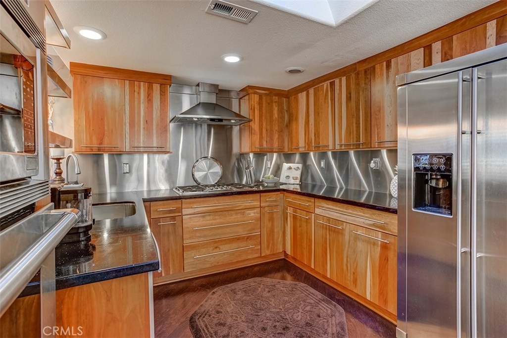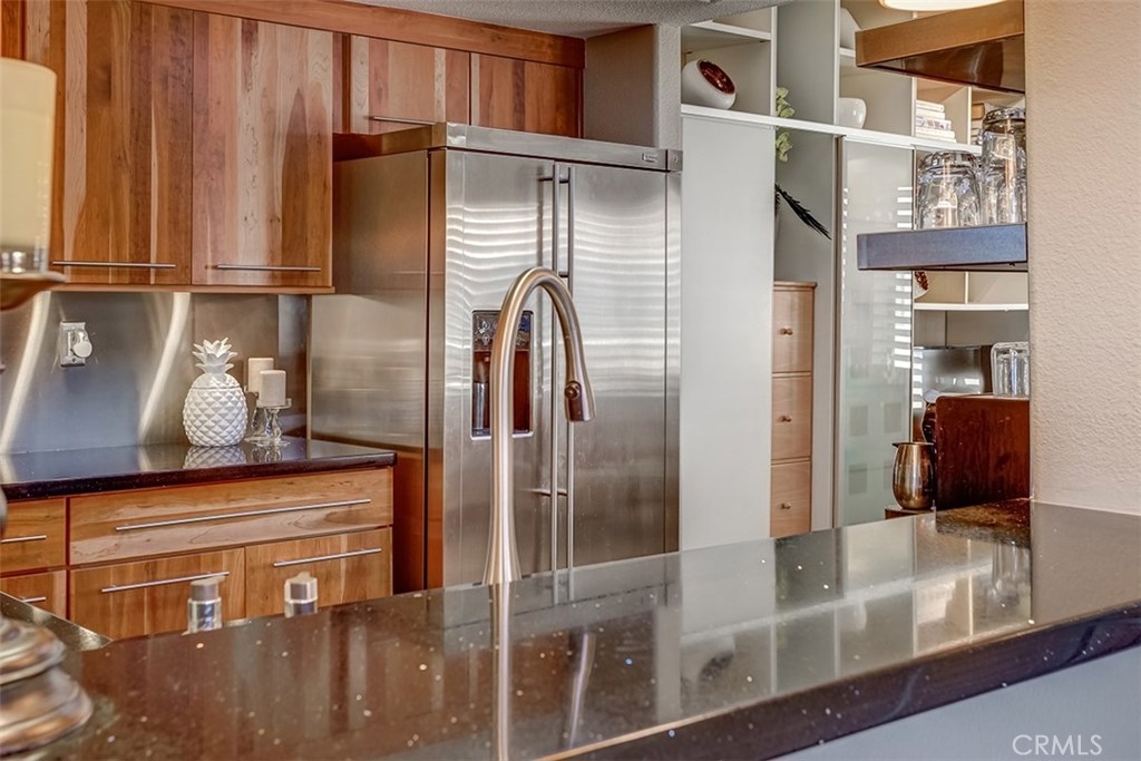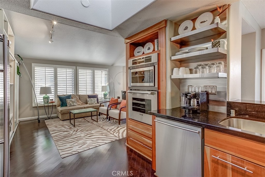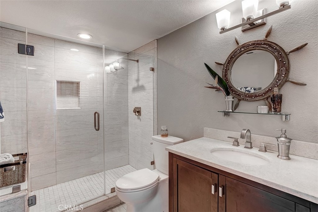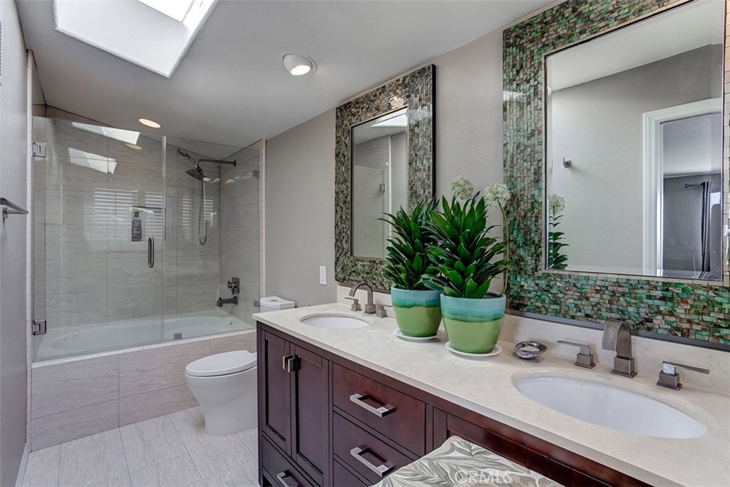 Panoramic ocean & city lights views await! These coastal sights can be enjoyed from both the south facing master bedroom, living room and balcony. Located within the gated community of Point Vista, this private, end-unit has no one above or below and is conveniently located within walking distance of the shops and restaurants of Dana Point's Town Center as well as Strands Beach. A well lit kitchen conceived by Expo Design Center, features silestone countertops, stainless steel backsplash, cherry cabinets, soft closing drawers, recessed lighting & stainless steel appliances. Luxurious red oak floors flow throughout the main living area and the family room's MisuraEmme built-in simultaneously offers style and organizational versatility. The downstairs bedroom has new carpet, a private patio and ensuite bathroom. Within the last year, both ensuite bathrooms were completely remodeled with Delta fixtures and the interior doors replaced with TruStile solid core doors. The home's two car garage with direct access, interior laundry room and additional storage beneath the exterior stairs are a few more appointments to be enjoyed. This home is minutes away from the Dana Point Harbor, Salt Creek & Strands Beaches, the Links golf course, St. Regis & Ritz hotels. HOA dues include water, trash, community spa & BBQ.